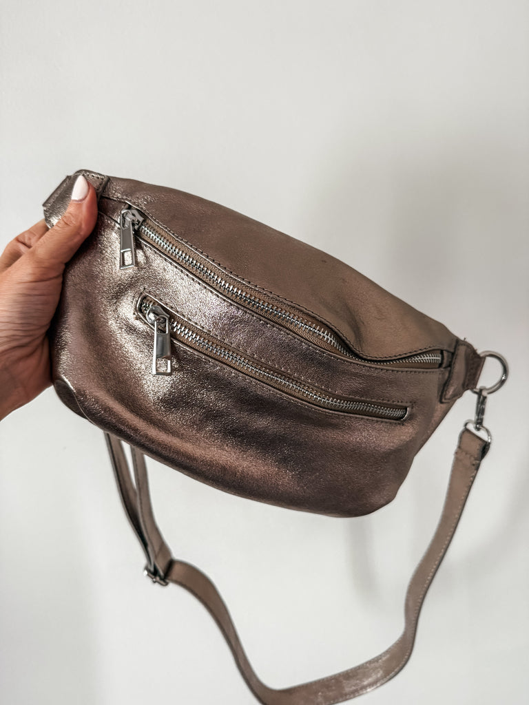 An essential shape - this Crossbody Bag offers versatility to your wardrobe, wear this round your waist, over your shoulder or across the body. Crafted from leather and shaped to a compact crescent silhouette. It's finished with an adjustable strap making it perfect for everyday styling.