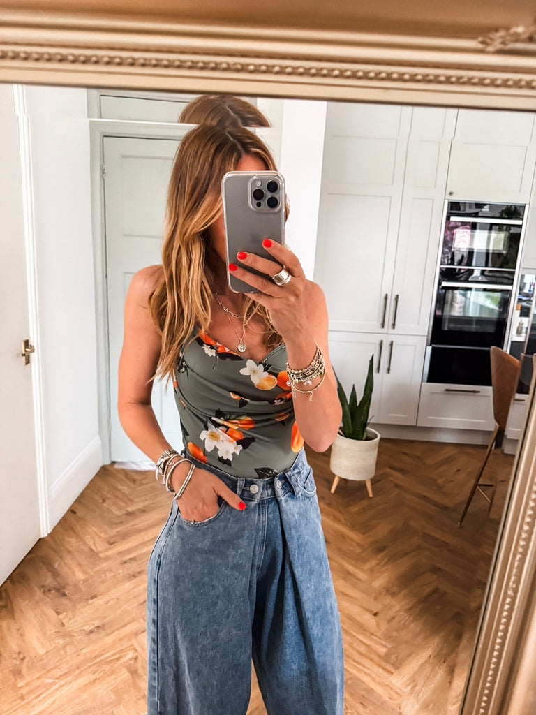 This is gorgeous!! Make a statement in our Orange Bodysuit, featuring playful cowl strappy detail and built-in bra cups for extra support. The vibrant citrus print flatters every skin tone, while the thong cut and elasticated back offer a sleek, comfortable fit. Bold, fun, and made to move with you.