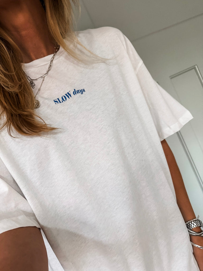 We love the Kamille T-Shirt for its ultra-relaxed fit, soft feel, and effortless attitude. The bold "Slow Days" slogan adds personality while keeping your look cool and casual. It’s the perfect throw-on piece for days when comfort and style are equally important.