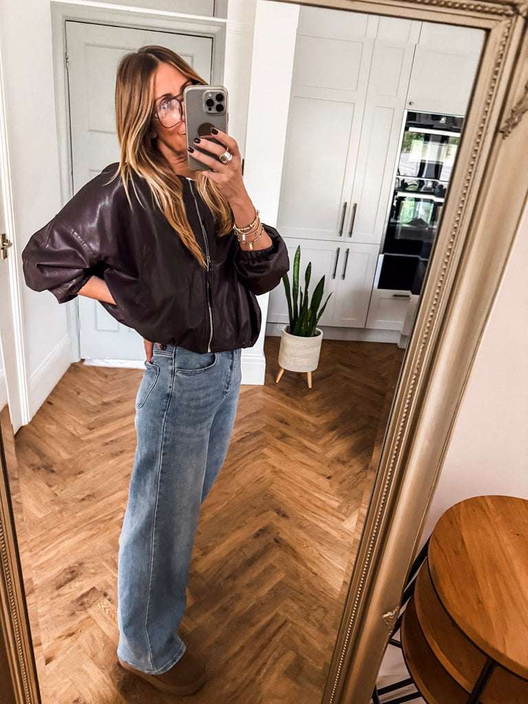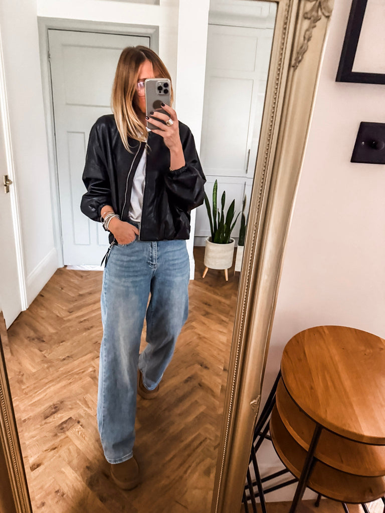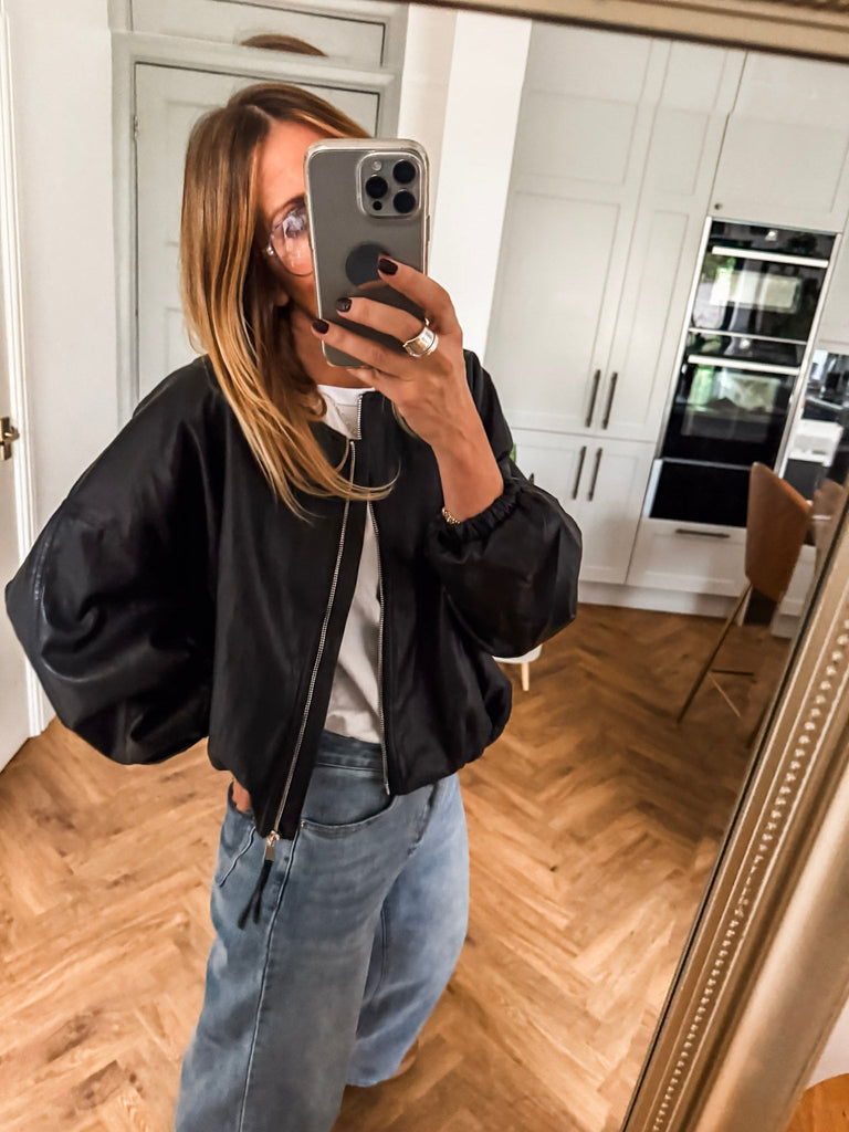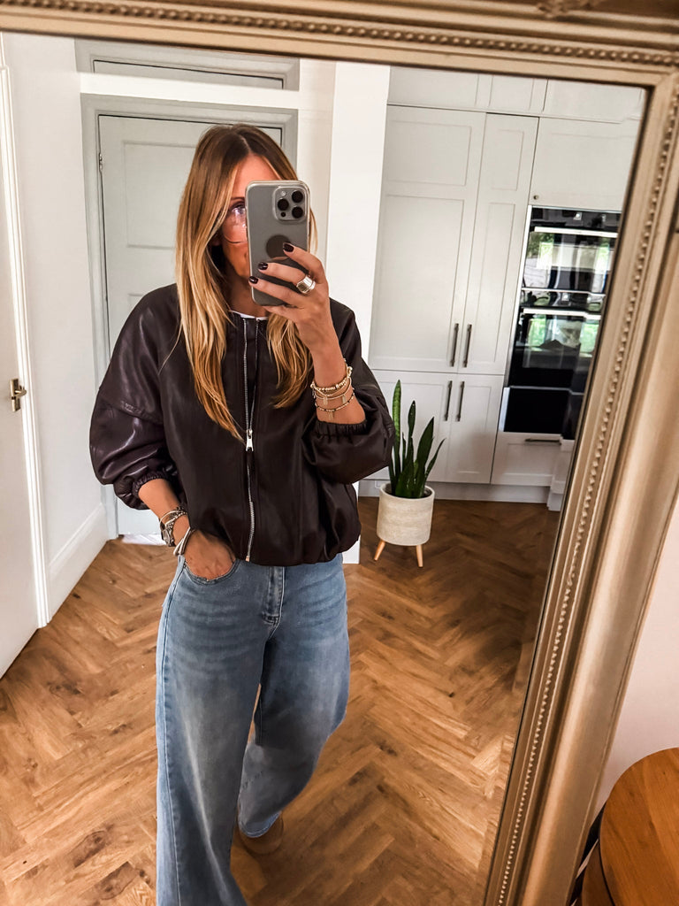 Make a fashion statement by layering this Faux Leather Bomber Jacket over a casual tee and high-waisted jeans for a cool and effortless street-style look. Want to add a touch of edge to a feminine dress? Throw on this jacket for a perfect blend of edgy and chic, making it ideal for day-to-night transitions.