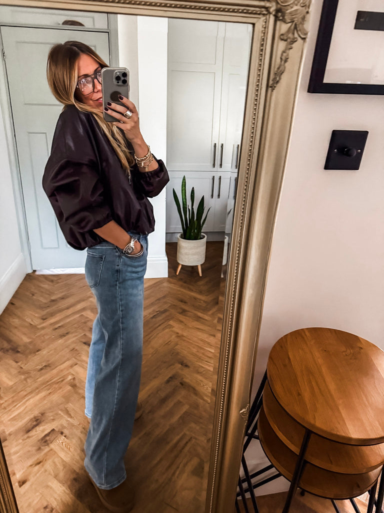 Style your wardrobe with our trendy Faux Leather Bomber Jacket, a versatile piece suitable for every season. Boasting a round neck, Zip fastening, and pockets, this jacket's sleek design ensures both comfort and style. The elasticated ruched hem adds a touch of urban chic to any outfit.
