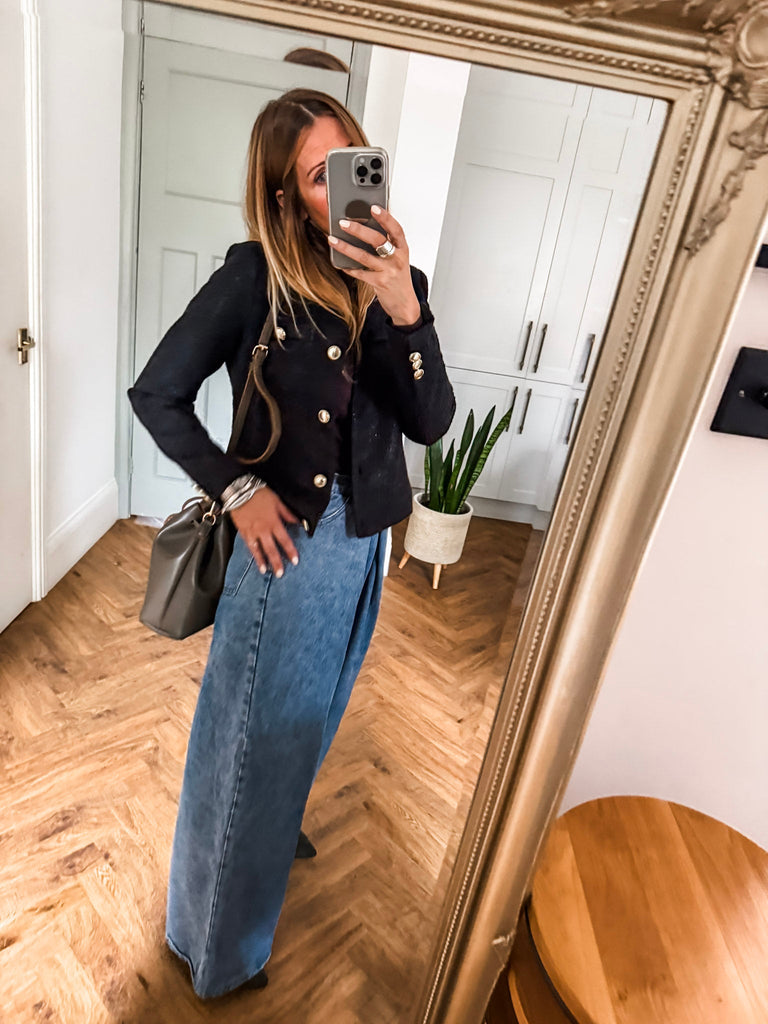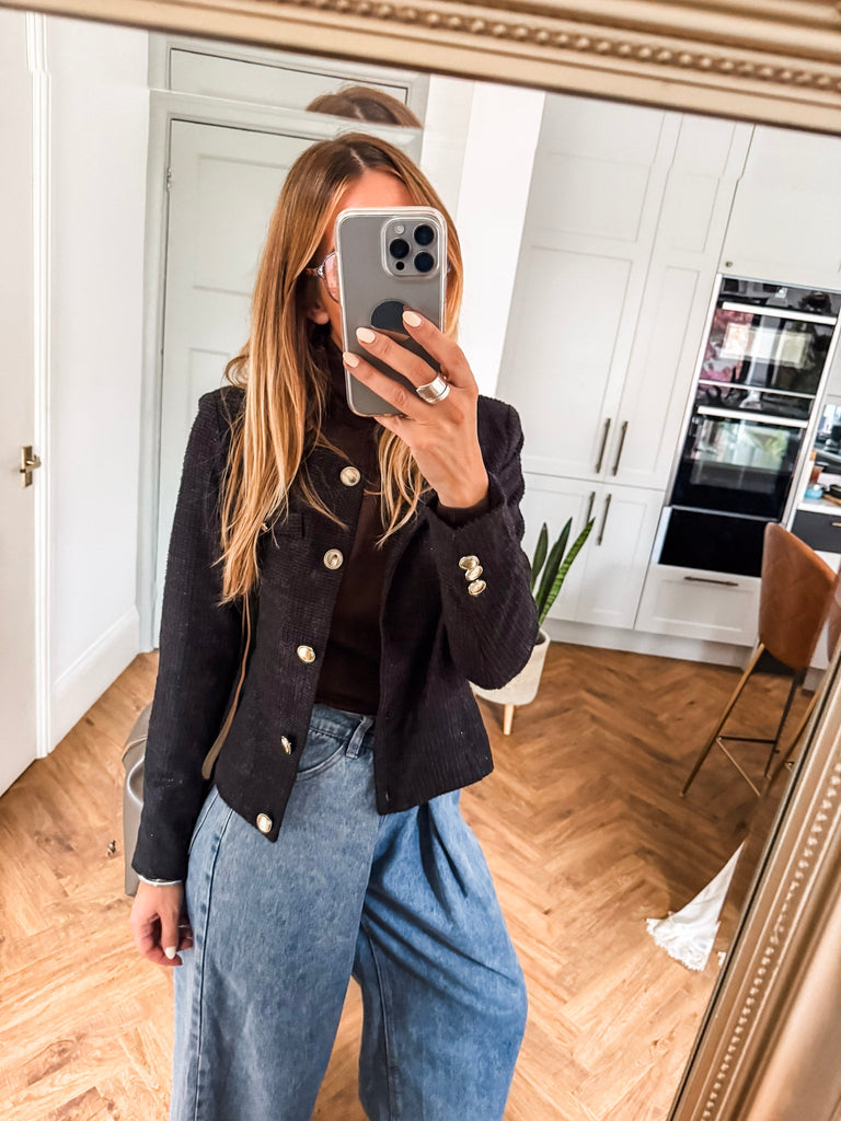 The ICHI Kate Gleam Jacket is loved for its blend of classic tailoring and subtle sparkle. Its flattering fit and gold button details bring instant sophistication with a fun, modern edge. It’s a versatile hero piece that effortlessly dresses up any look.