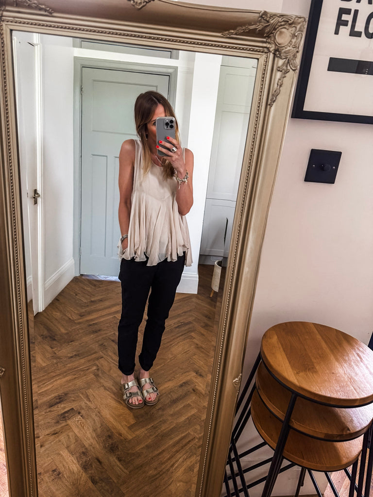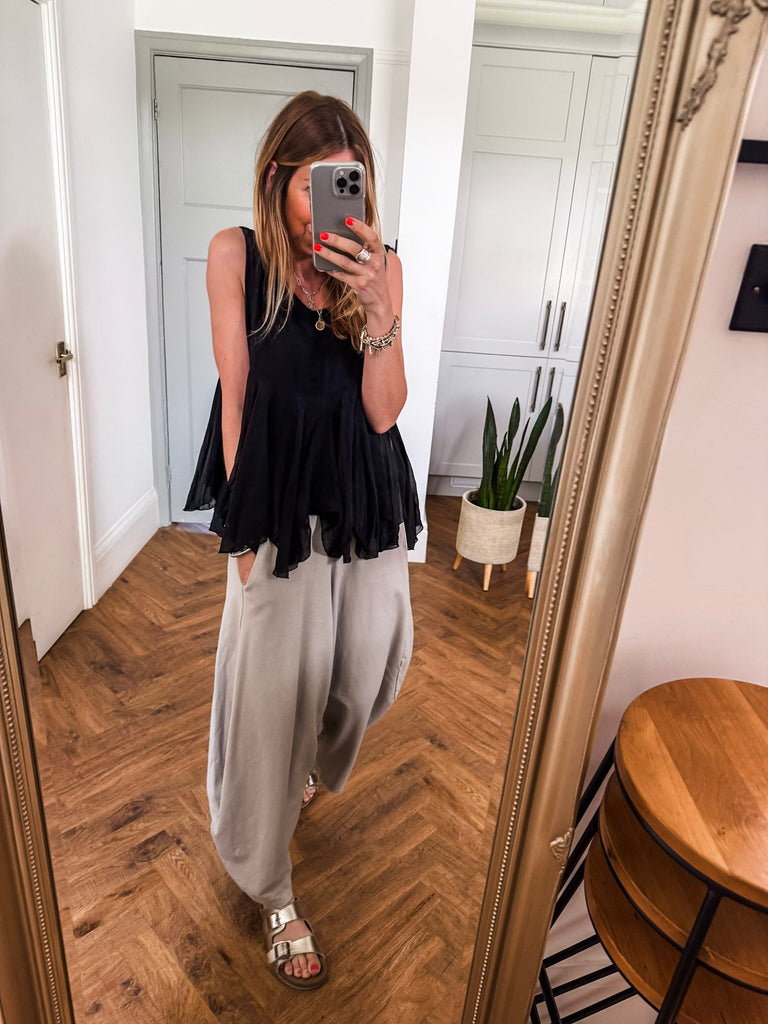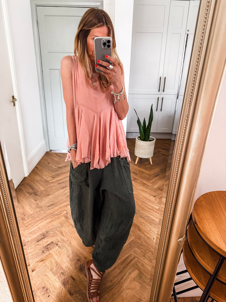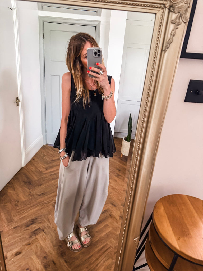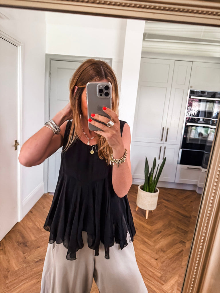 This top is such a gorgeous style. Stay effortlessly chic in the Waterfall Chiffon Vest—light, flowy, and designed to move with you. Its relaxed fit, sleeveless cut, and soft drape create an elegant yet easy silhouette. A go-to piece for adding a touch of polish to any look.