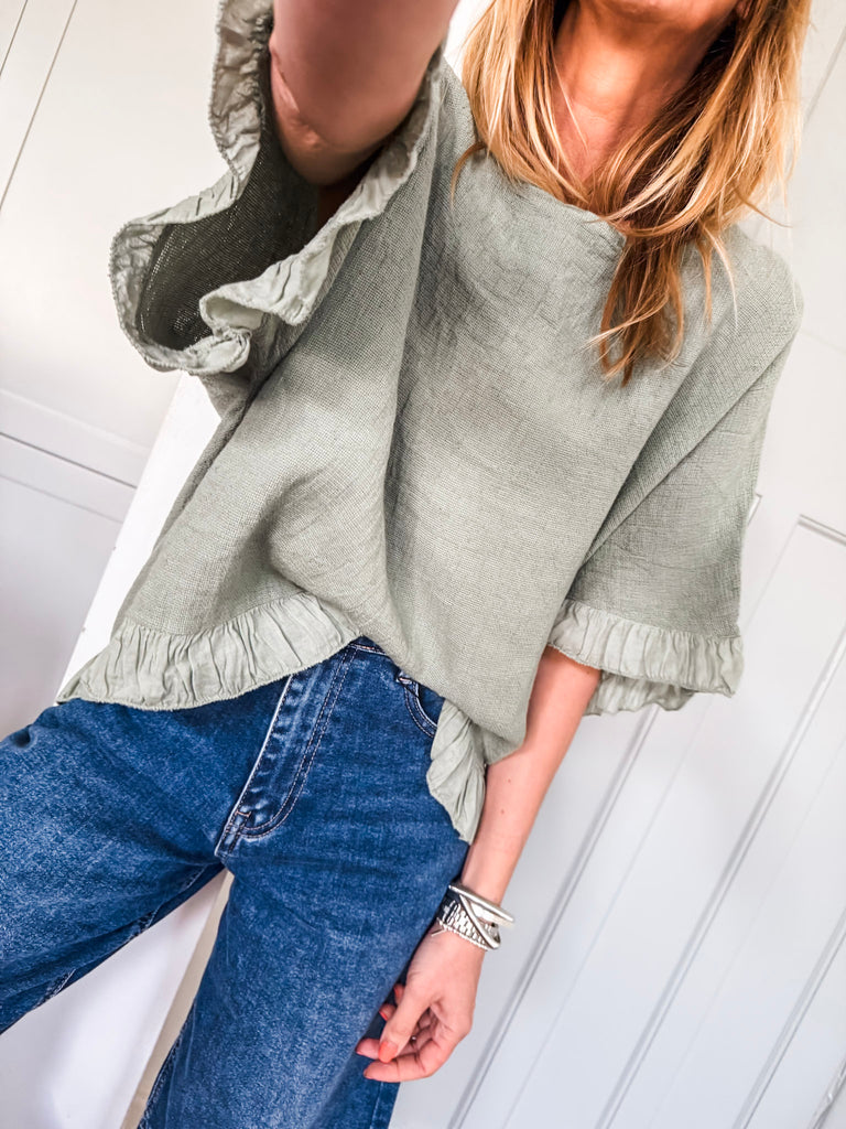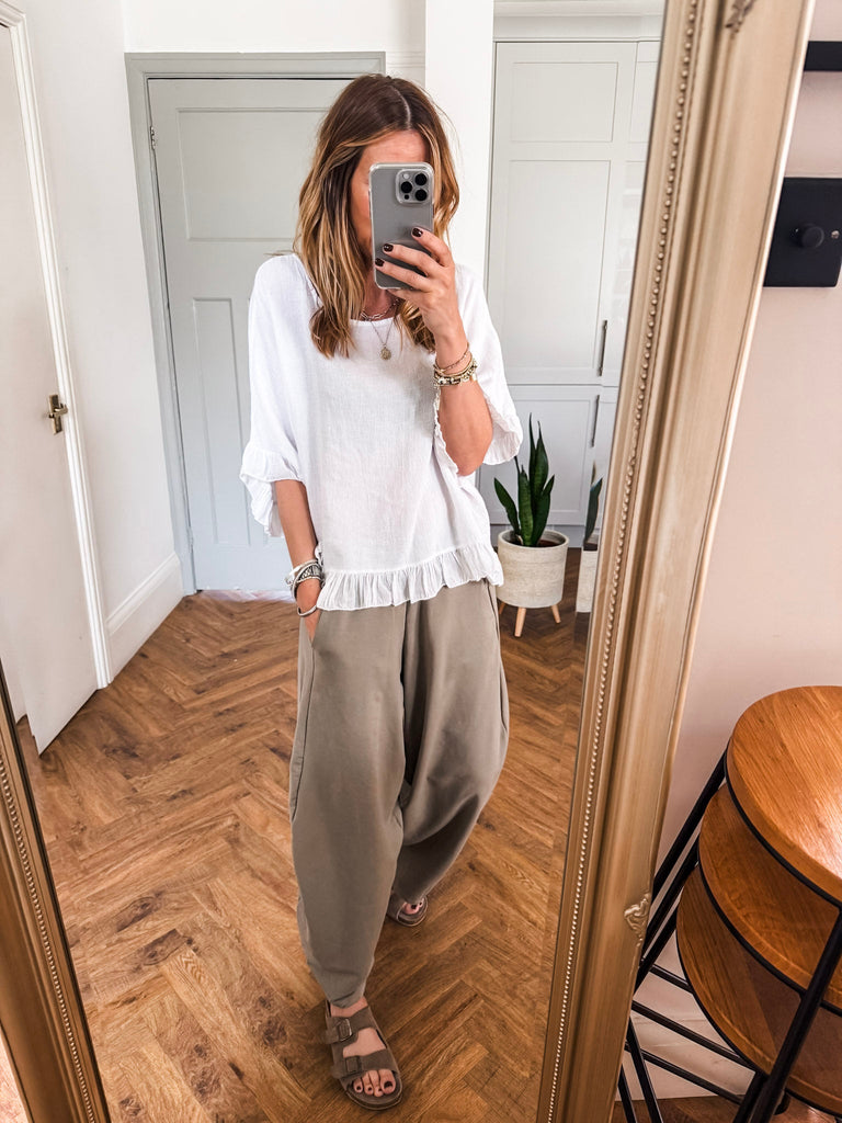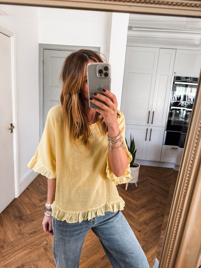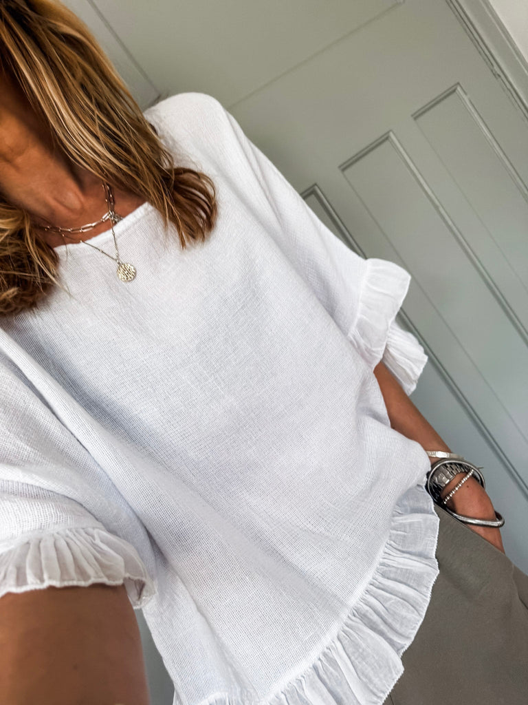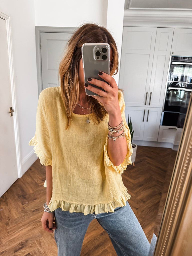This Waffle Cotton Frill Hem Top is a summer must-have for those who value both comfort and style. The relaxed fit, lightweight material, and frill details make it perfect for casual days.