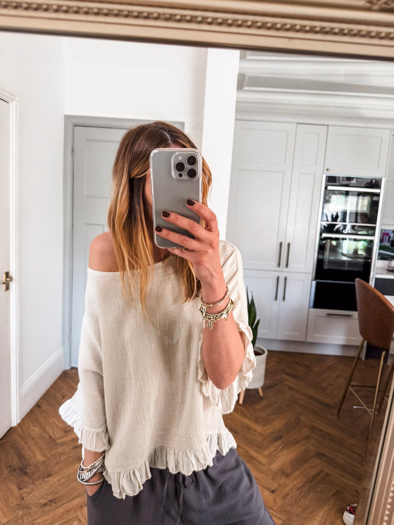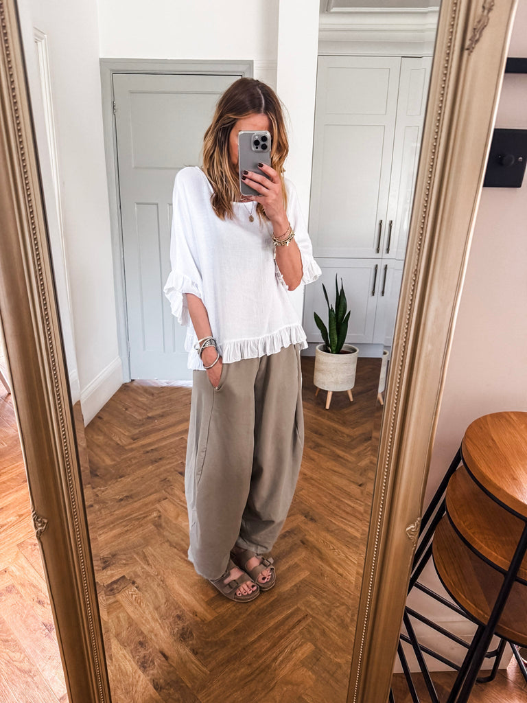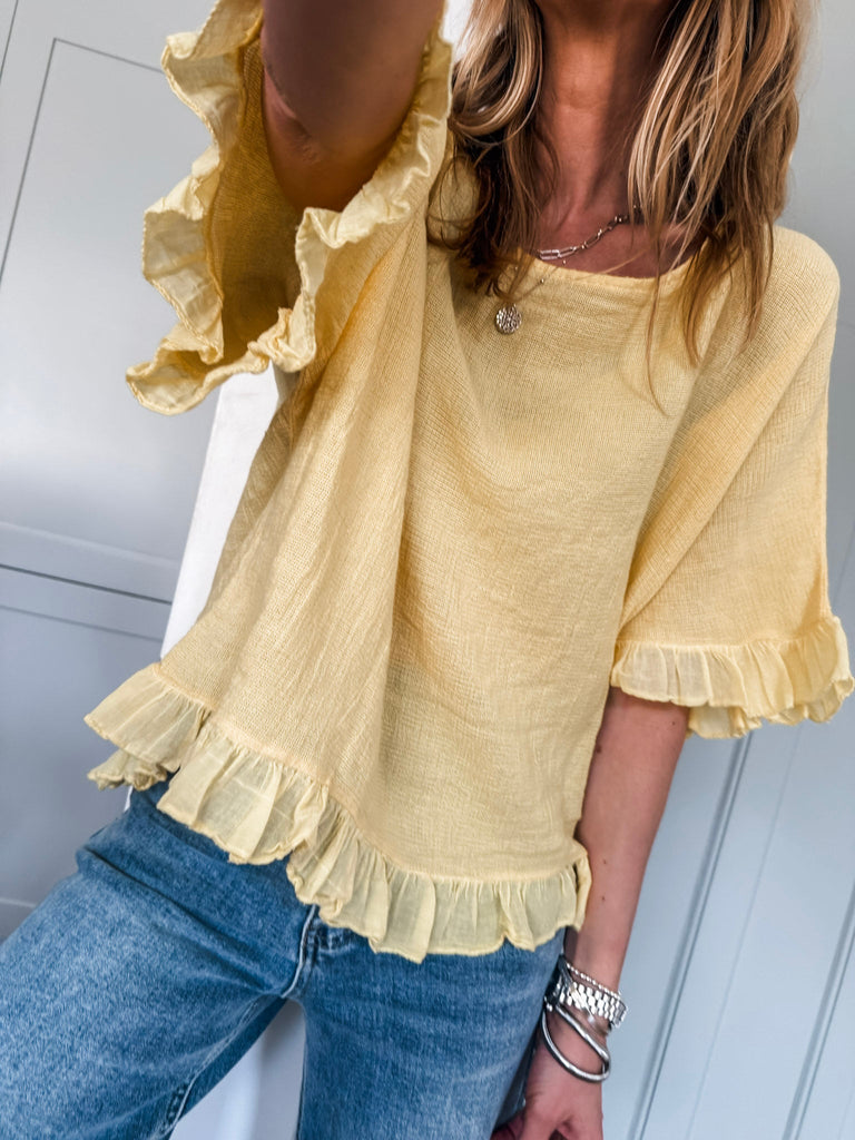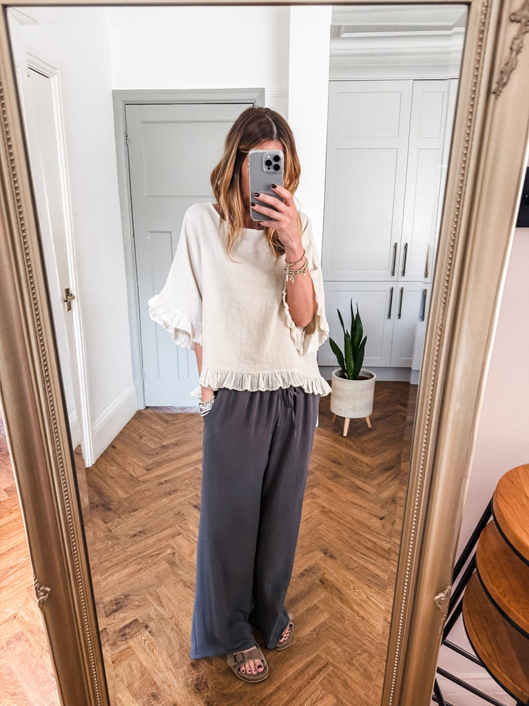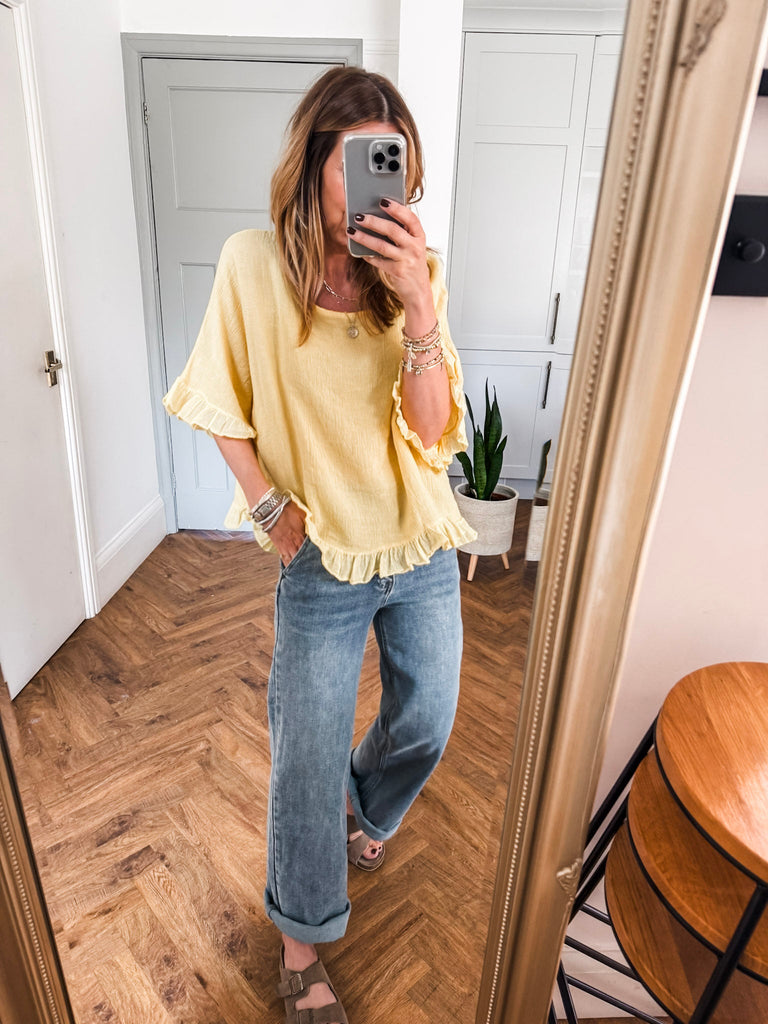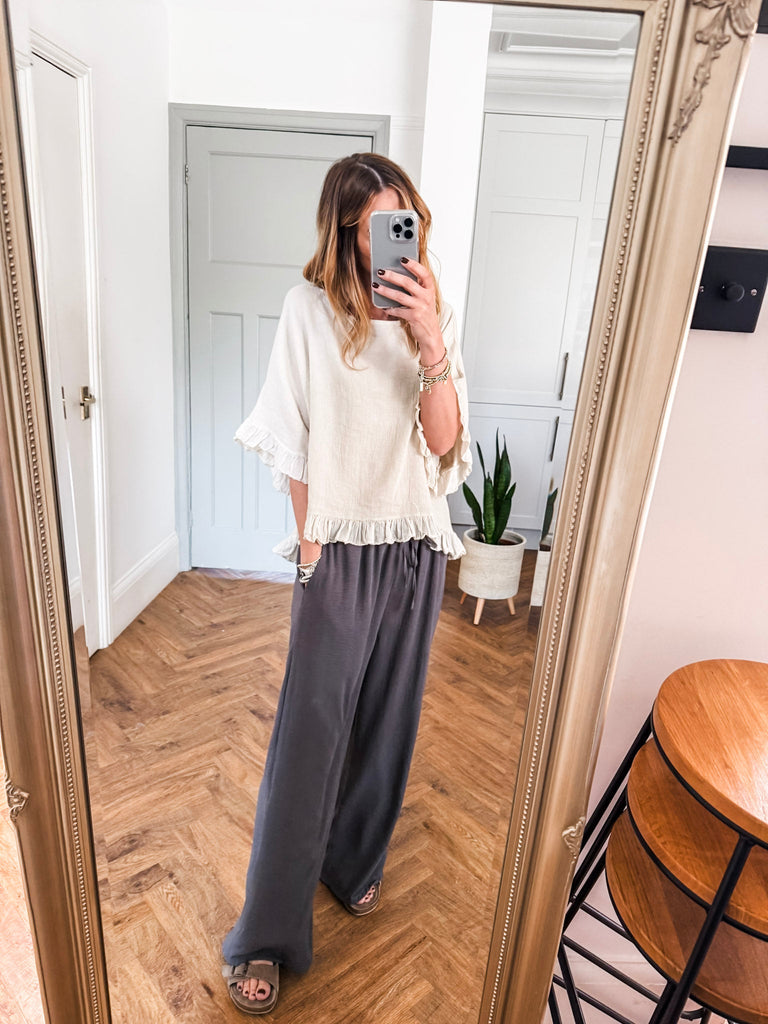 This Waffle Cotton Frill Hem Top is a summer must-have for those who value both comfort and style. The relaxed fit, lightweight material, and frill details make it perfect for casual days.