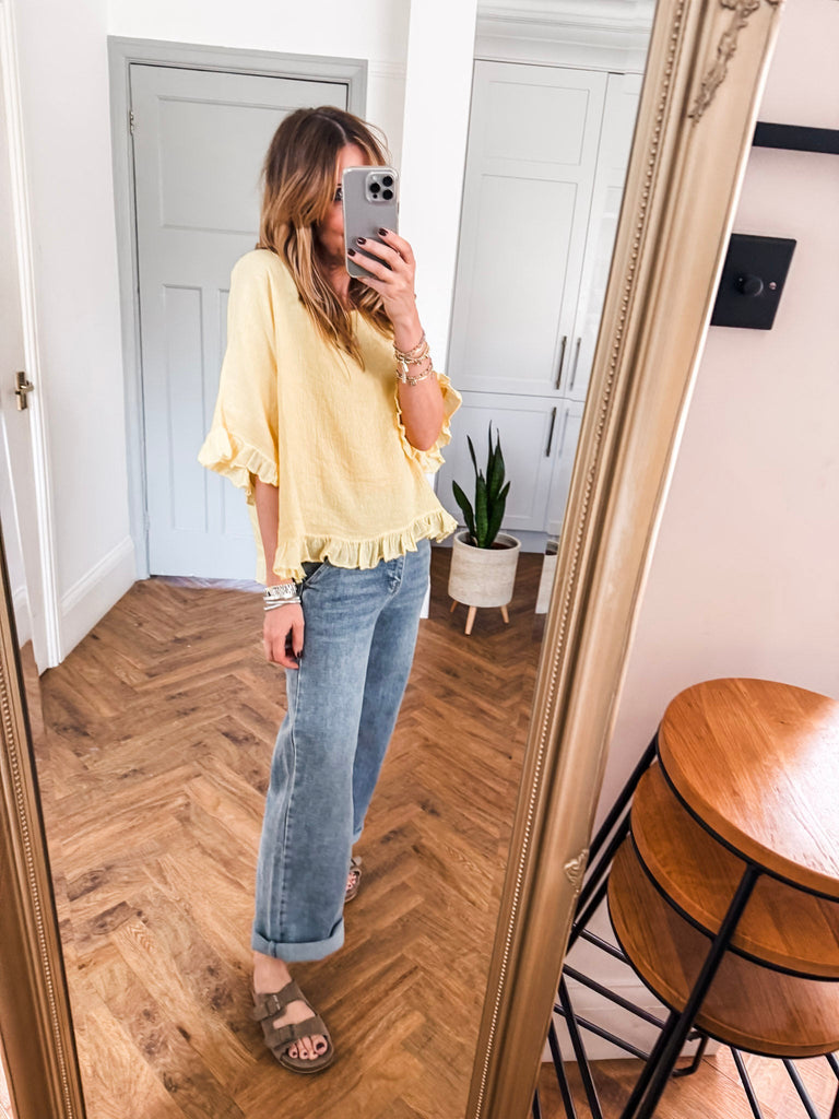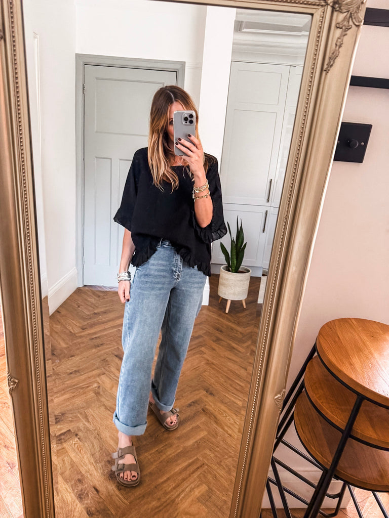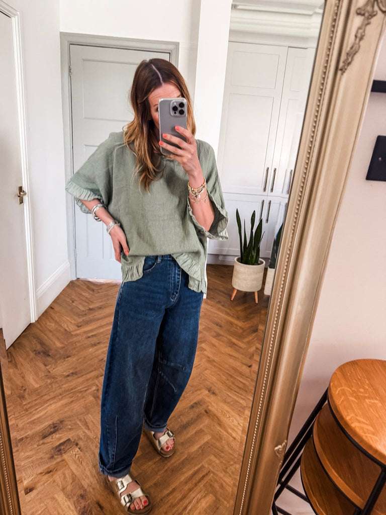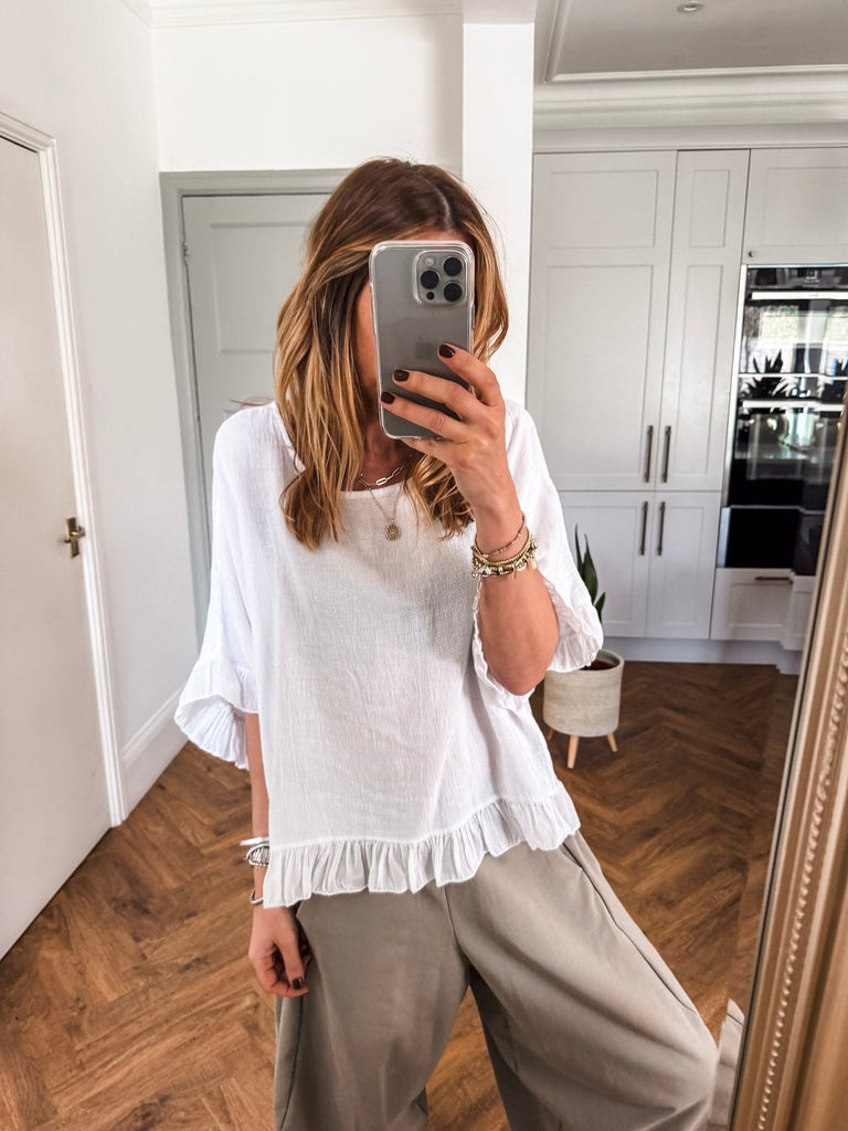 This versatile Waffle Cotton Frill Hem Top can be dressed up or down to suit any occasion. Pair it with denim shorts and sandals for a casual daytime look, or dress it up with wide leg trousers and wedges for a summer evening out. Its frill hem adds a touch of elegance and femininity to any outfit.