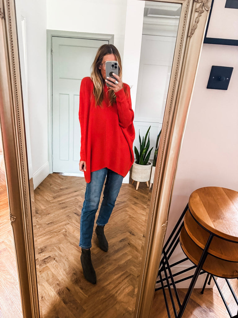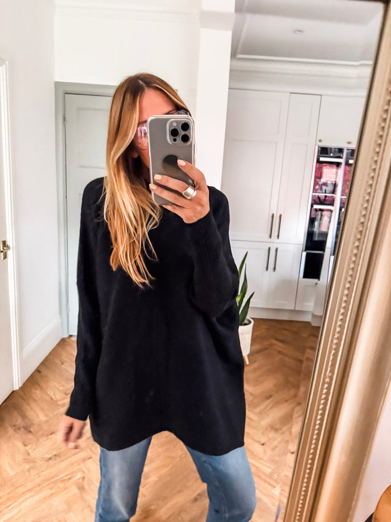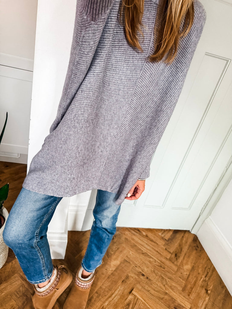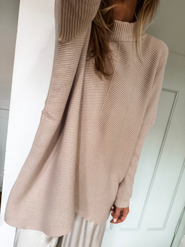 Pair the Funnel Knit Jumper with skinny jeans and boots for a cozy yet stylish look. Layer it over a mini skirt and tights for a trendy twist on cold days. Add a crossbody bag and simple accessories to complete the effortlessly chic outfit.