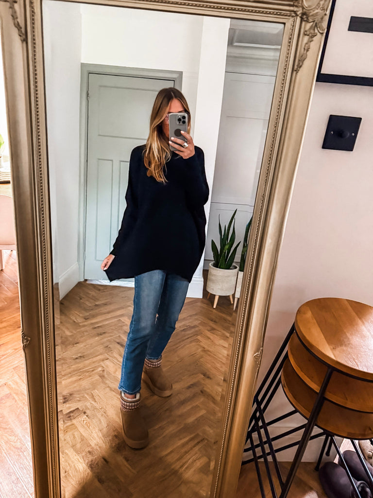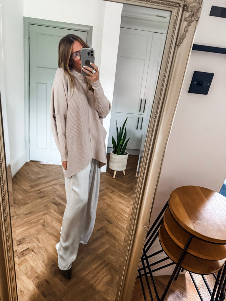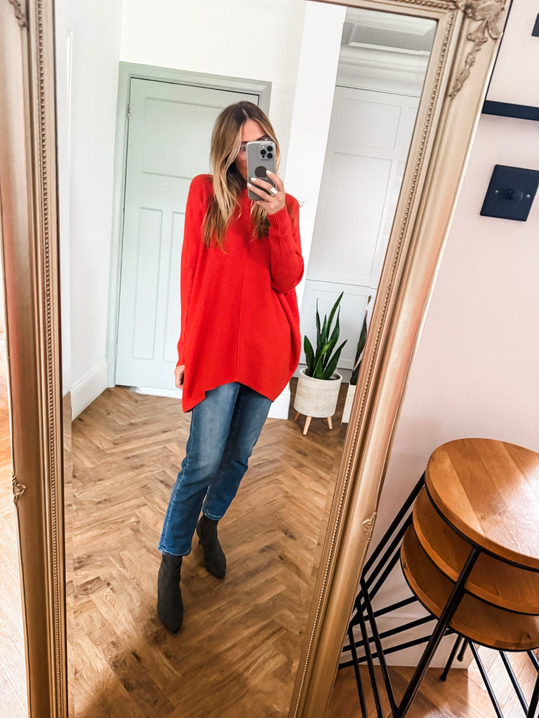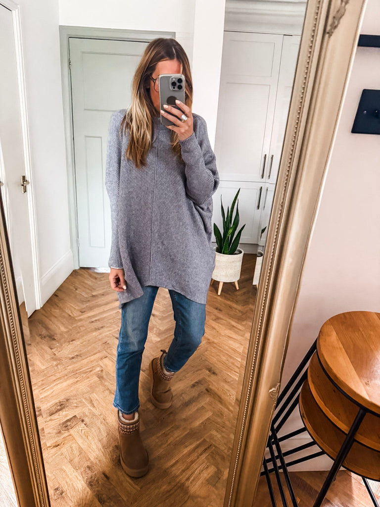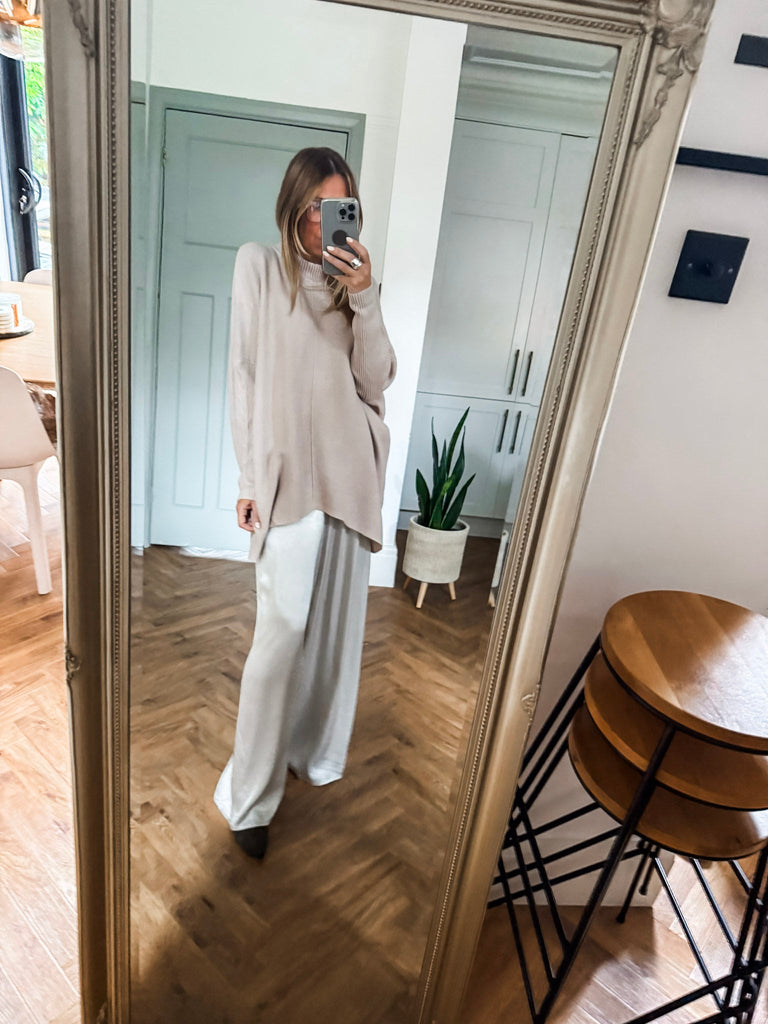 Pair the Funnel Knit Jumper with skinny jeans and boots for a cozy yet stylish look. Layer it over a mini skirt and tights for a trendy twist on cold days. Add a crossbody bag and simple accessories to complete the effortlessly chic outfit.