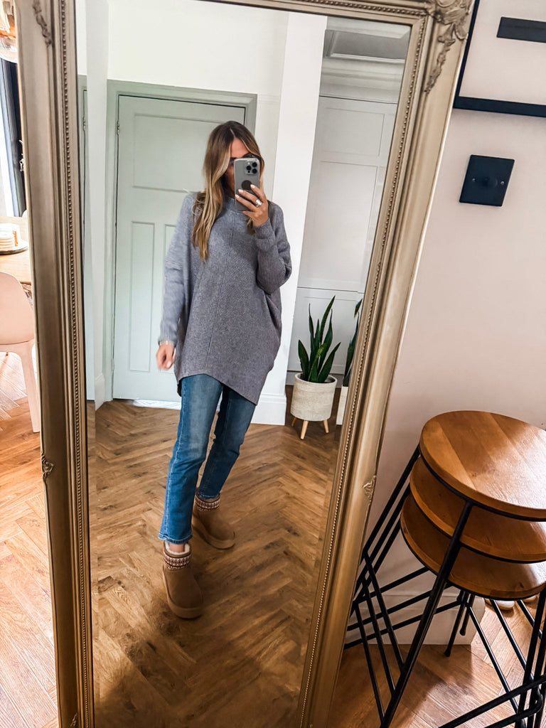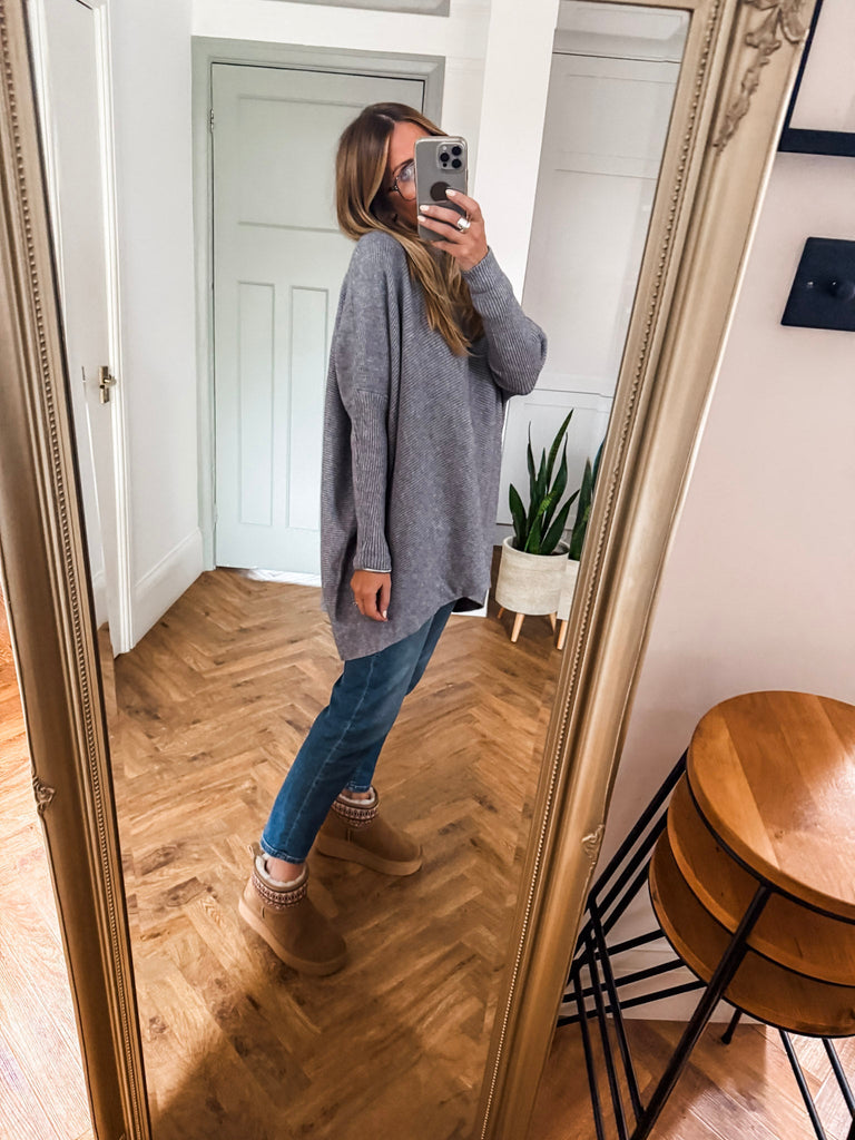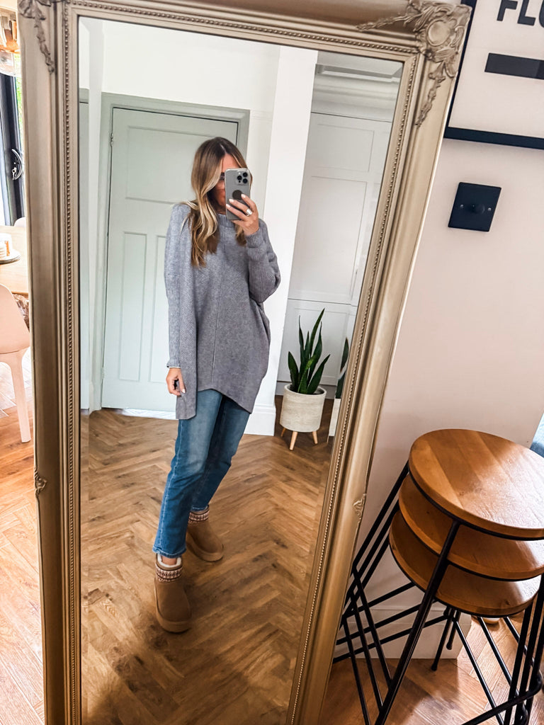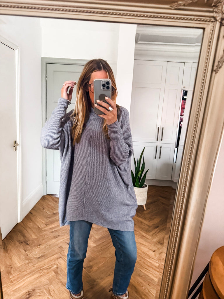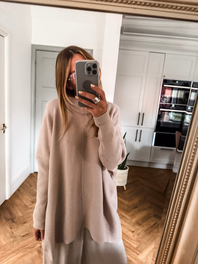 This gorgeous warm, cosy and chic Funnel Neck Oversized Knit Jumper , designed with long sleeves and an oversized fit. The trendy crew neck adds a bold touch, perfect for cooler days. A must-have piece that blends style and comfort effortlessly. Perfect for those lovely walks and school runs. Pair this with jeans/leggings and your go to trainers.