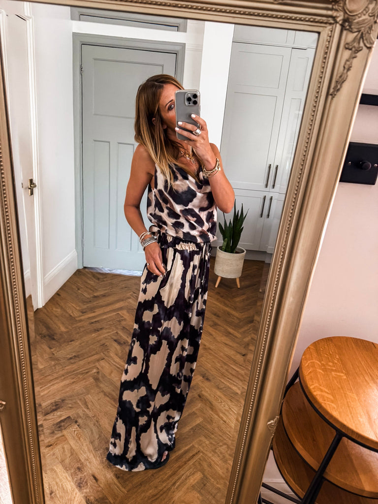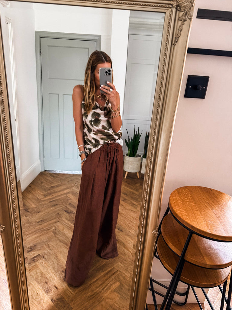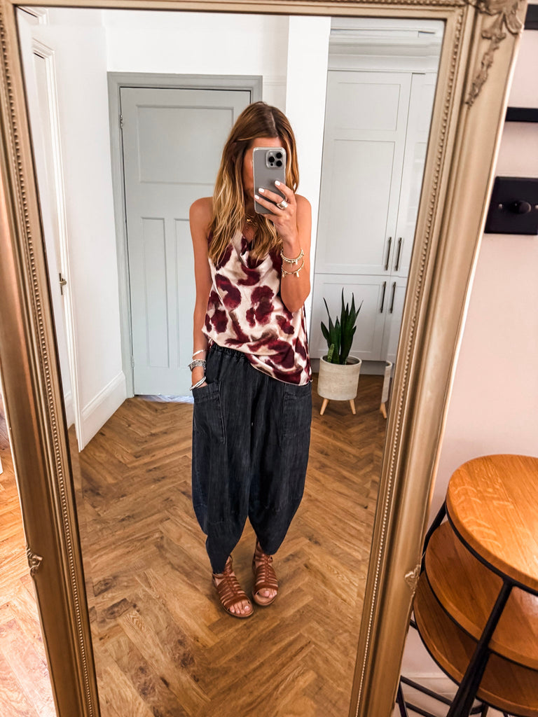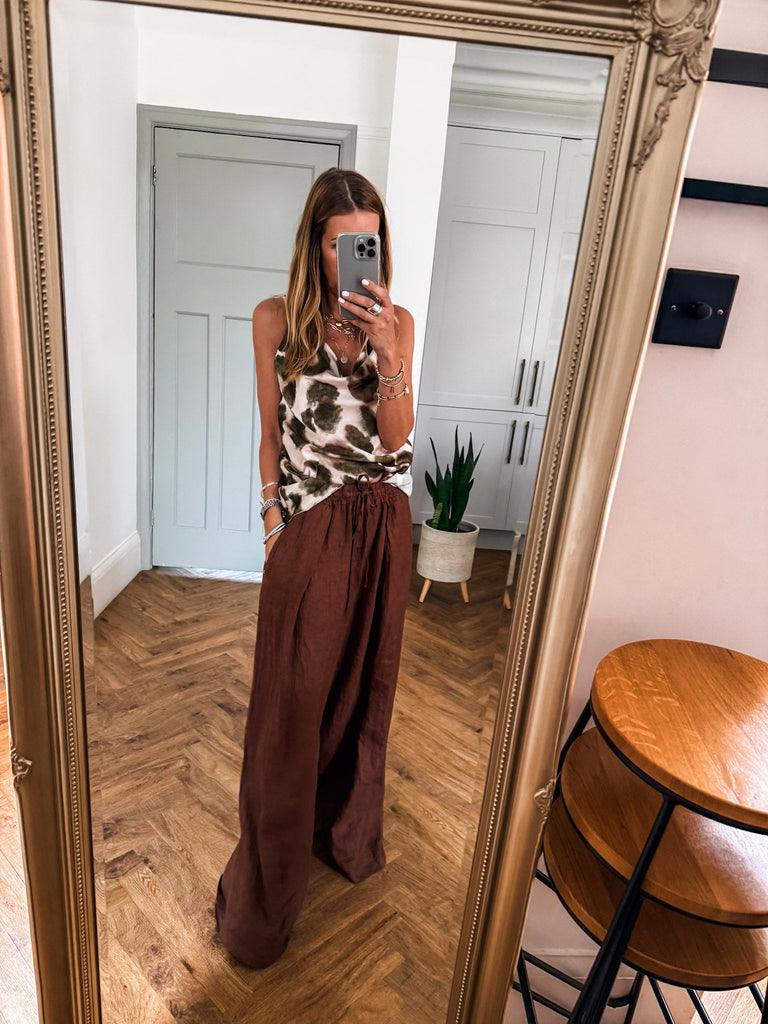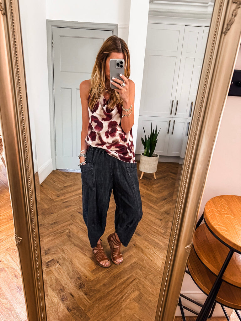 We love this vest for its striking print, luxurious satin feel, and effortlessly chic silhouette. The cowl neckline and delicate straps offer just the right mix of bold and refined. It’s the perfect piece to add instant impact to any outfit, day or night.