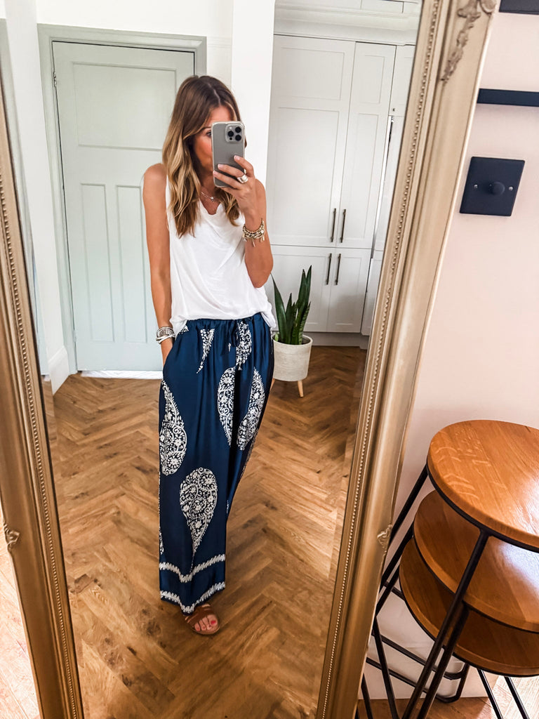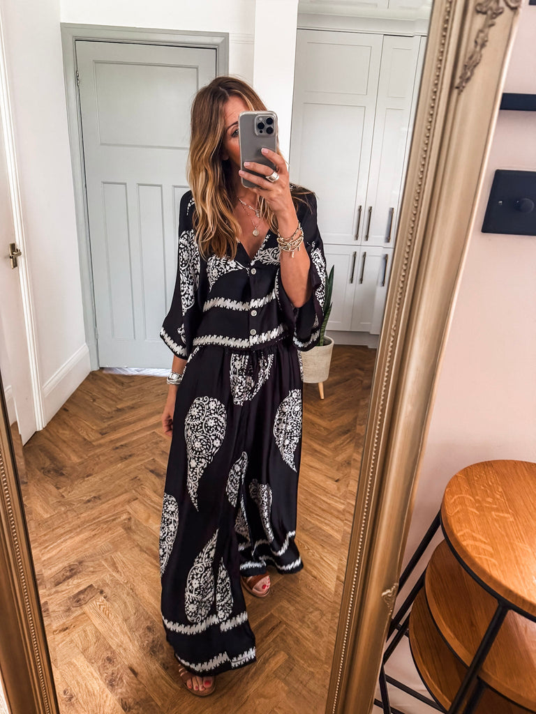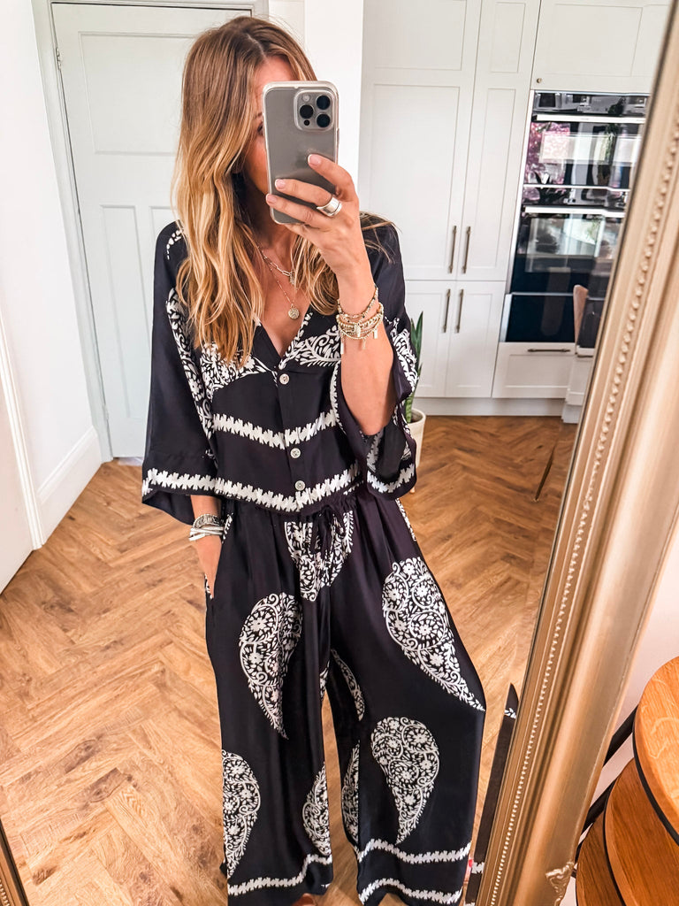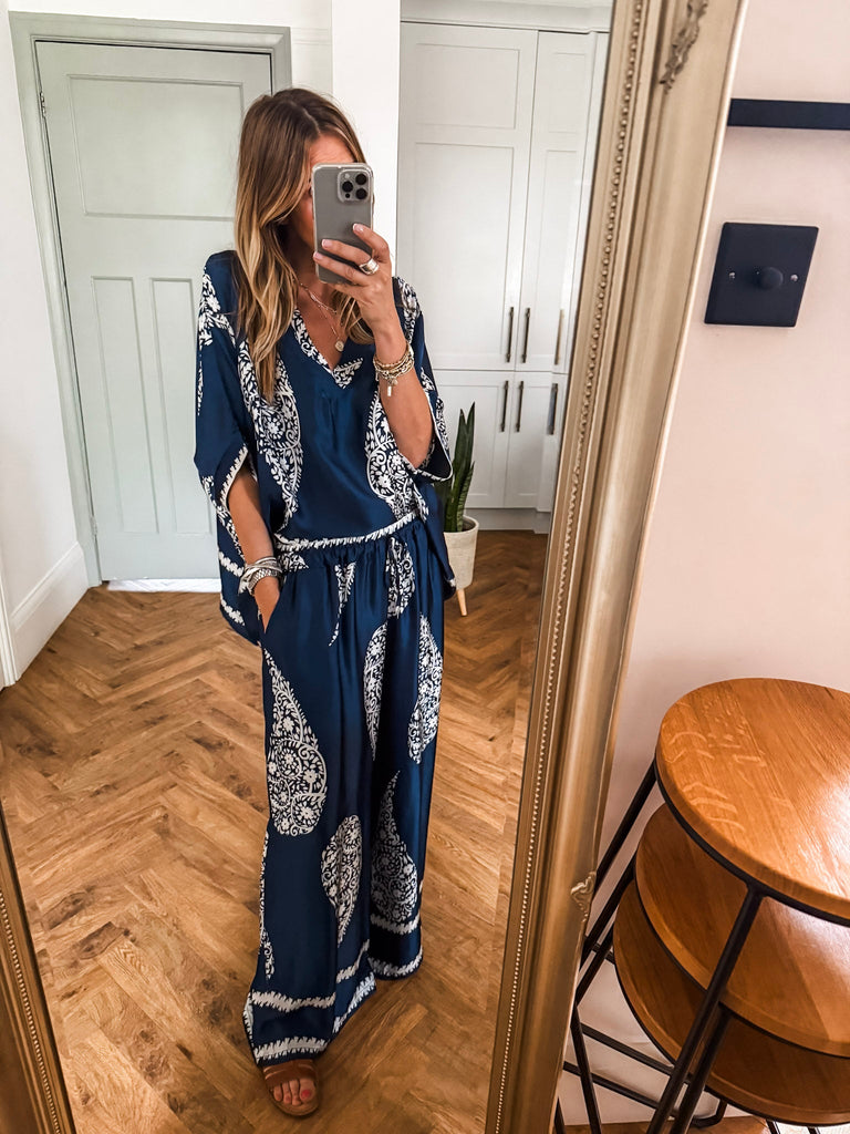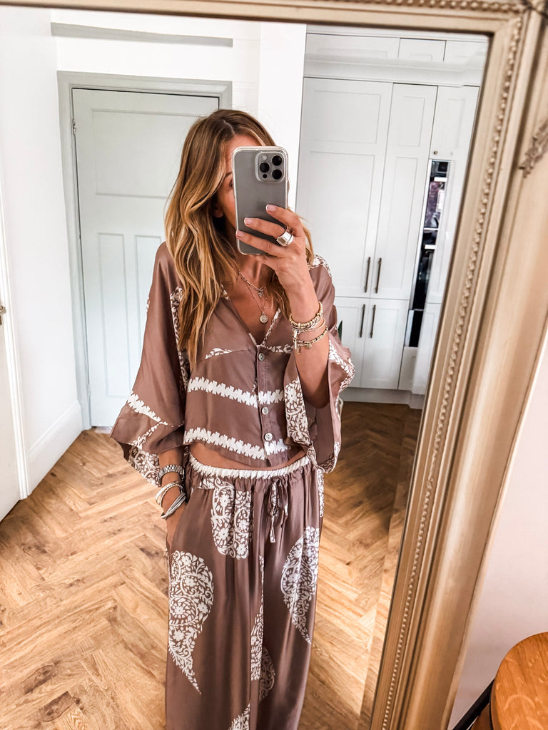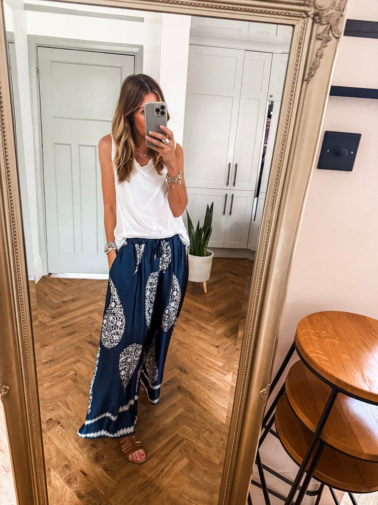 Effortlessly cool, these Paisley Print Satin Wide Leg Trousers blend comfort with standout style. The silky satin, elasticated waist, and wide-leg cut offer a relaxed yet refined fit. With practical pockets, they’re your go-to for laid-back days or elevated evenings.