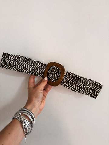 Woven Round Wood Buckle Belt
