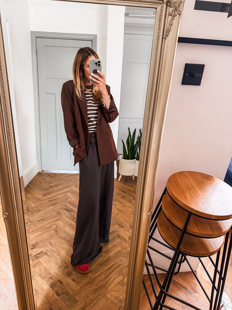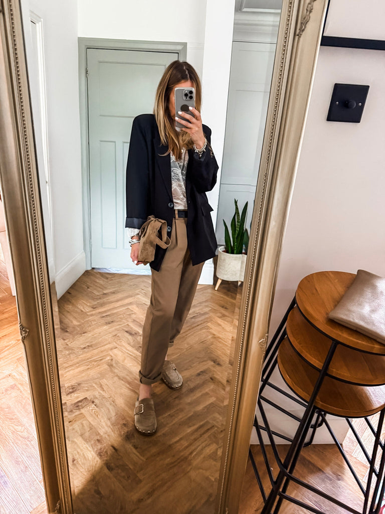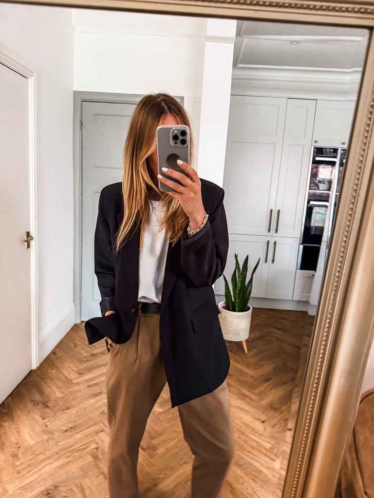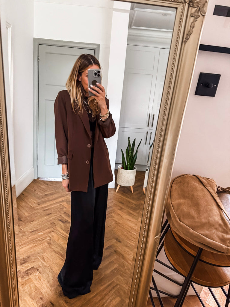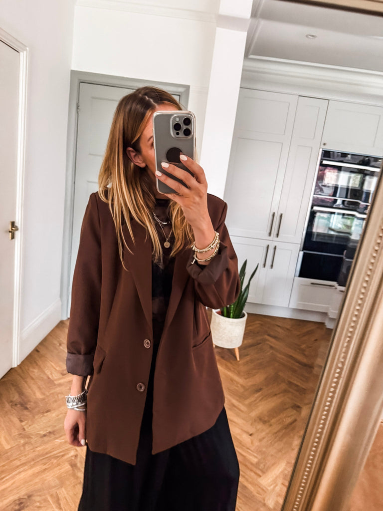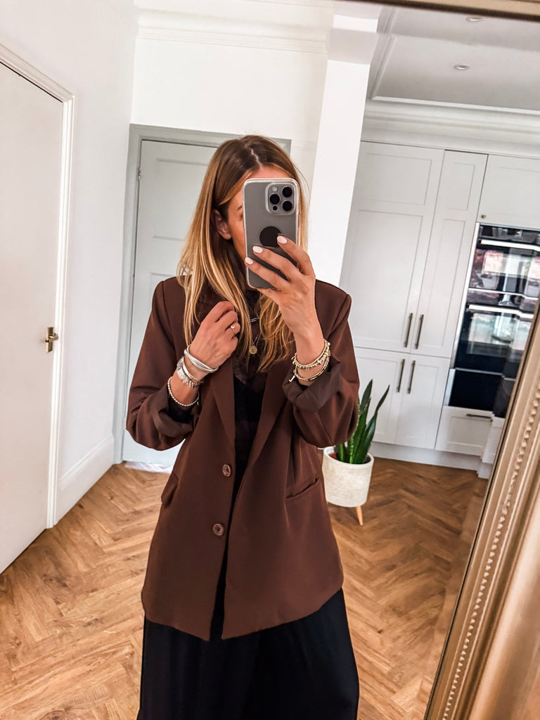 We love this blazer for its effortless blend of structure and ease. The bold buttons and clean lines make it a standout, while the relaxed fit keeps it comfortable and wearable. It’s the kind of piece that instantly pulls any outfit together.