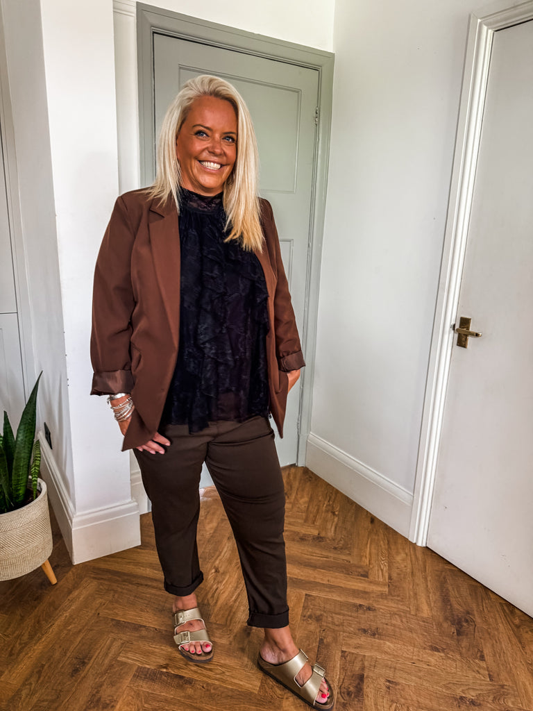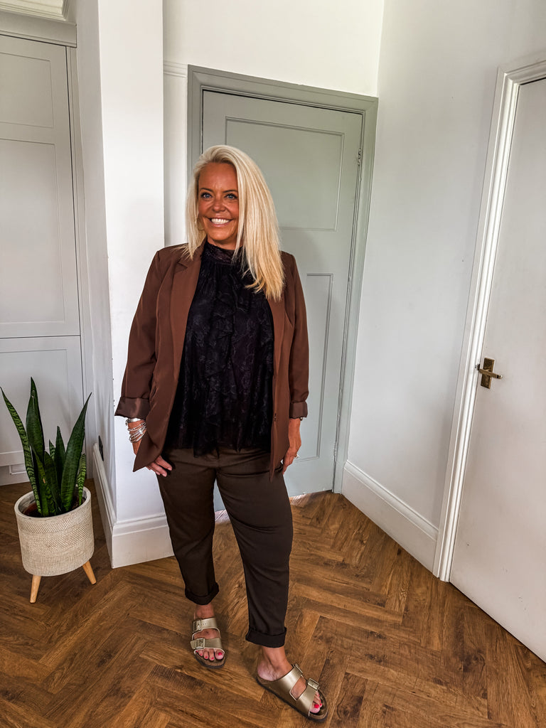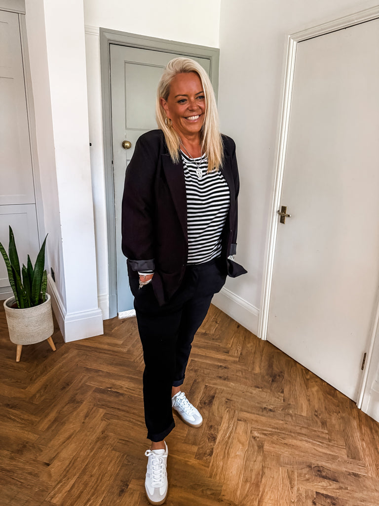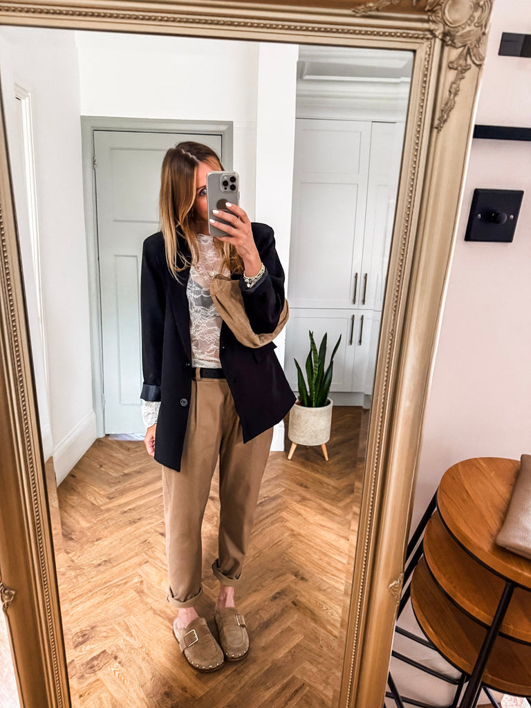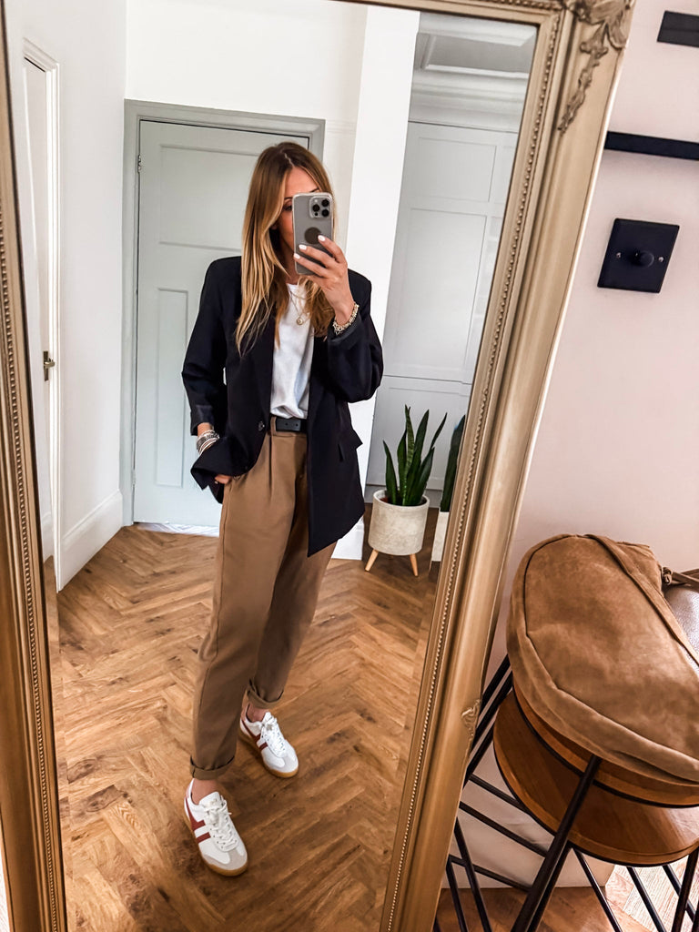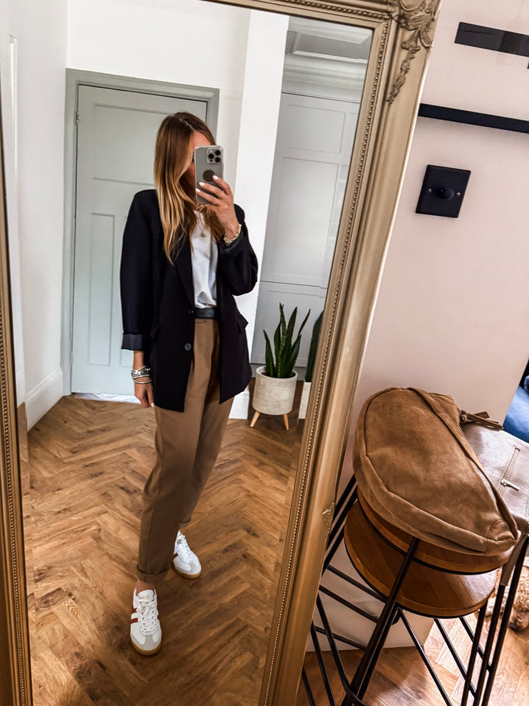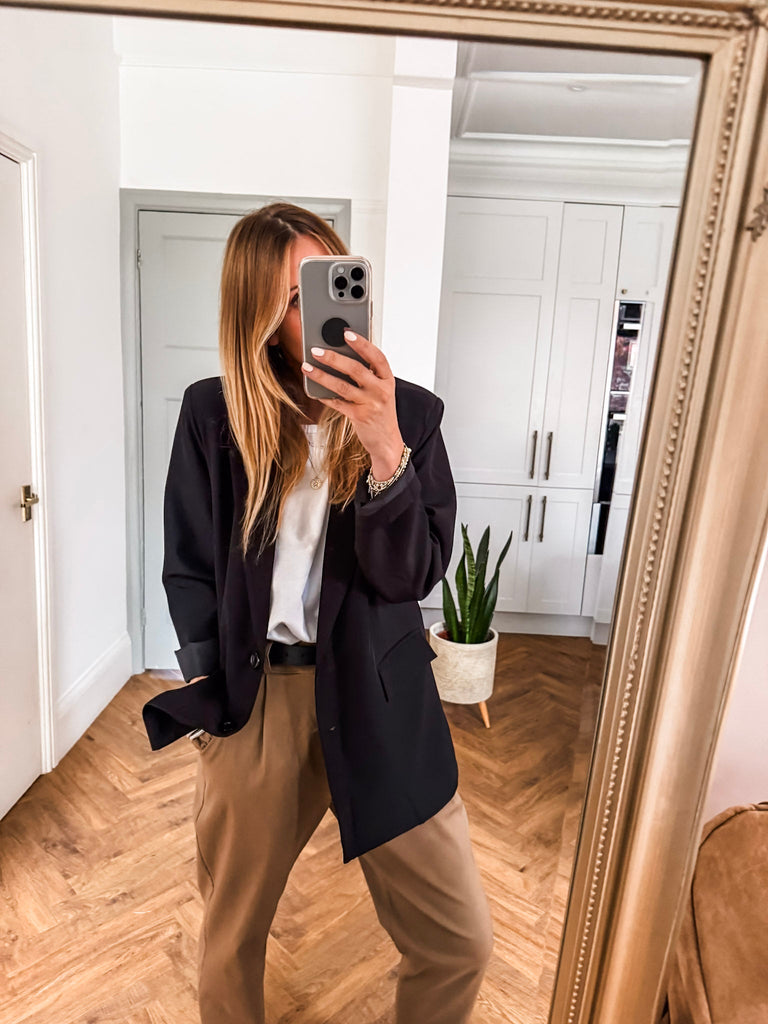 We love this blazer for its effortless blend of structure and ease. The bold buttons and clean lines make it a standout, while the relaxed fit keeps it comfortable and wearable. It’s the kind of piece that instantly pulls any outfit together.