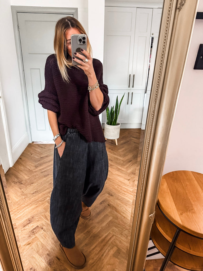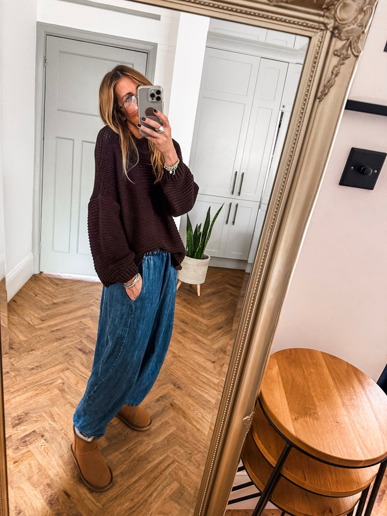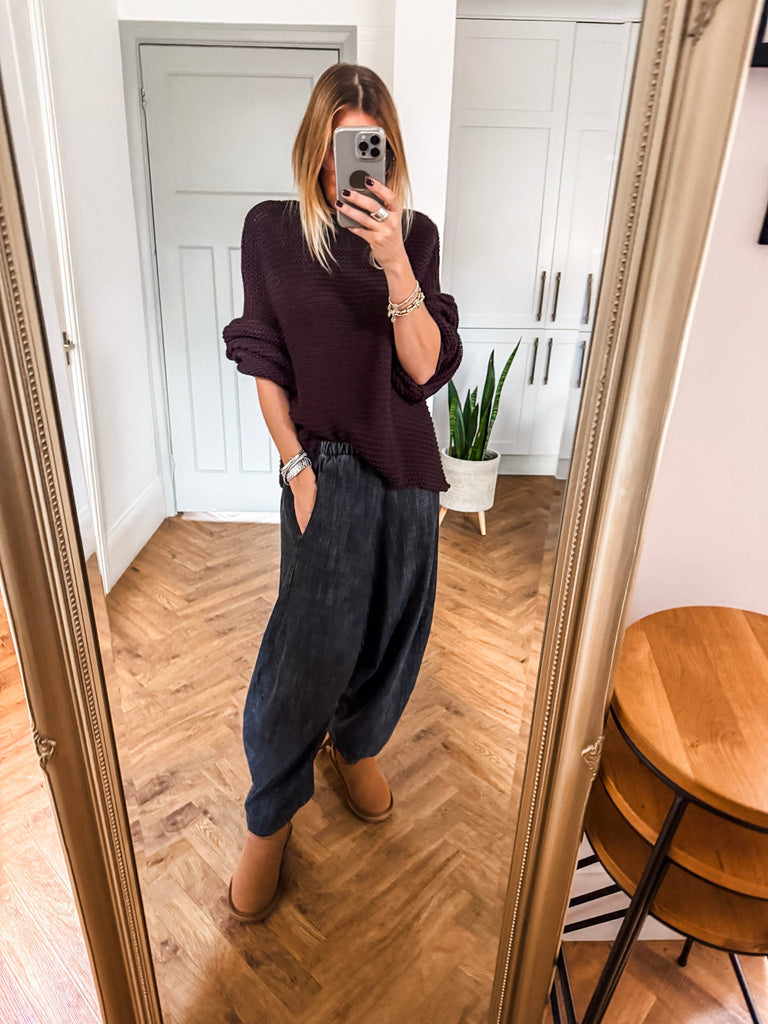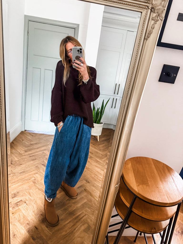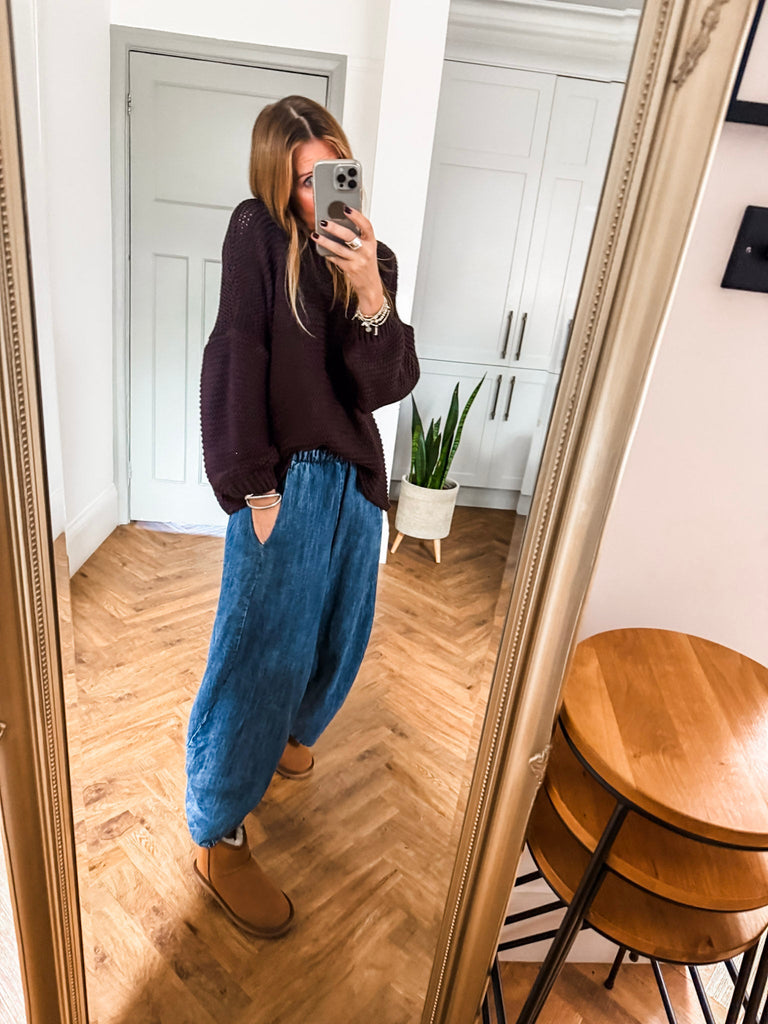We love these balloon pants for their perfect mix of comfort, style, and versatility. The high-quality denim and relaxed silhouette offer a flattering fit, while the pockets add practical charm. Effortlessly chic, they’re a go-to piece that brings both fashion and function to your wardrobe.