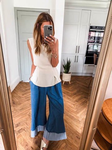 These are gorgeous!! Effortlessly stylish, these Denim Turnup Wide Leg Trousers feature a relaxed fit with a chic turn-up detail. The elasticated waist ensures all-day comfort, while the cropped length design adds a modern touch. A versatile wardrobe staple perfect for any occasion. You can dress these up & down with different tops and footwear..
