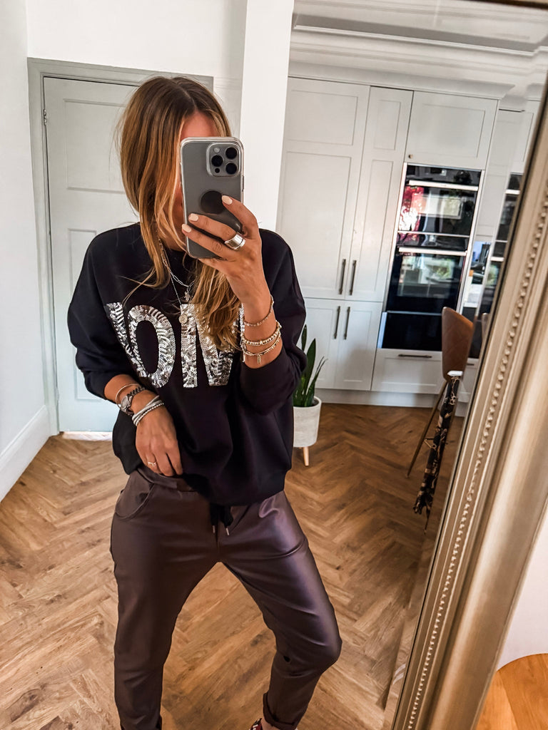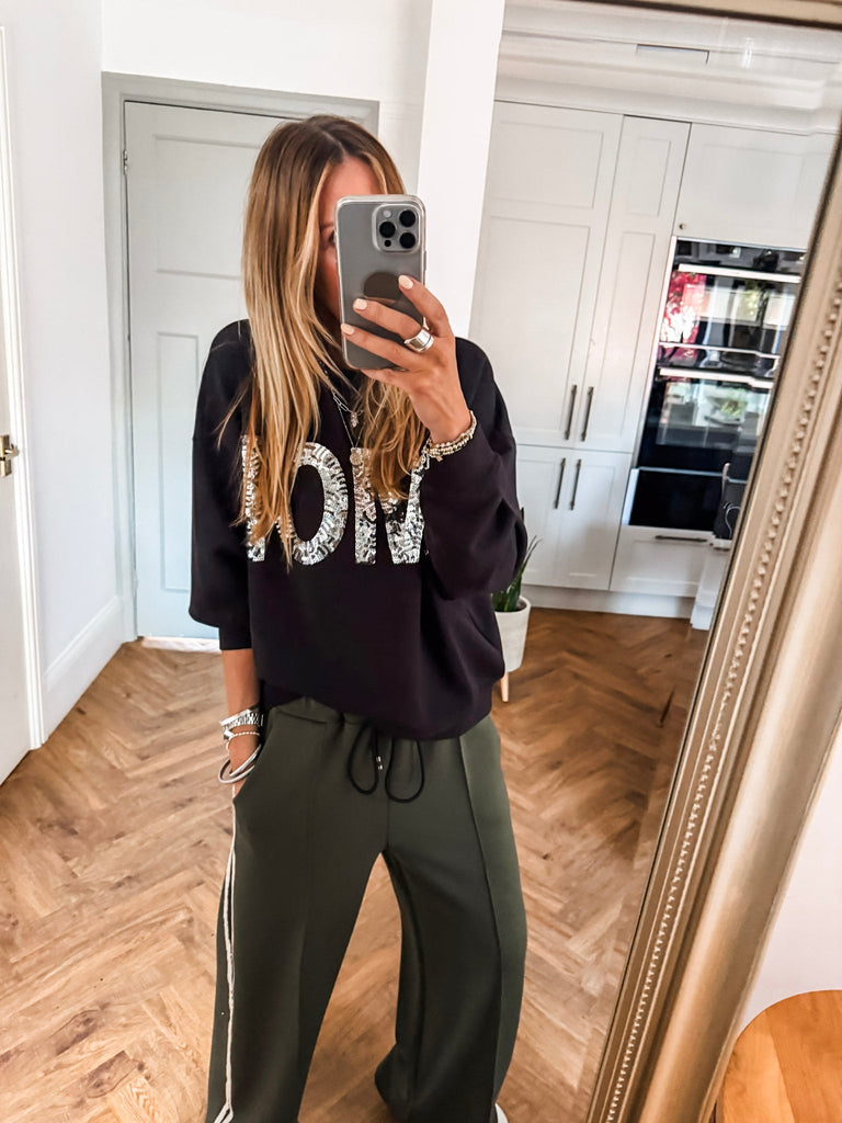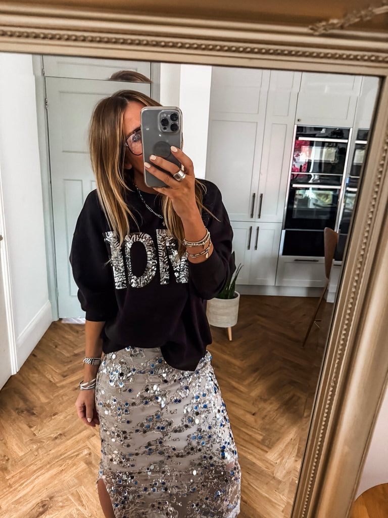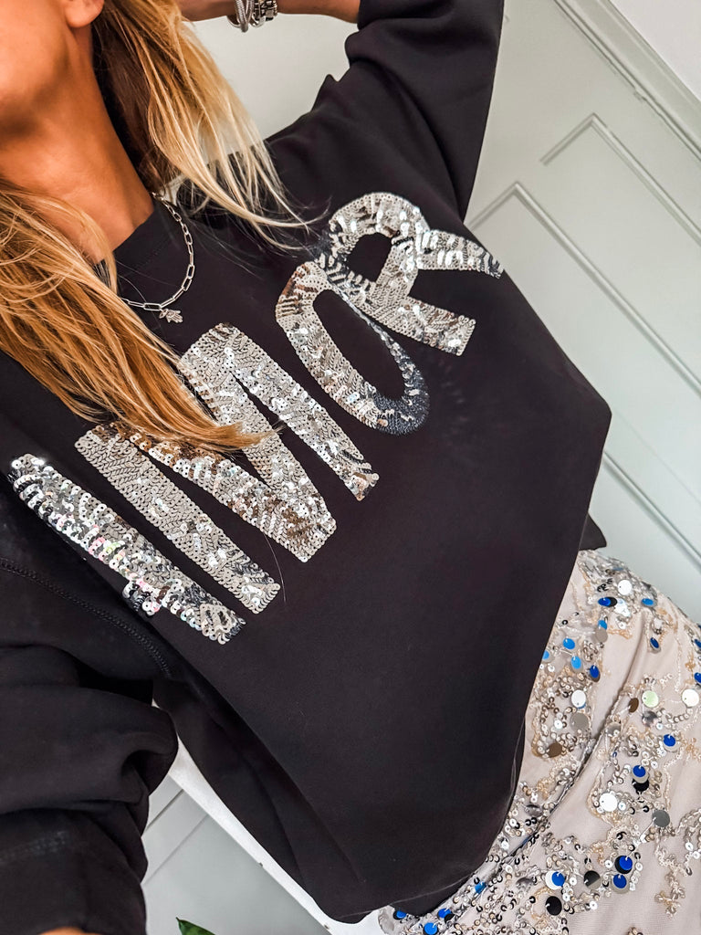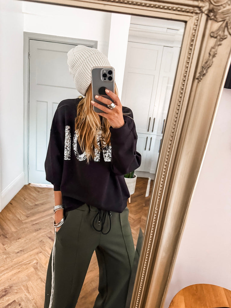 We love this sweatshirt for its perfect mix of comfort and sparkle. The subtle sequin detailing adds a touch of glamour to everyday outfits. It’s a versatile piece that effortlessly elevates your wardrobe from casual to chic.