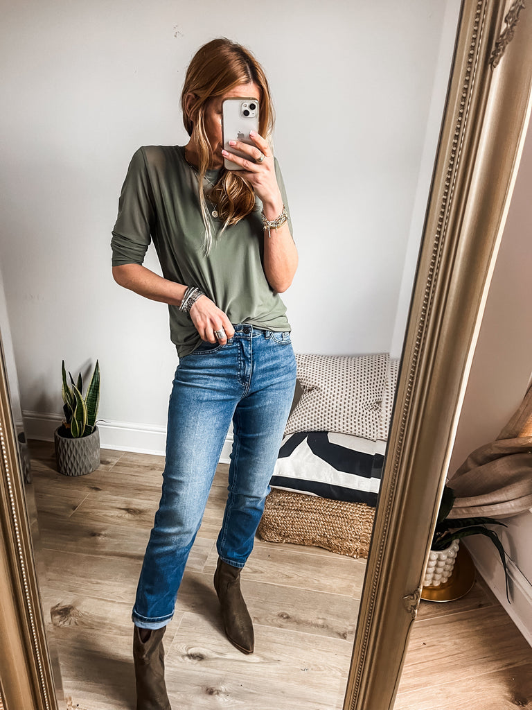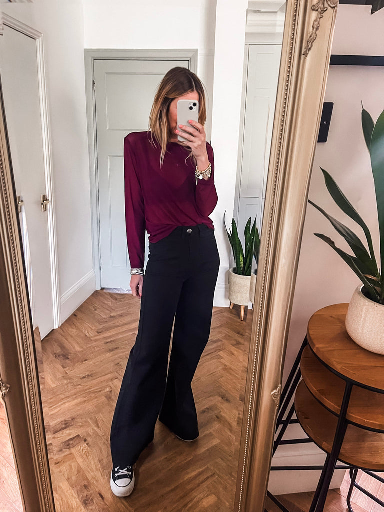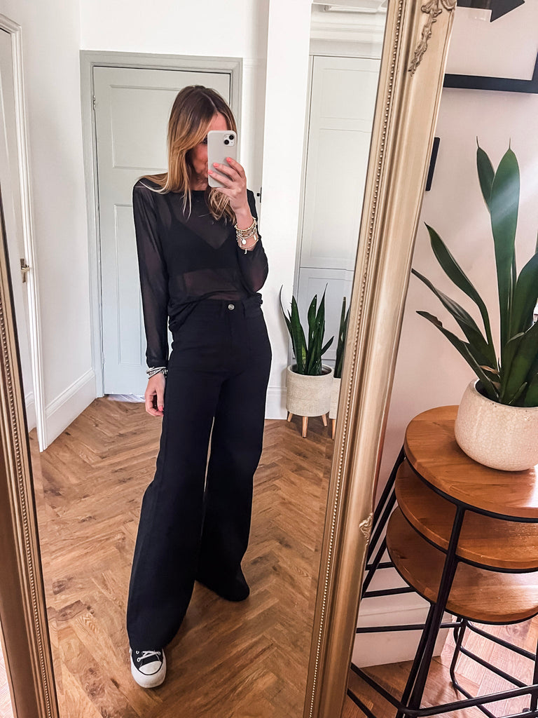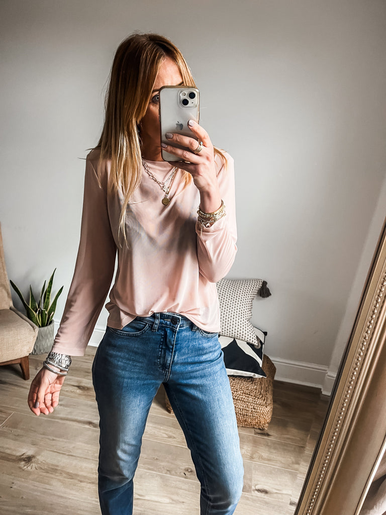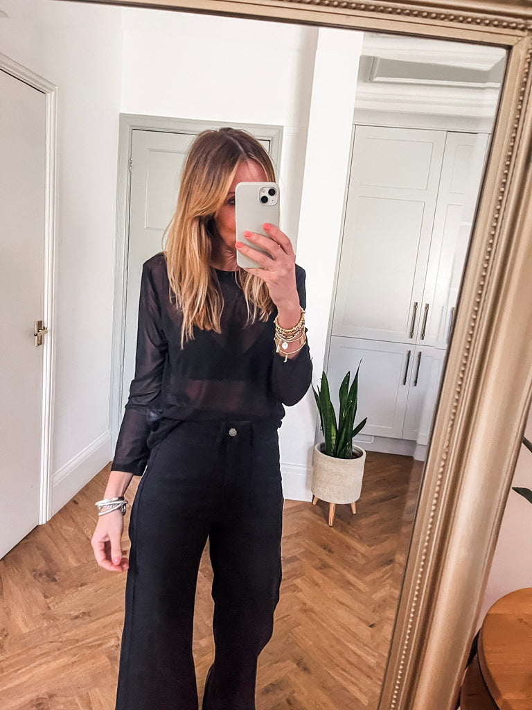 For a chic daytime look, pair our Long Sleeve Mesh Top with high waist jeans and trainers. To transition into the evening, style with a faux leather skirt and heels.