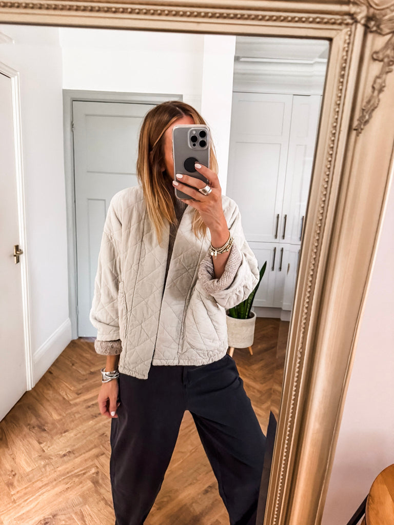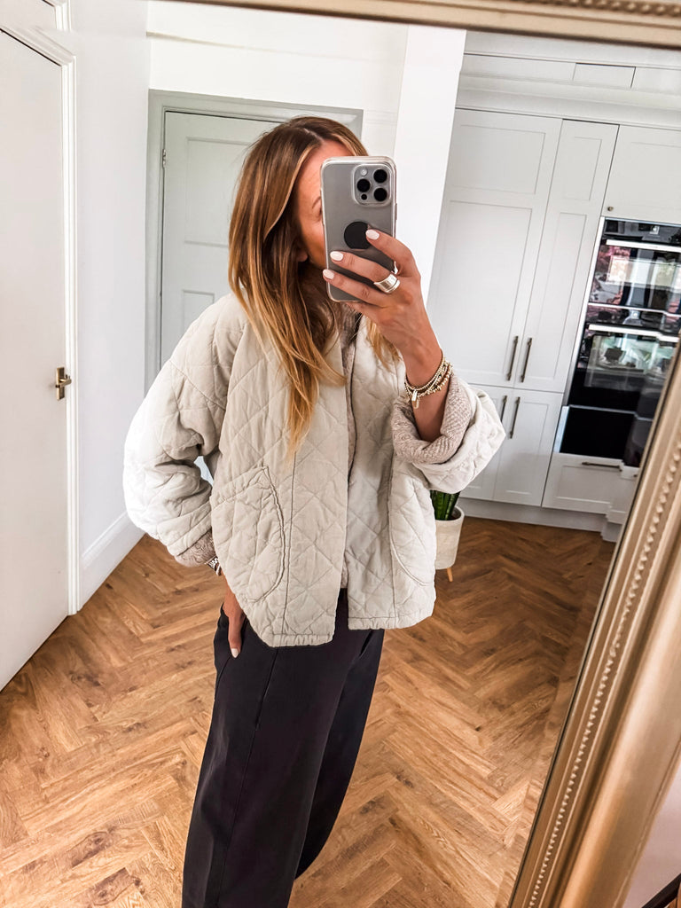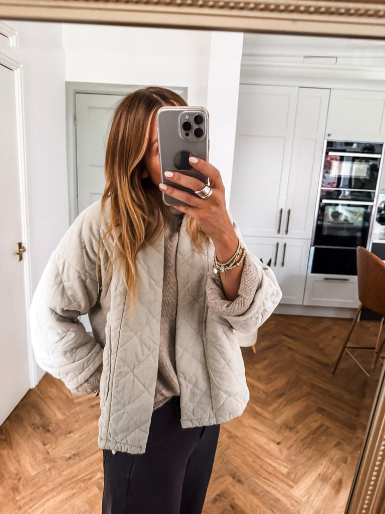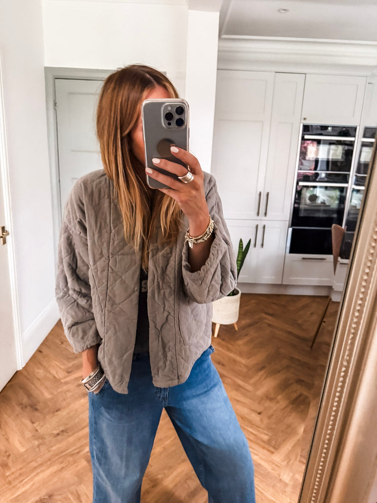 We love this jacket for its modern shape, lightweight warmth, and easy layering potential. The cropped cut adds a flattering edge to any outfit. It’s the kind of throw-on piece that instantly pulls a look together.