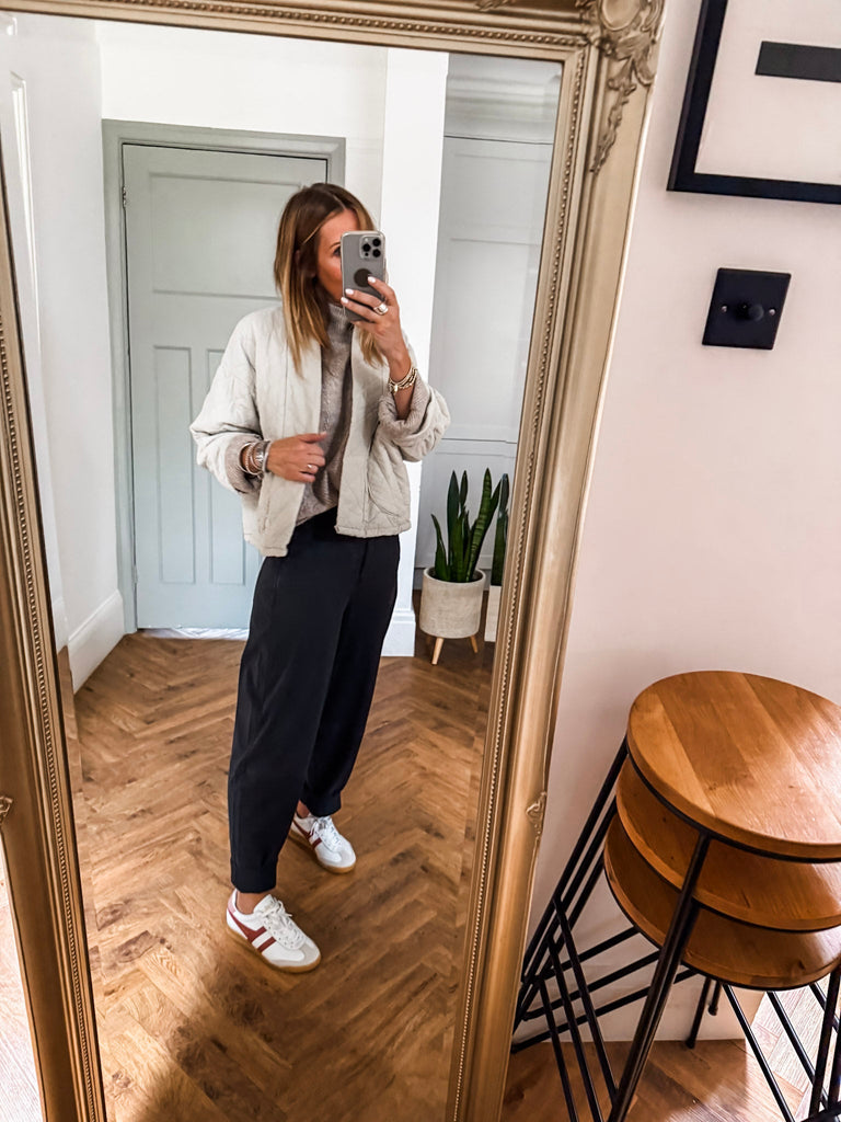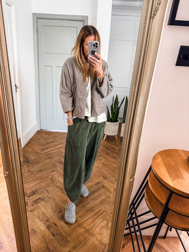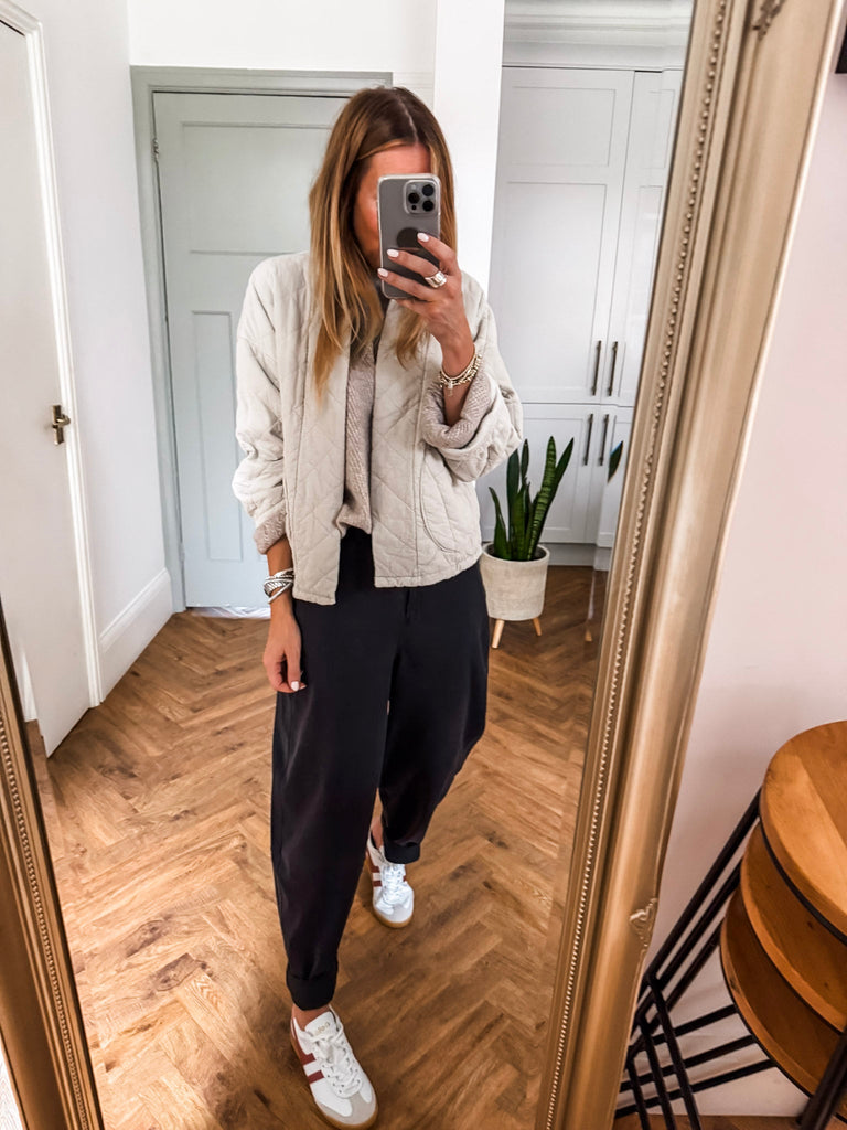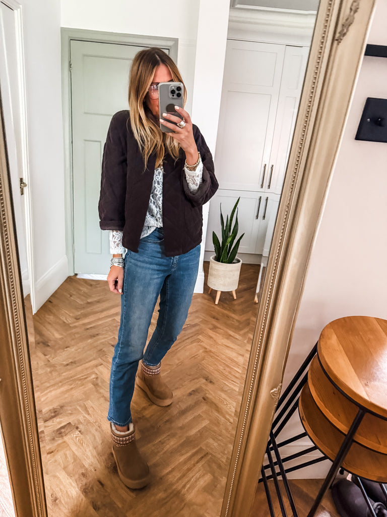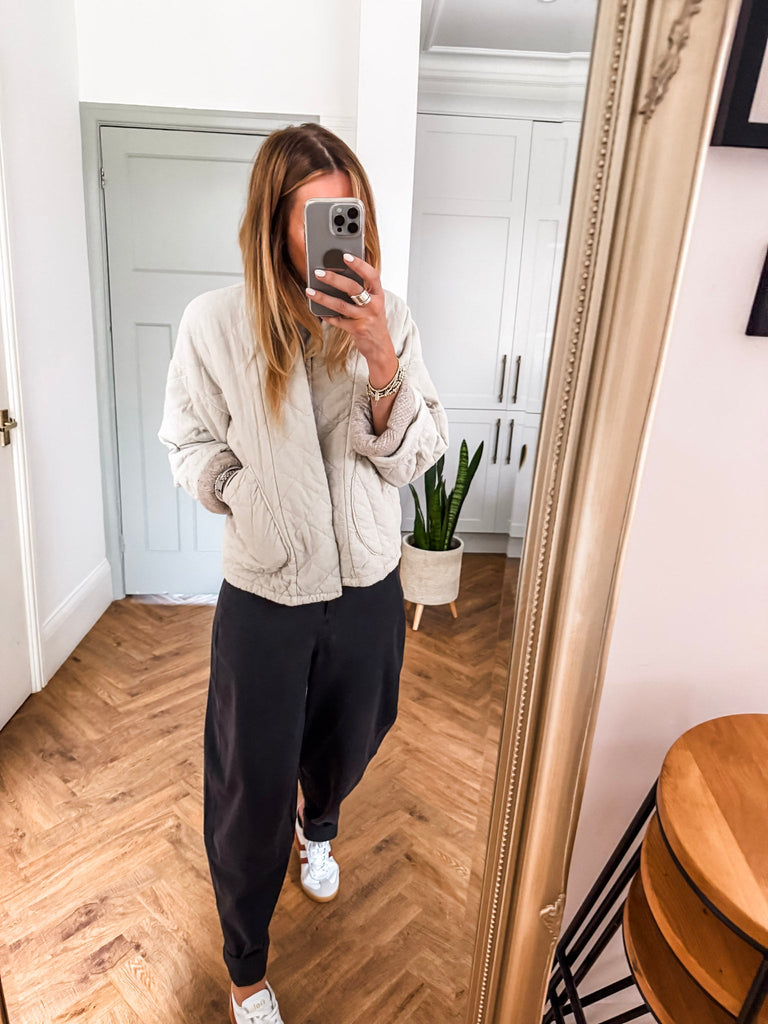 We love this jacket for its modern shape, lightweight warmth, and easy layering potential. The cropped cut adds a flattering edge to any outfit. It’s the kind of throw-on piece that instantly pulls a look together.
