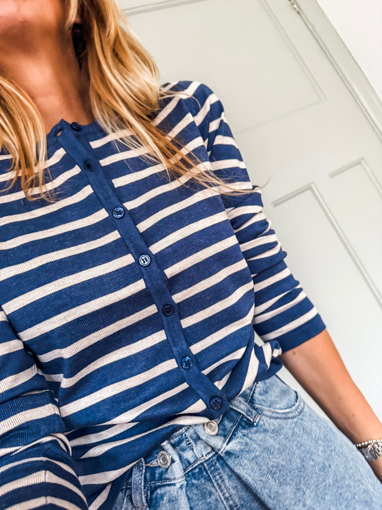 We love the Mila Striped Cardigan for its timeless design and effortless versatility. The classic stripes and button details add a sophisticated touch, while the comfortable fit makes it perfect for layering. Chic and easy to style, it’s a go-to piece for any season.