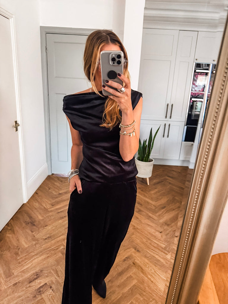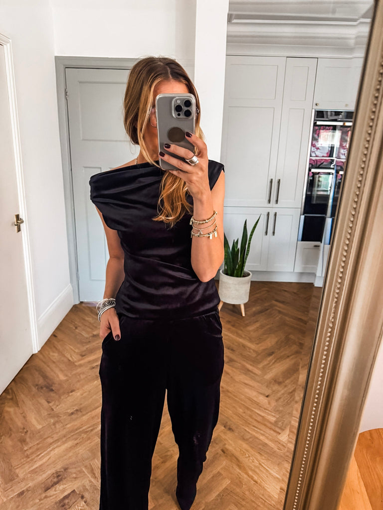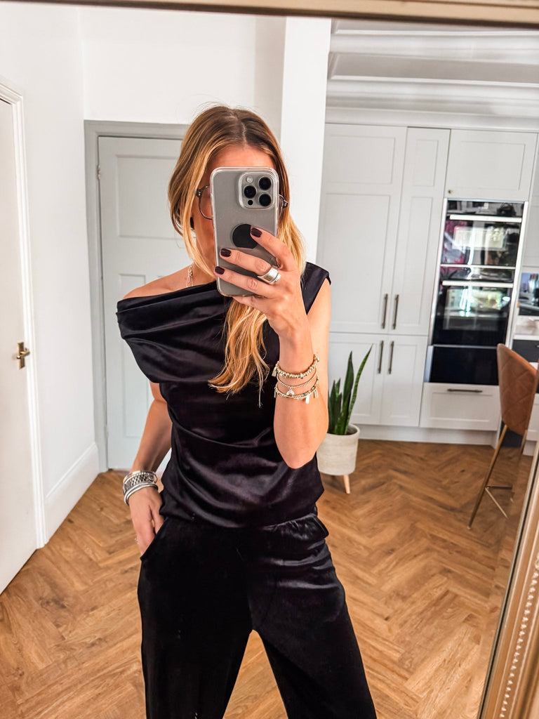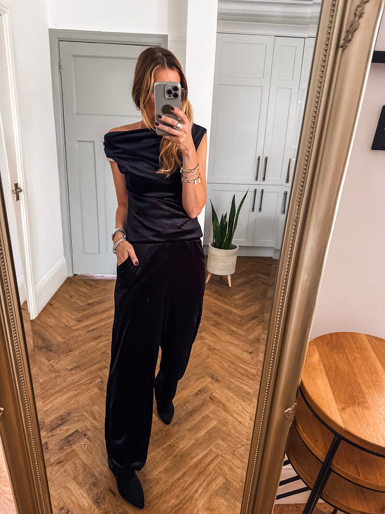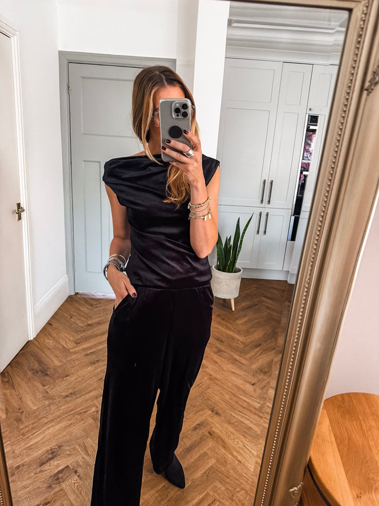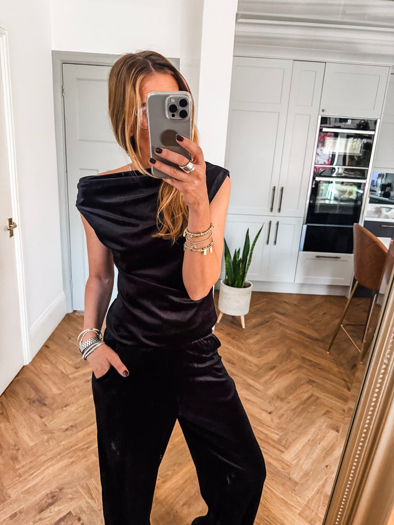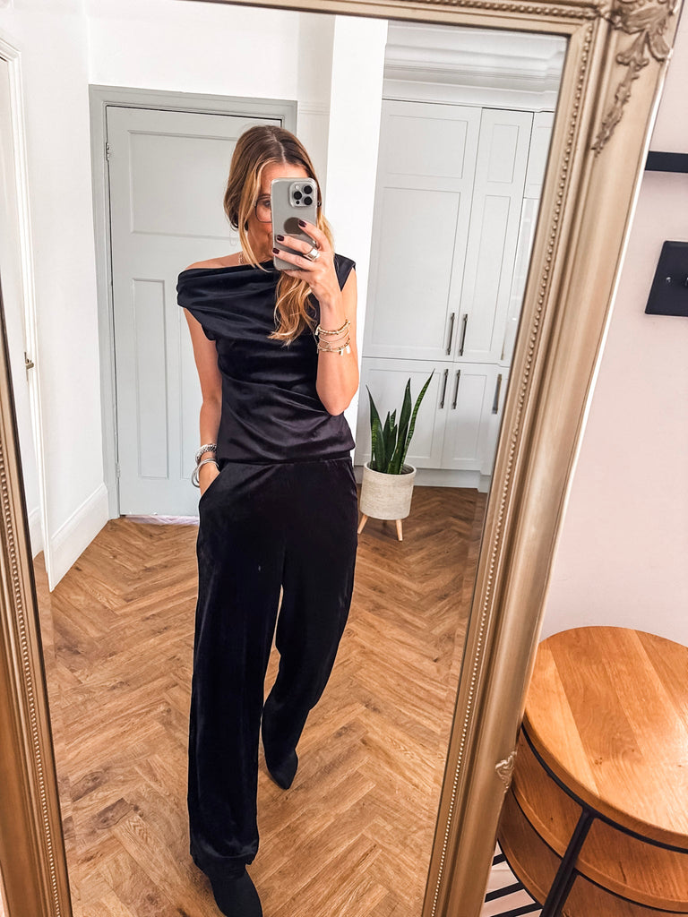 Dress up your look with this luxurious velvet top from Soaked in Luxury. Featuring a graceful cowl neck and sleek sleeveless cut, it blends timeless elegance with modern ease. Perfect for layering or making a statement on its own. Style with our velvet trousers & heels.