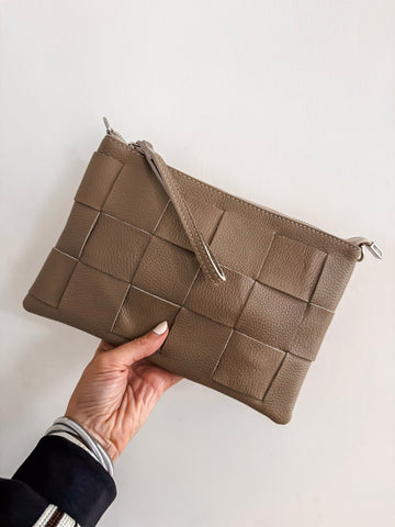 These are fabulous the style goes with everything! Effortlessly stylish, this woven clutch features sleek leather accents and a secure zip closure for everyday ease. A back zip pocket and optional strap add function and versatility. Compact yet practical, it’s the perfect finishing touch for a cool, laid-back look.