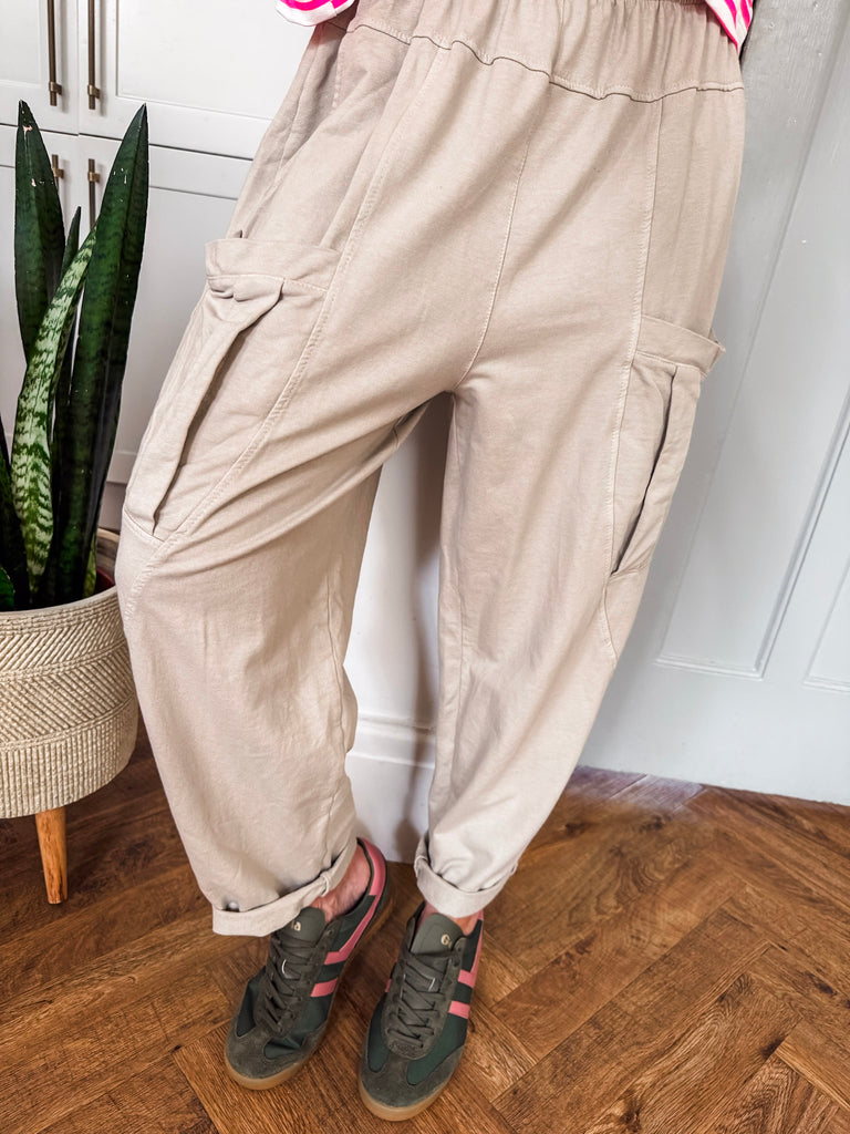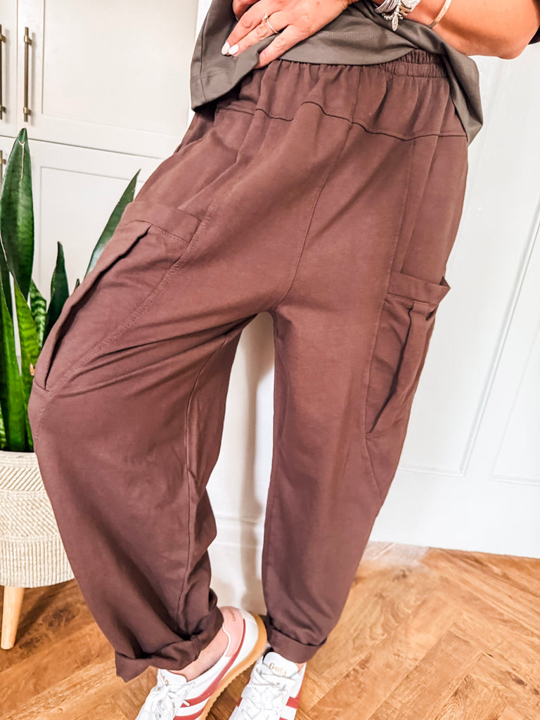 Discover a whole new level of style and comfort with Pocket front turn up Trousers! Crafted from super soft cotton, these trousers offer a relaxed fit and feature pockets to the front. The balloon shape, elasticated waist and cropped length mean that these trousers are not only stylish, but also offer superior movement and a flattering silhouette.