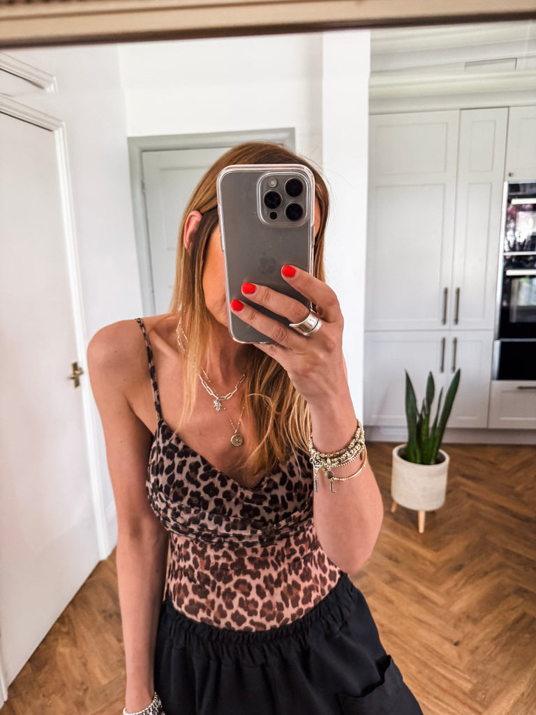 We love this body for its fierce leopard print, flattering fit, and confidence-boosting design. The mesh and strap details add just the right amount of edge, while built-in cups offer support without compromising style. It’s the perfect piece to make a bold, empowered statement.