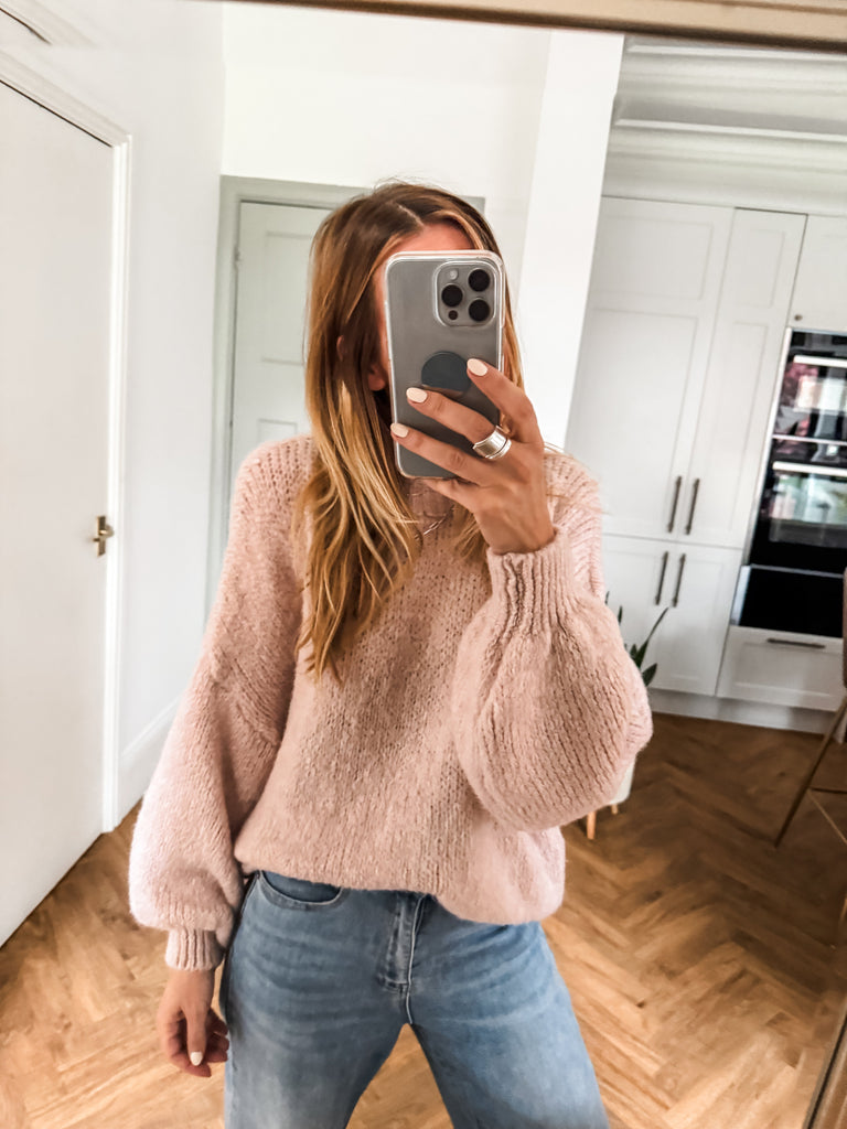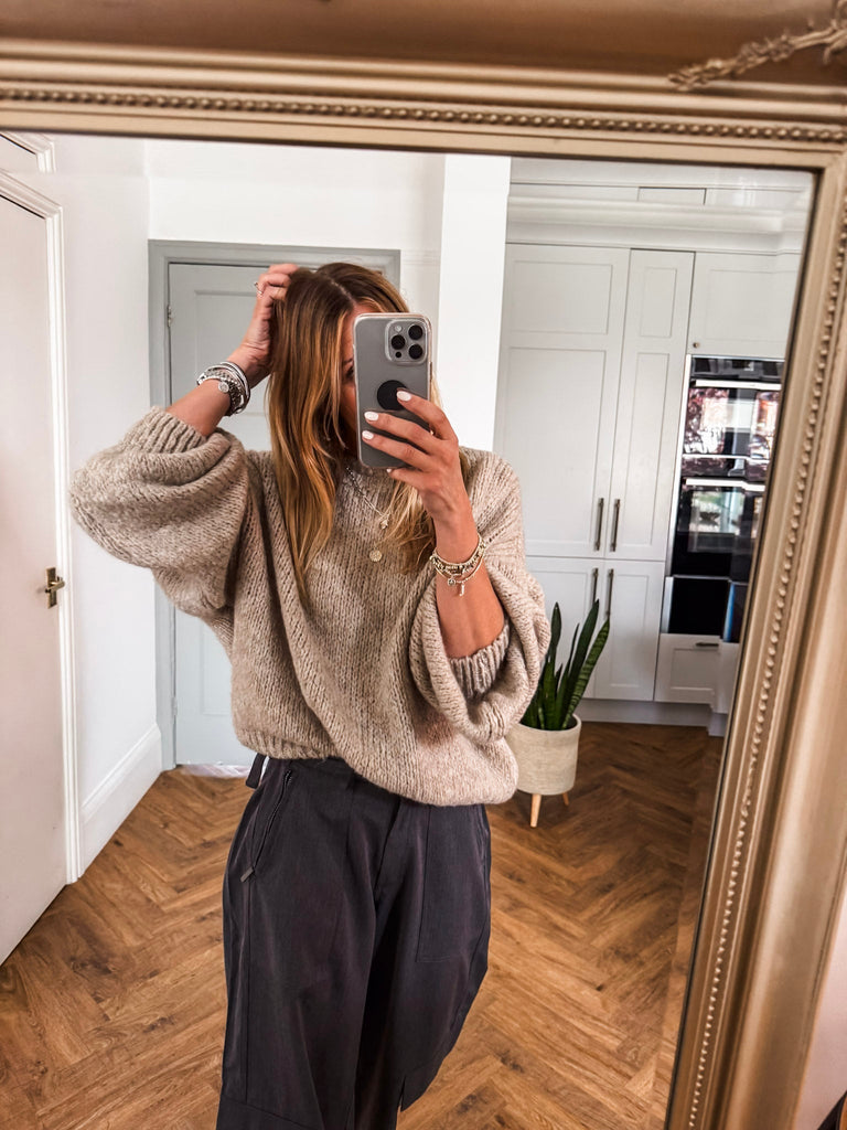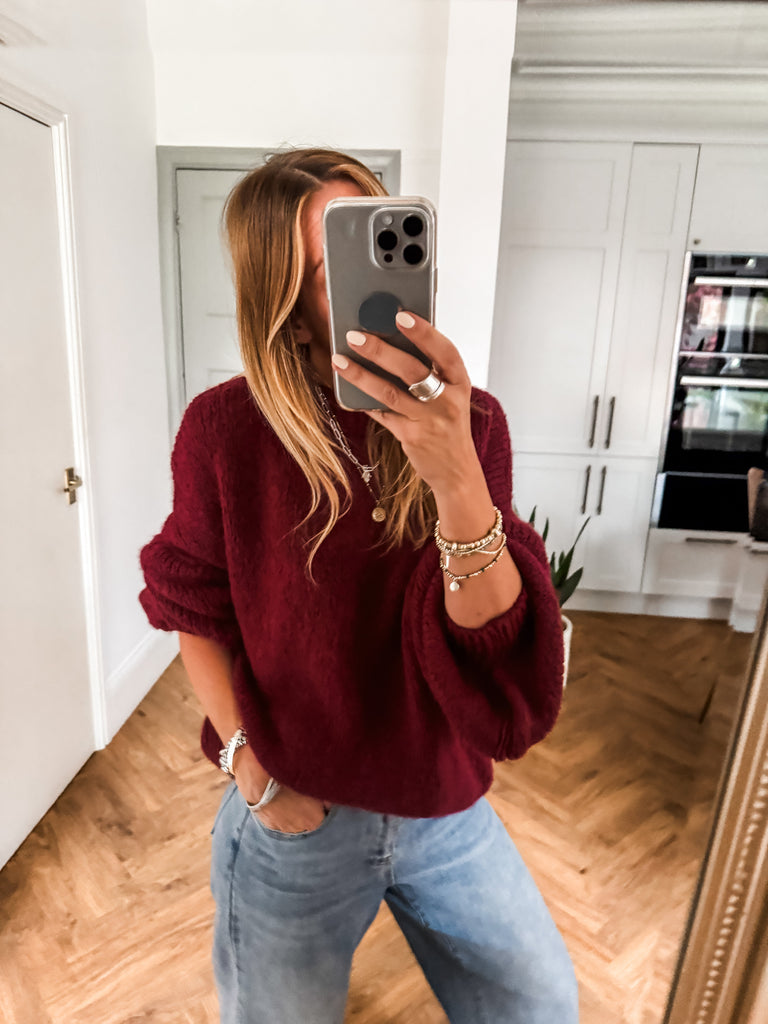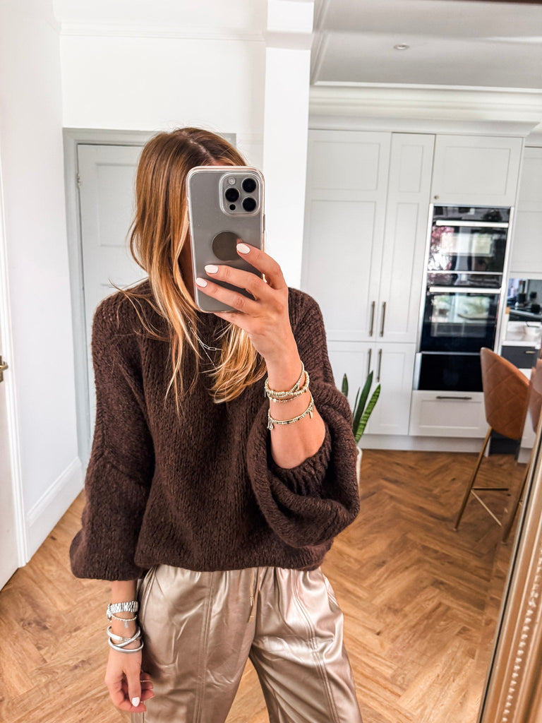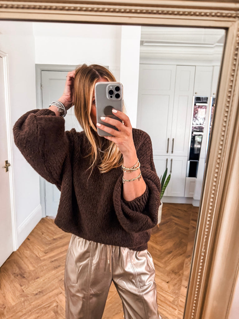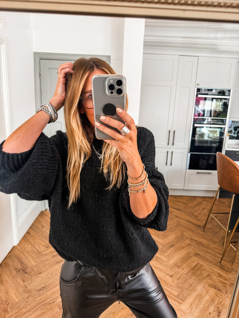 Balloon Sleeve Textured Knit Jumper