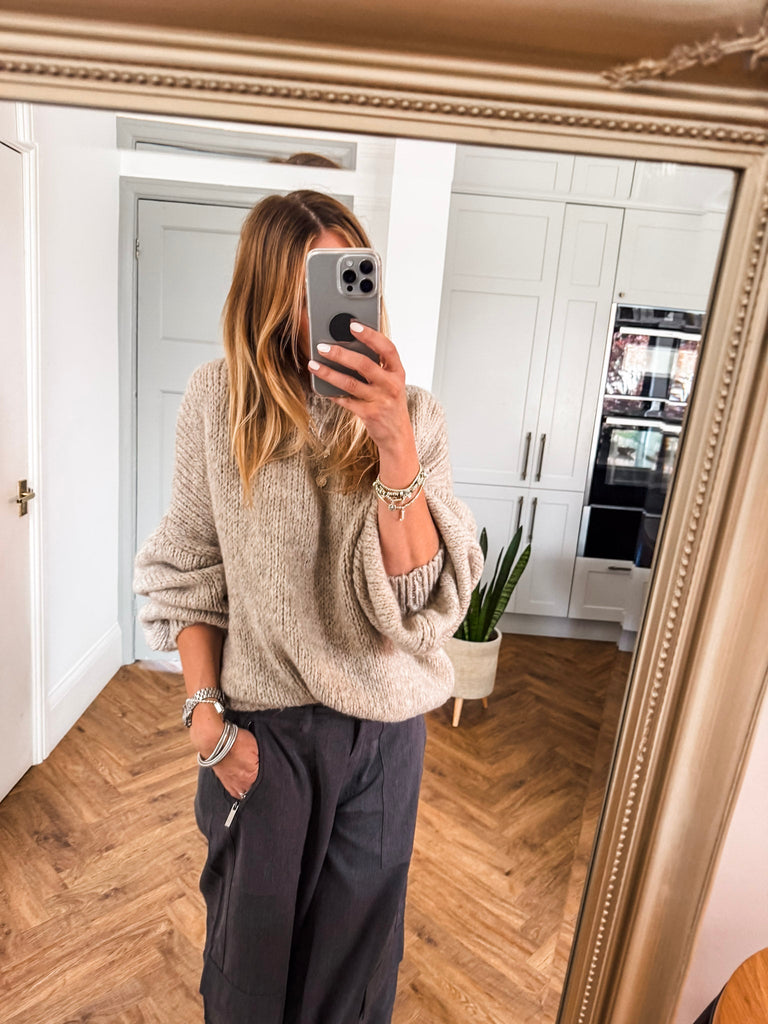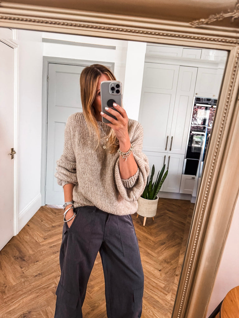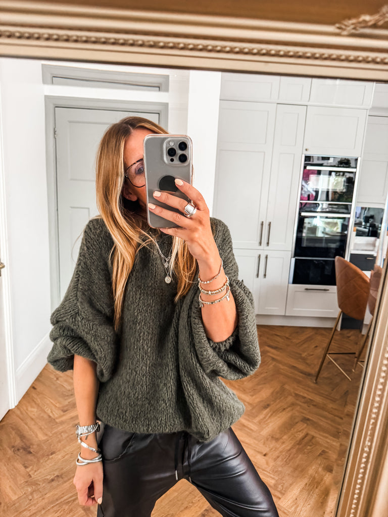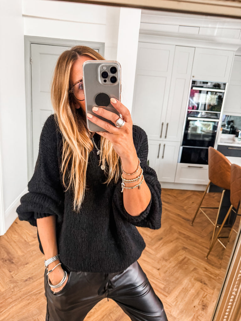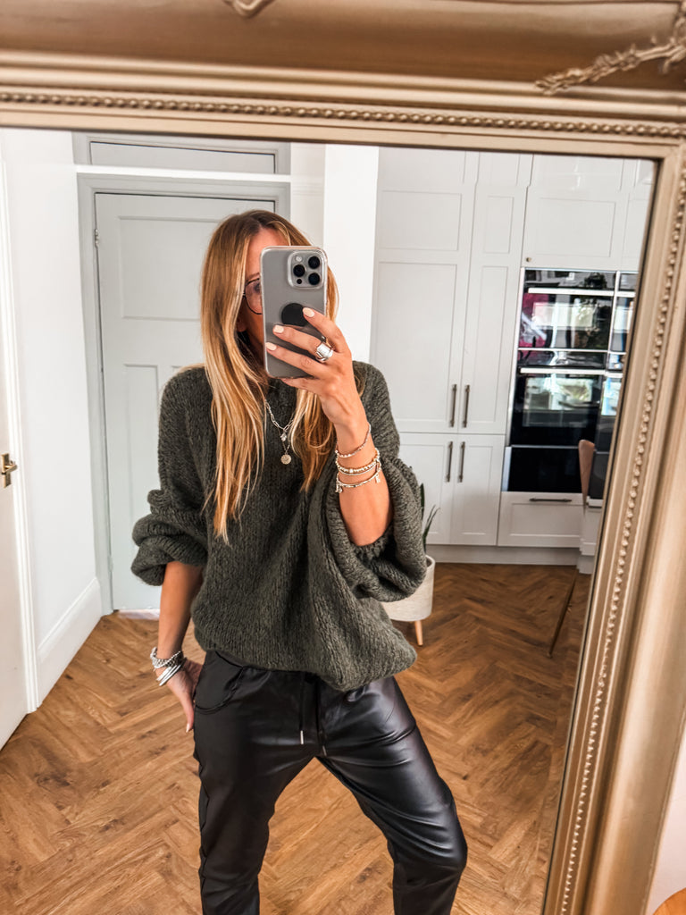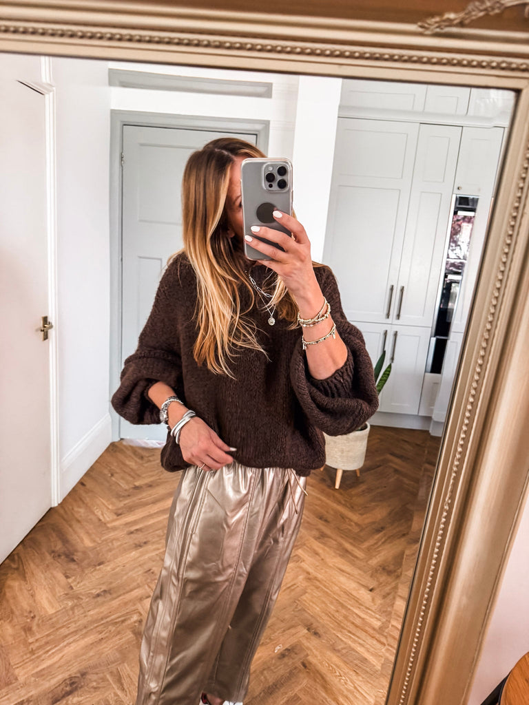 Balloon Sleeve Textured Knit Jumper