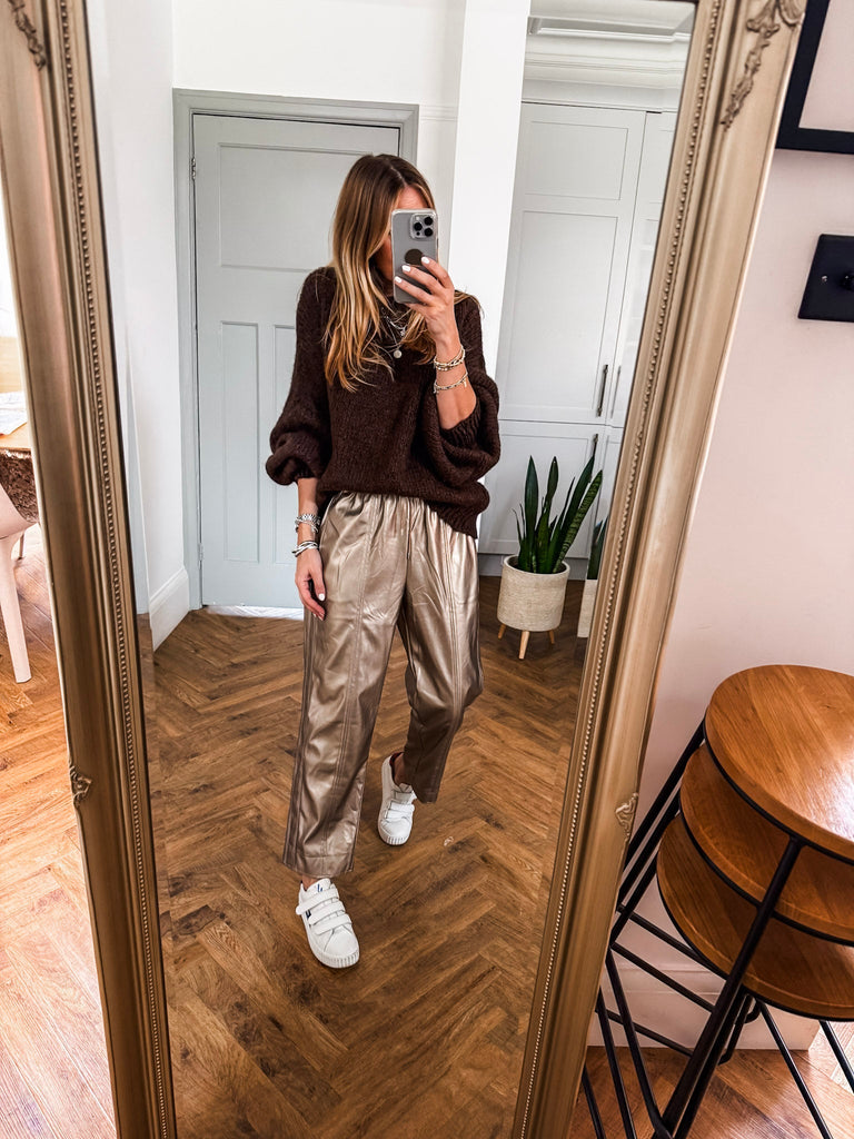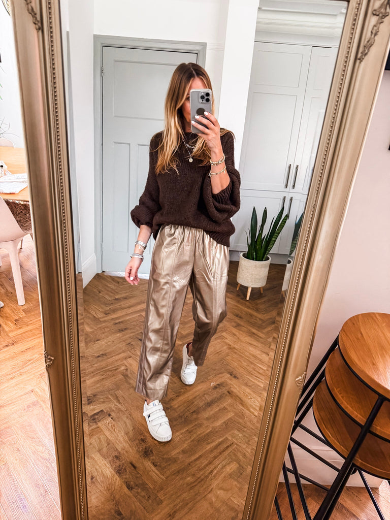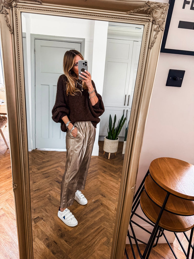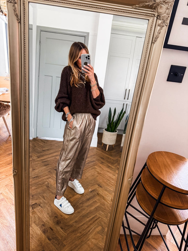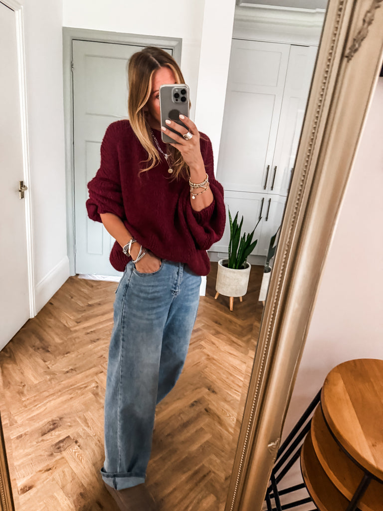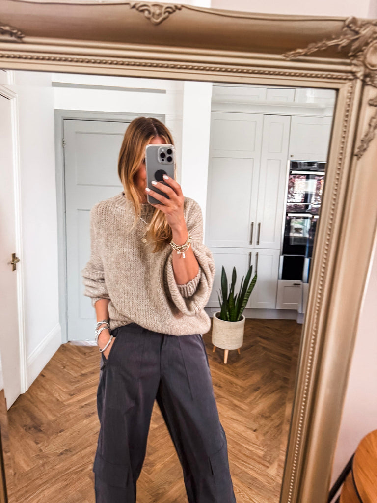 Balloon Sleeve Textured Knit Jumper
