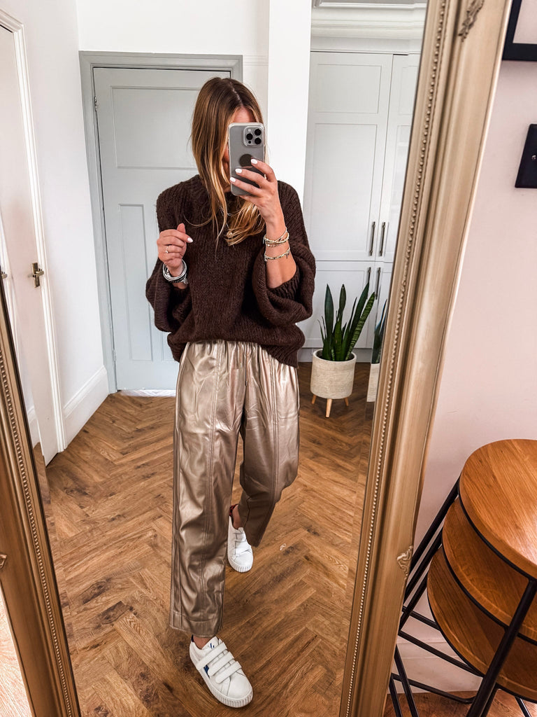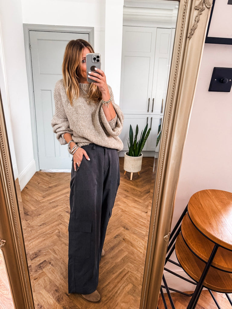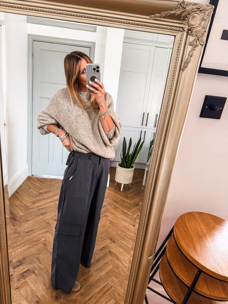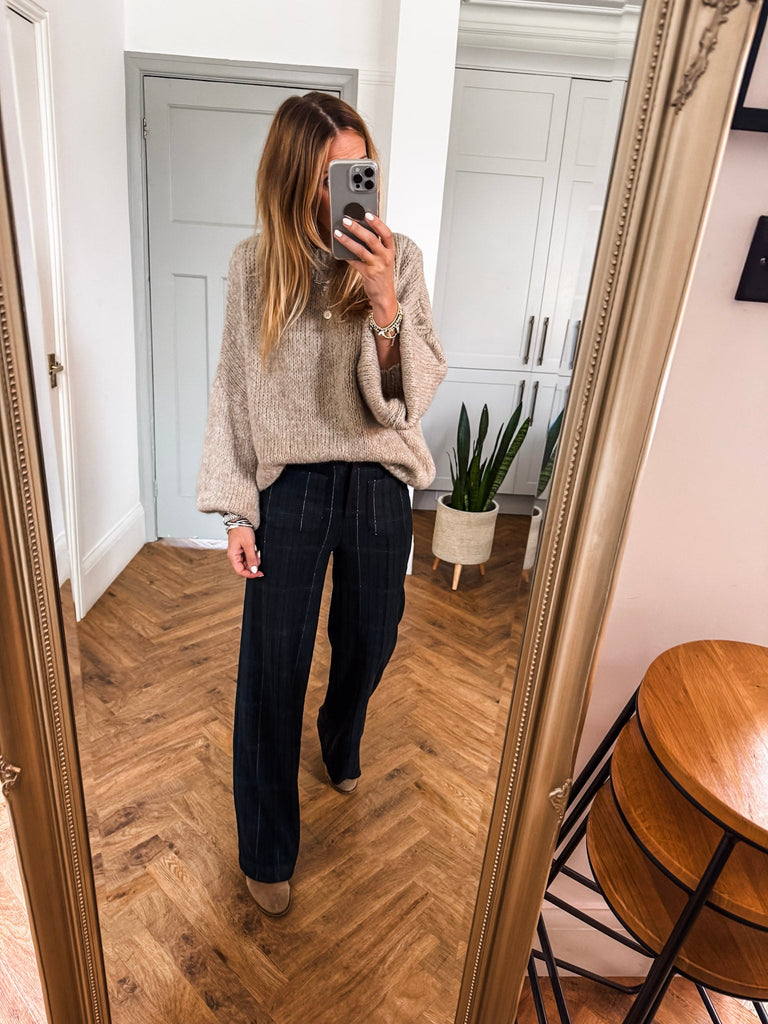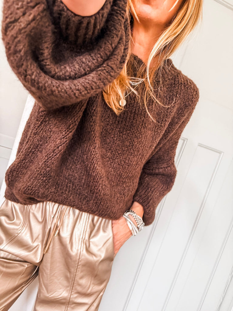 This Balloon Sleeve Textured Knit Jumper is timelessly classic, elegantly stylish, and perfect for the autumn and winter months. It features a high neck, long balloon sleeves, and a relaxed fit made of soft knit fabric – an absolute must-have for your wardrobe.