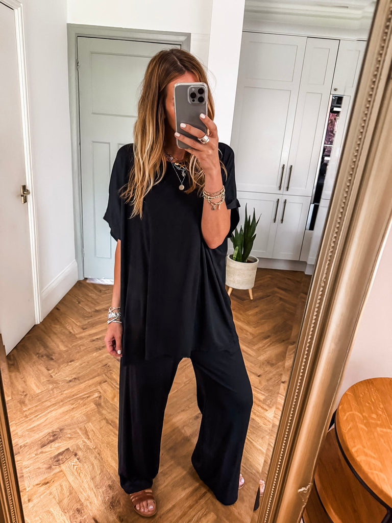 Stay effortlessly cool in this Everyday Lounge Co-Ord, featuring an oversized tee with cap sleeves and a relaxed, full-length fit. The elasticated waist adds subtle shape without compromising on comfort. With practical pockets and an easy vibe, it's your go-to for laid-back, stylish days.