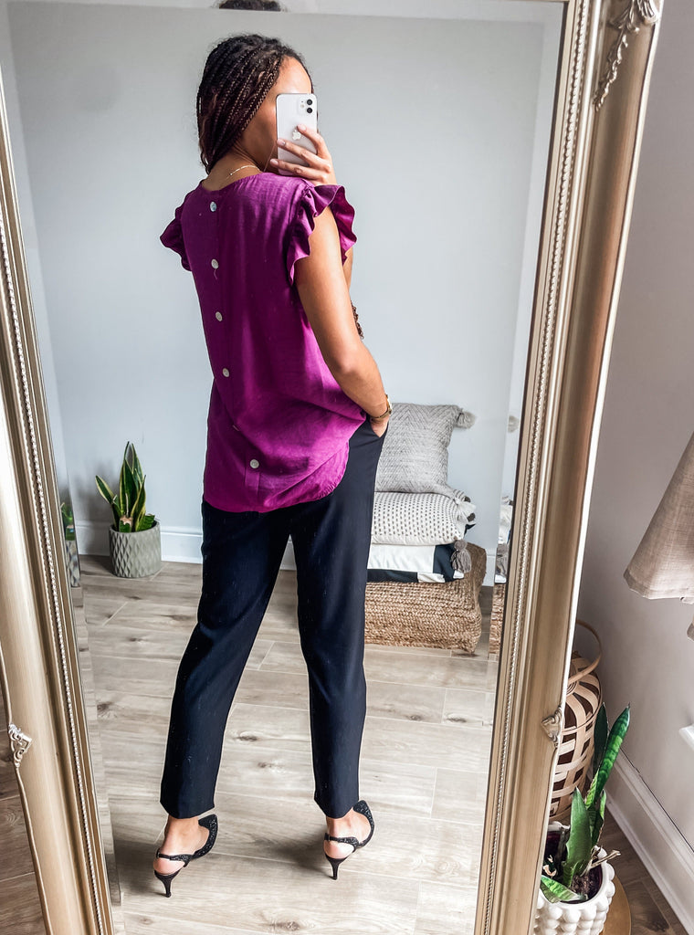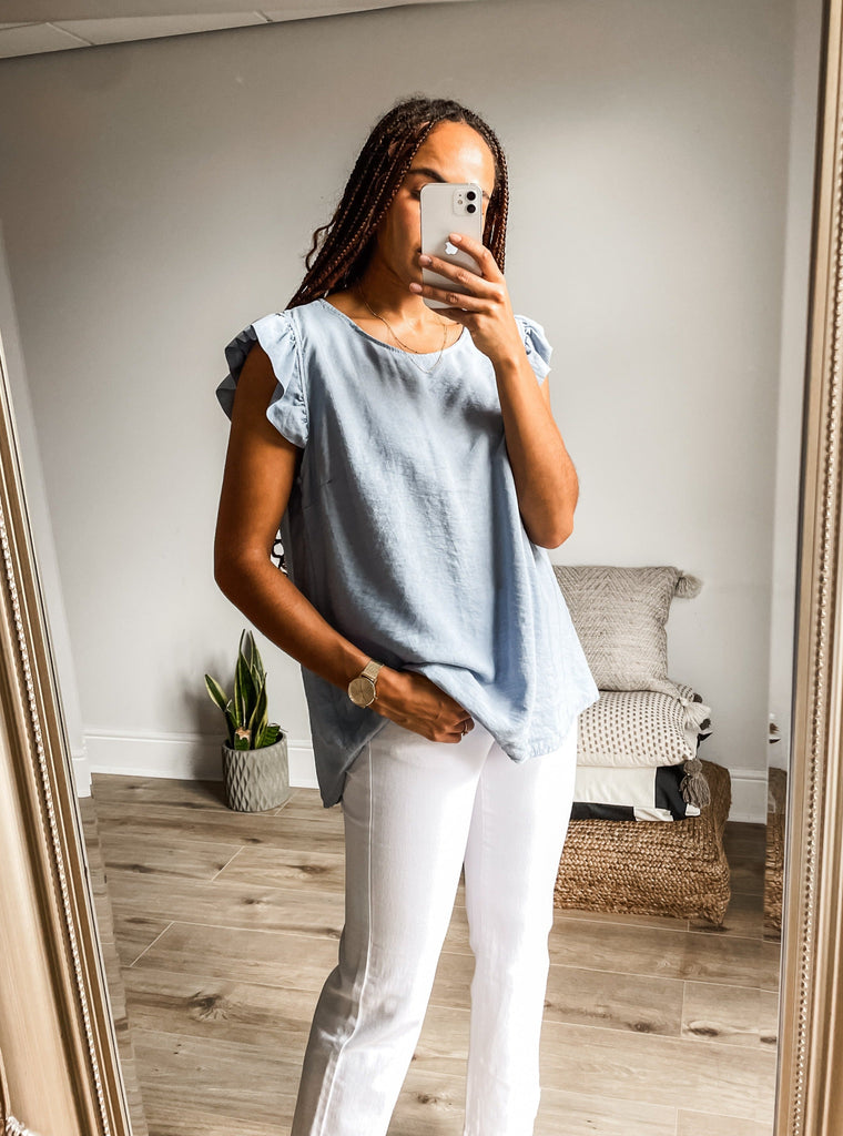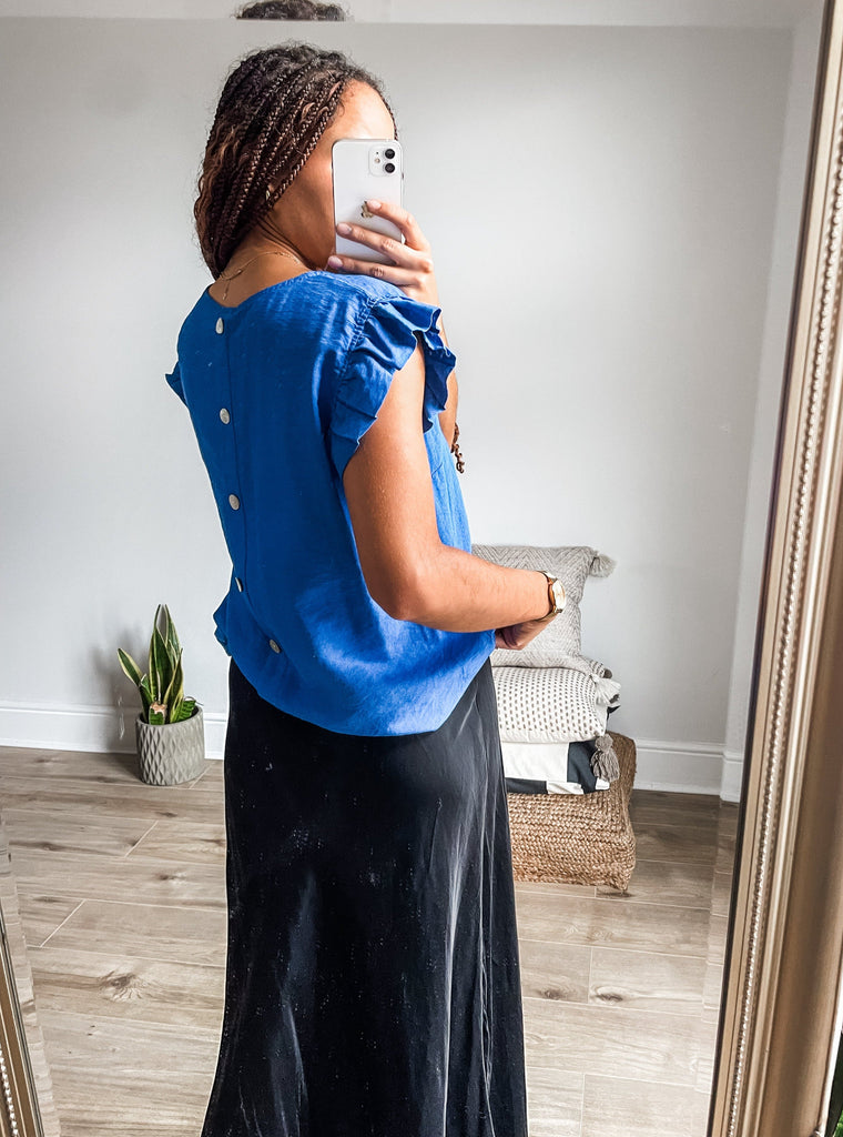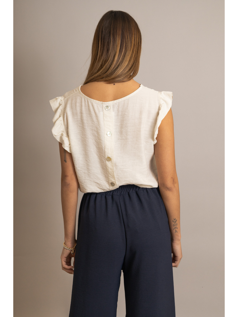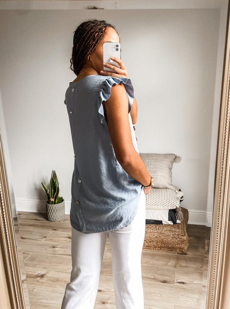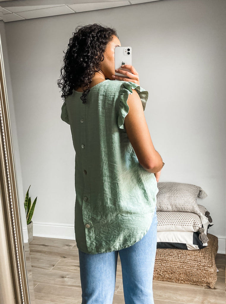 Frill Sleeve Button Back Top
