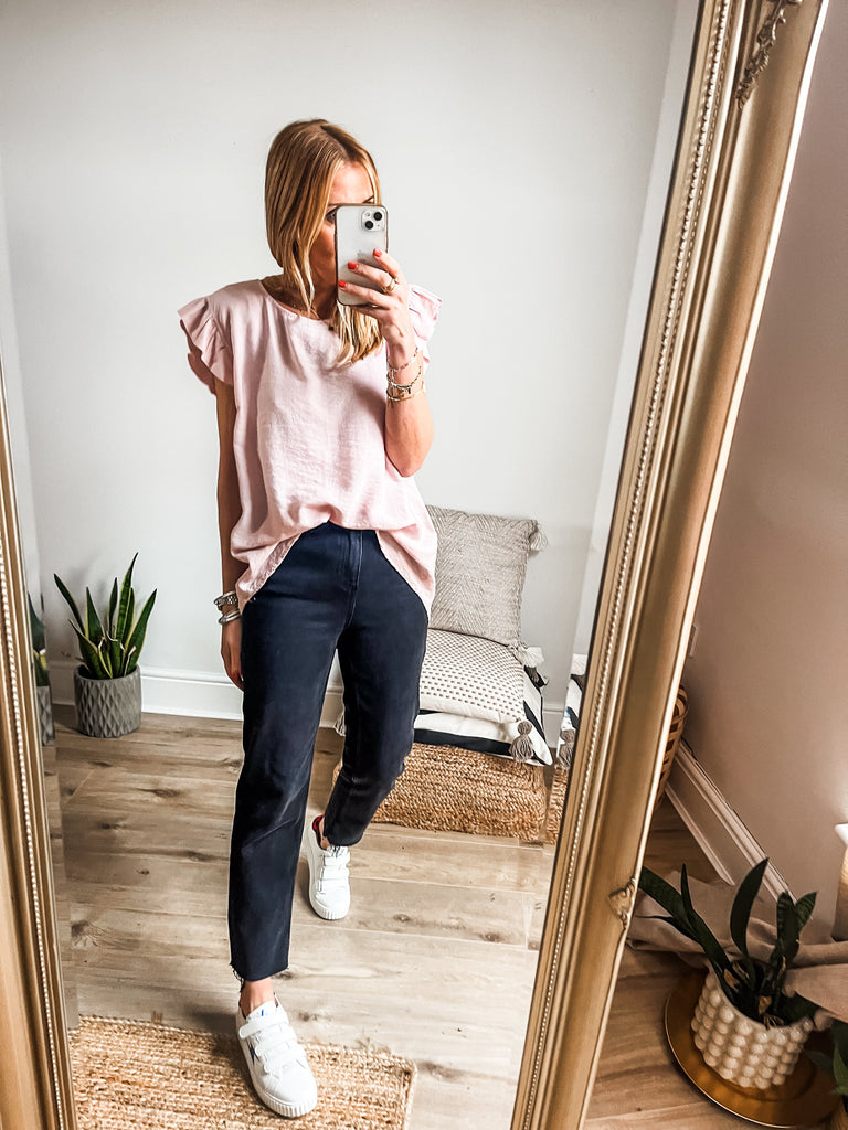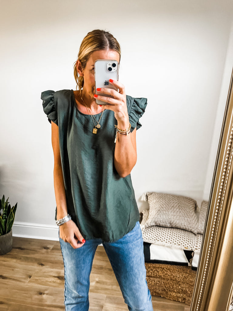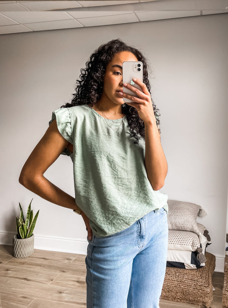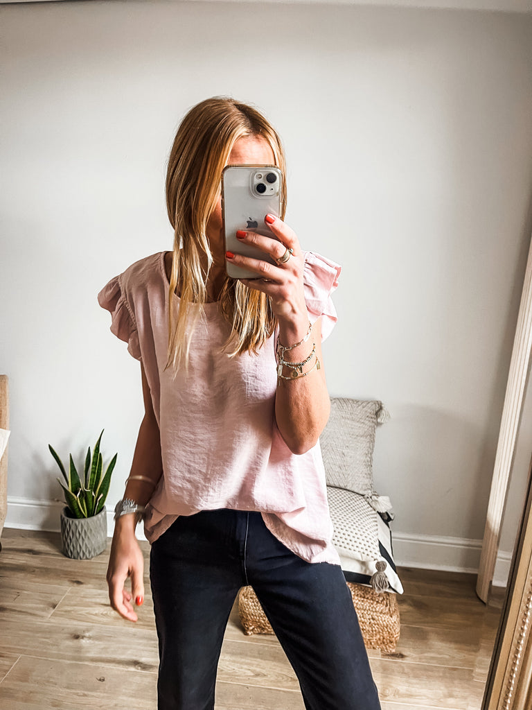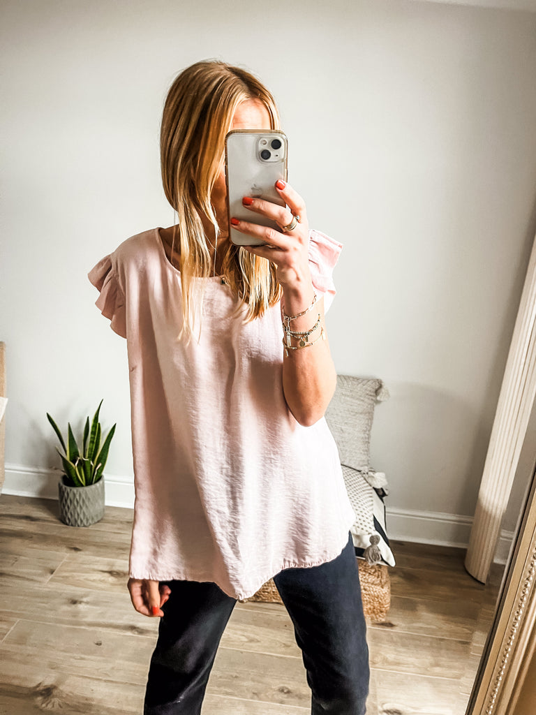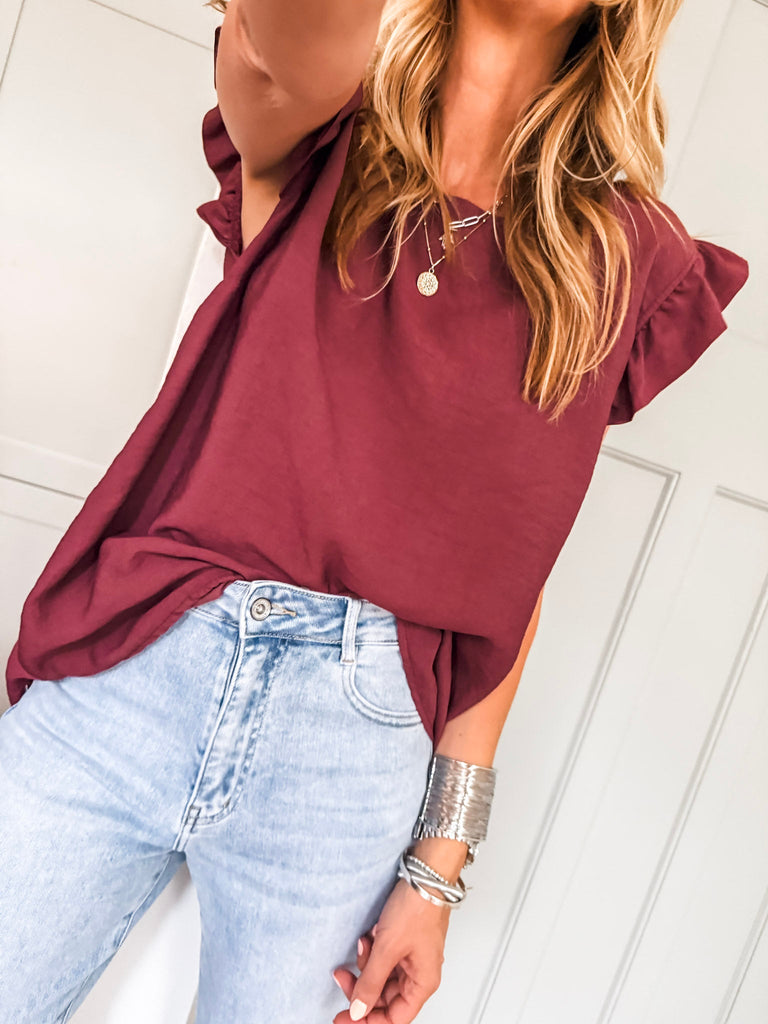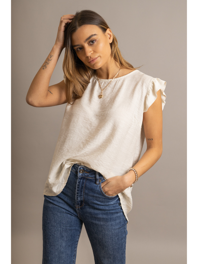 Frill Sleeve Button Back Top