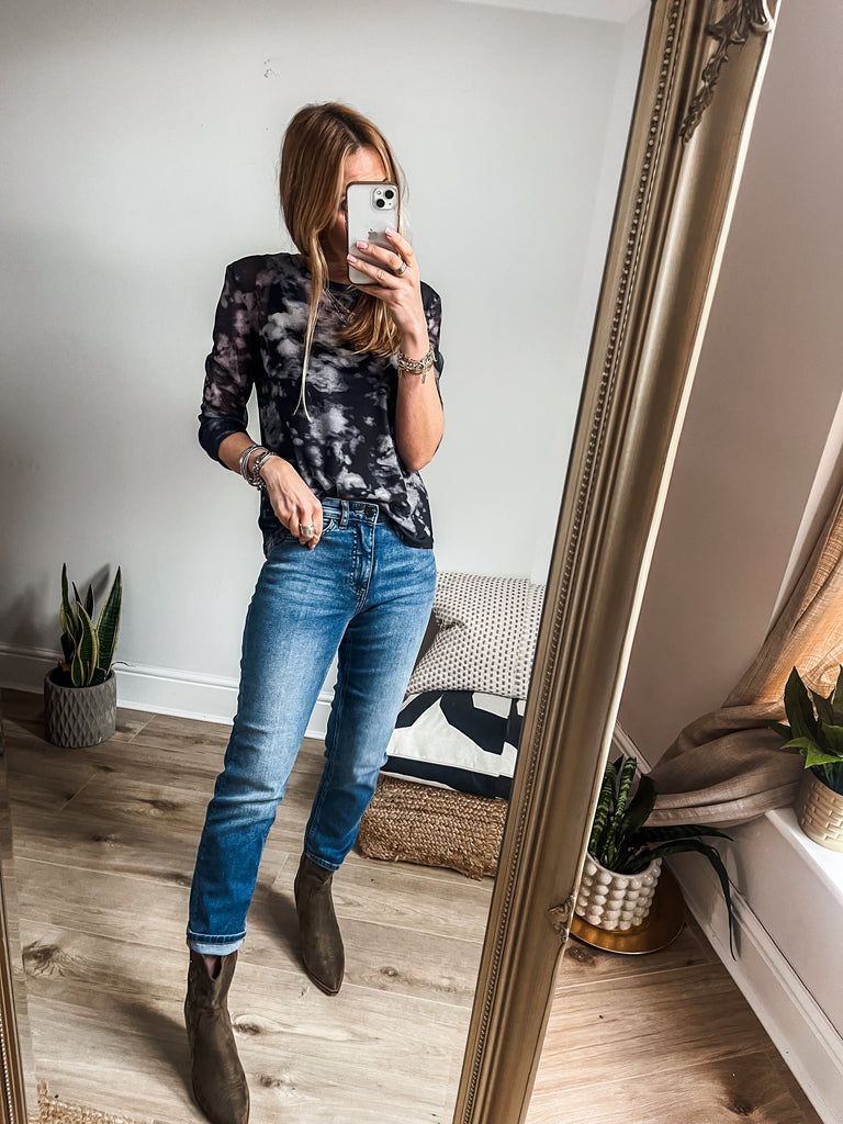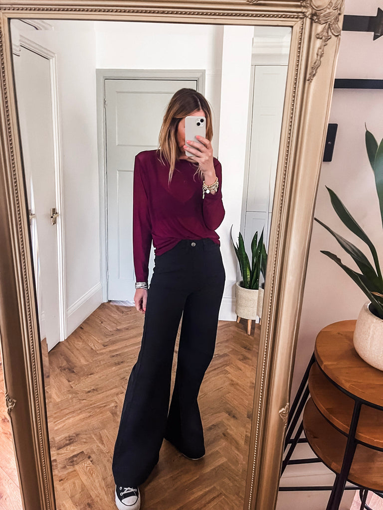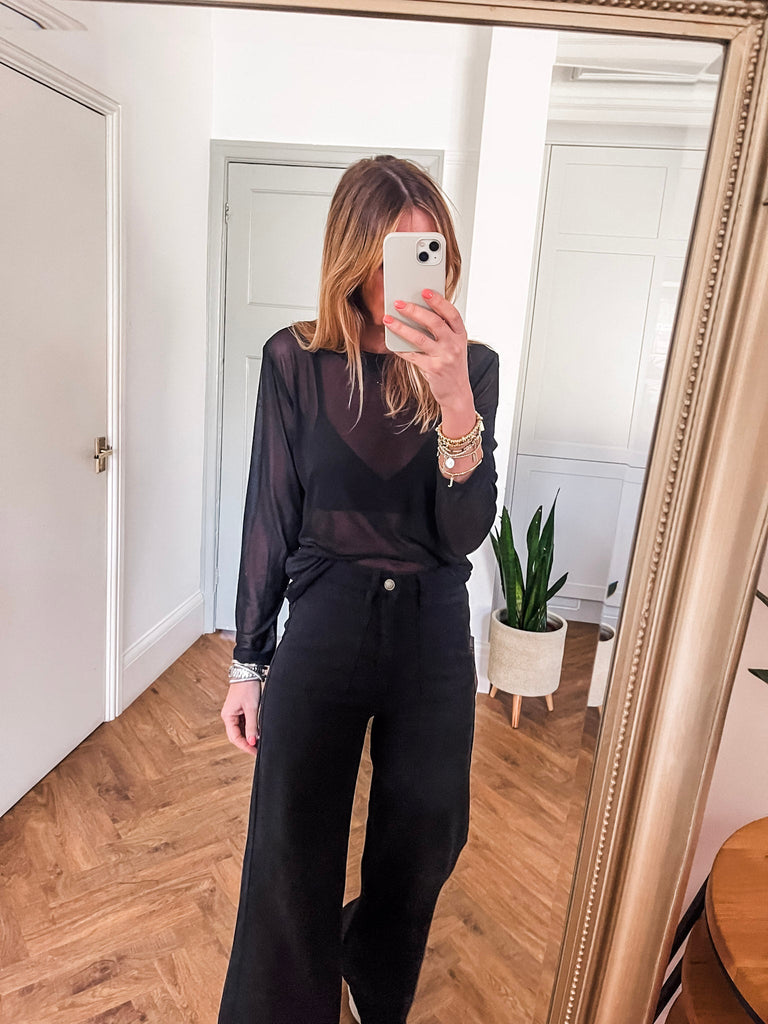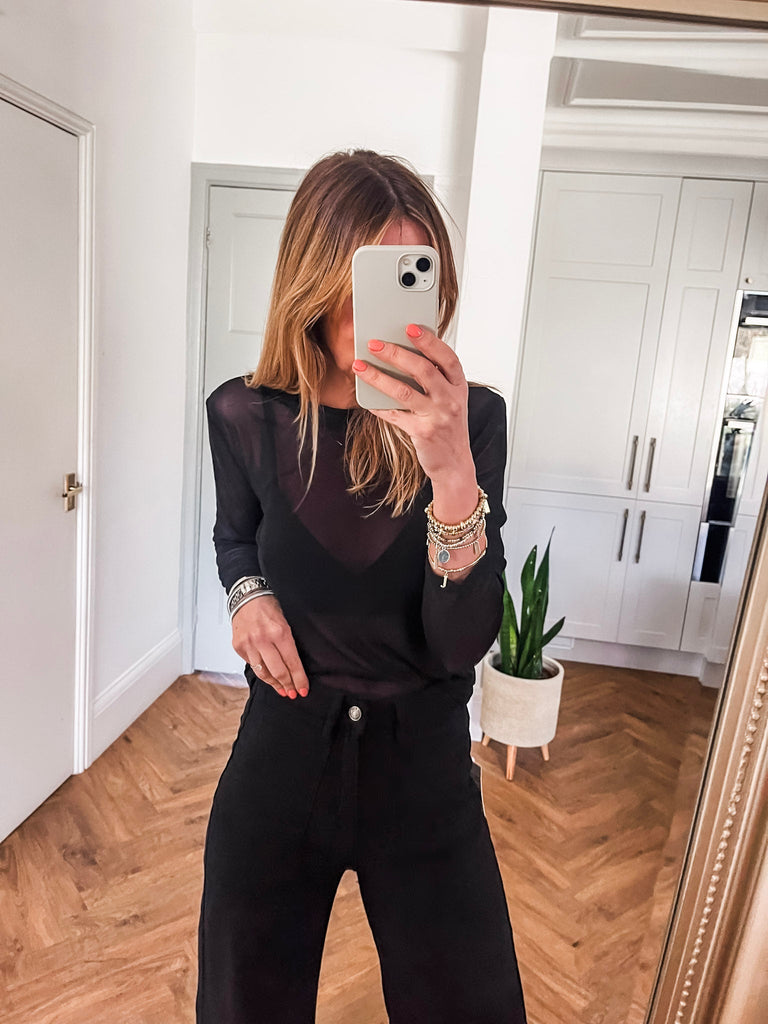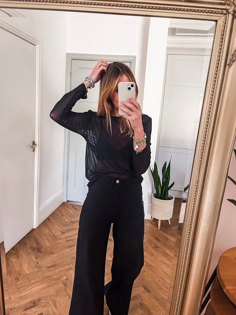 For a chic daytime look, pair our Long Sleeve Mesh Top with high waist jeans and trainers. To transition into the evening, style with a faux leather skirt and heels.