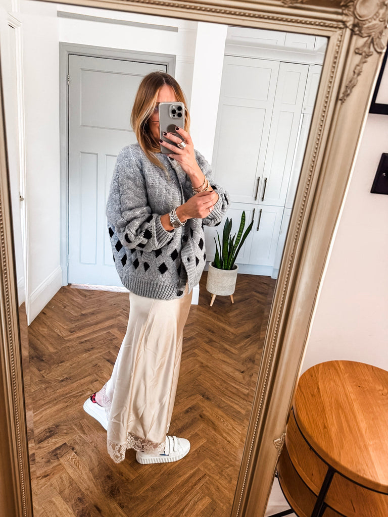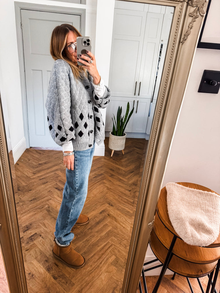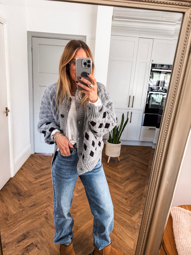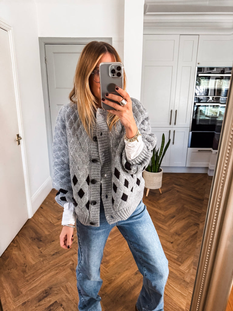 Beautiful chunky diamond knit. Stay effortlessly cozy with the ICHI Cortana Cardigan, crafted in a chunky knit for laid-back style and warmth. Featuring long sleeves, functional pockets, and a versatile button-up front, it’s made for easy layering. The perfect throw-on piece for cool, casual days.