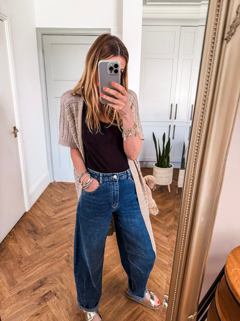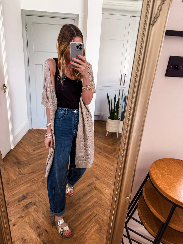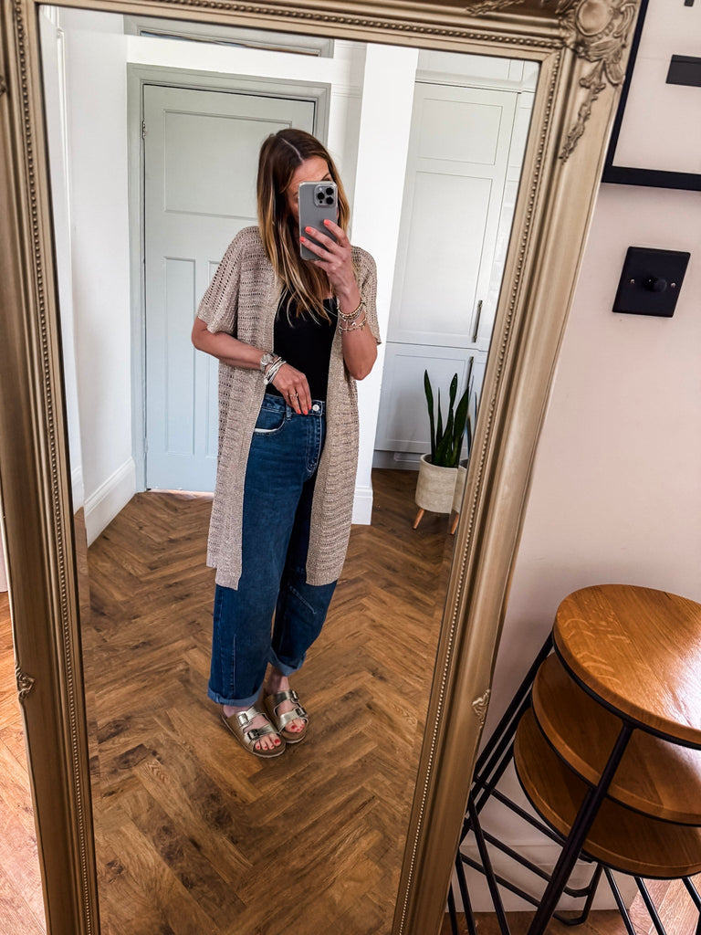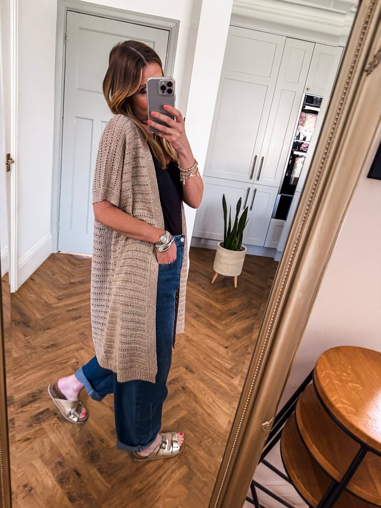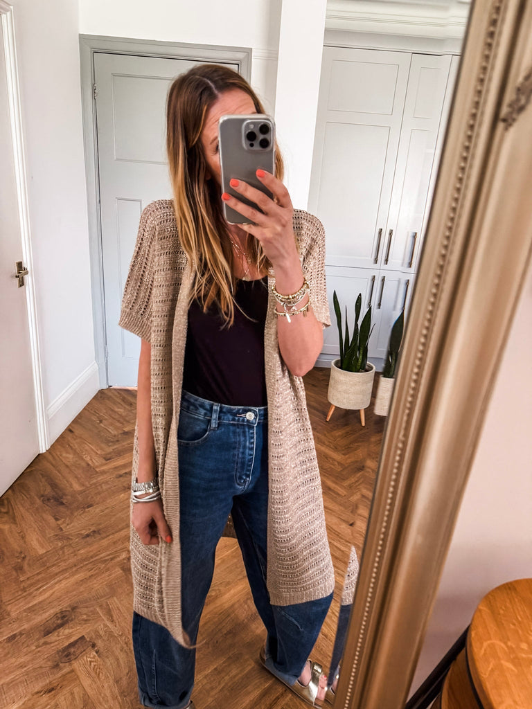 This is gorgeous over your bikini or vest & jeans! Add a touch of effortless glam with our Shimmer Long Cardigan. Designed with an open front and cropped sleeves, it layers beautifully over any look. The sleek length and subtle shimmer bring modern elegance to your everyday style.