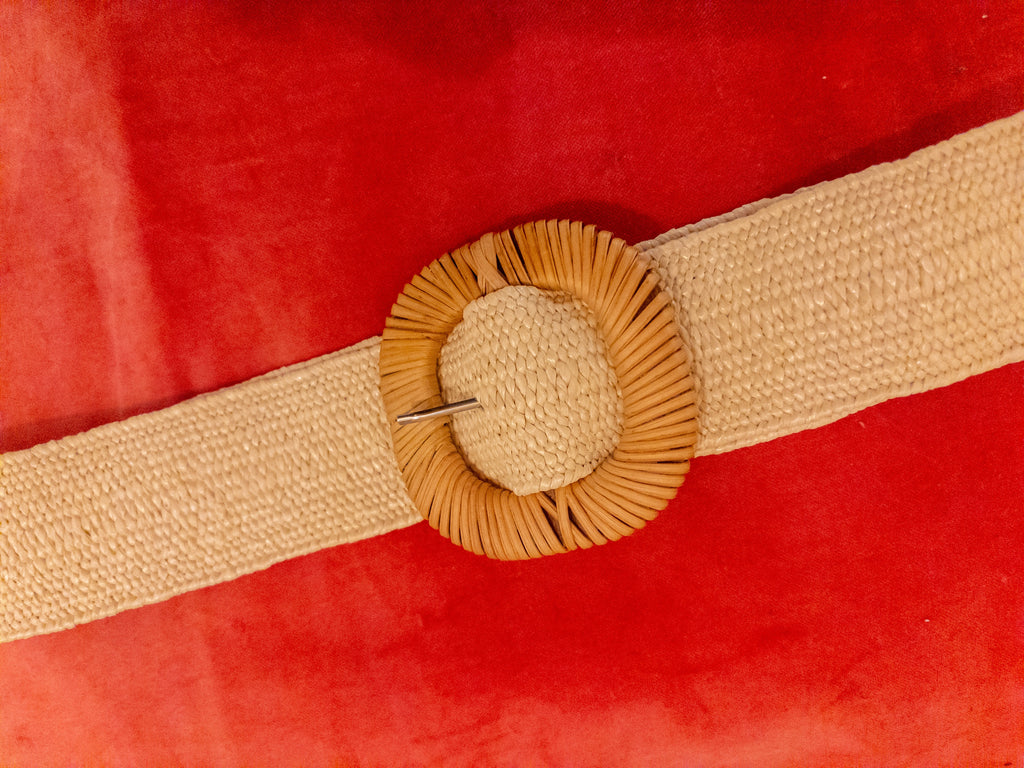 Style your look with the Woven Round Wood Buckle Belt—where texture meets natural charm. The detailed weave and wooden buckle add effortless style with a relaxed, earthy edge. A versatile finishing touch for any summer outfit.