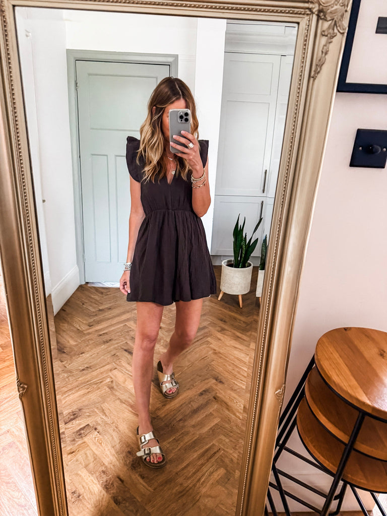 The Waffle Playsuit offers effortless style on hot summer days. With a V neck neckline, elasticated waist and short Frill sleeves, you'll look cool and fashionable wherever you go. Enjoy the perfect blend of comfort and style with this playsuit. Fabric is 100% Cotton