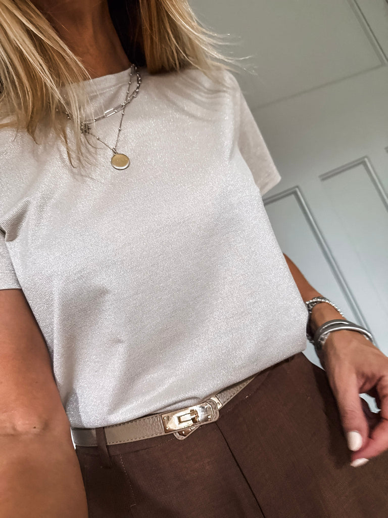 Add a touch of understated sparkle with the Saint Tropez Haga T-Shirt. Featuring fine glitter detail and a flattering fit, it brings effortless polish to your everyday style. Subtle, stylish, and made to stand out—without trying too hard.