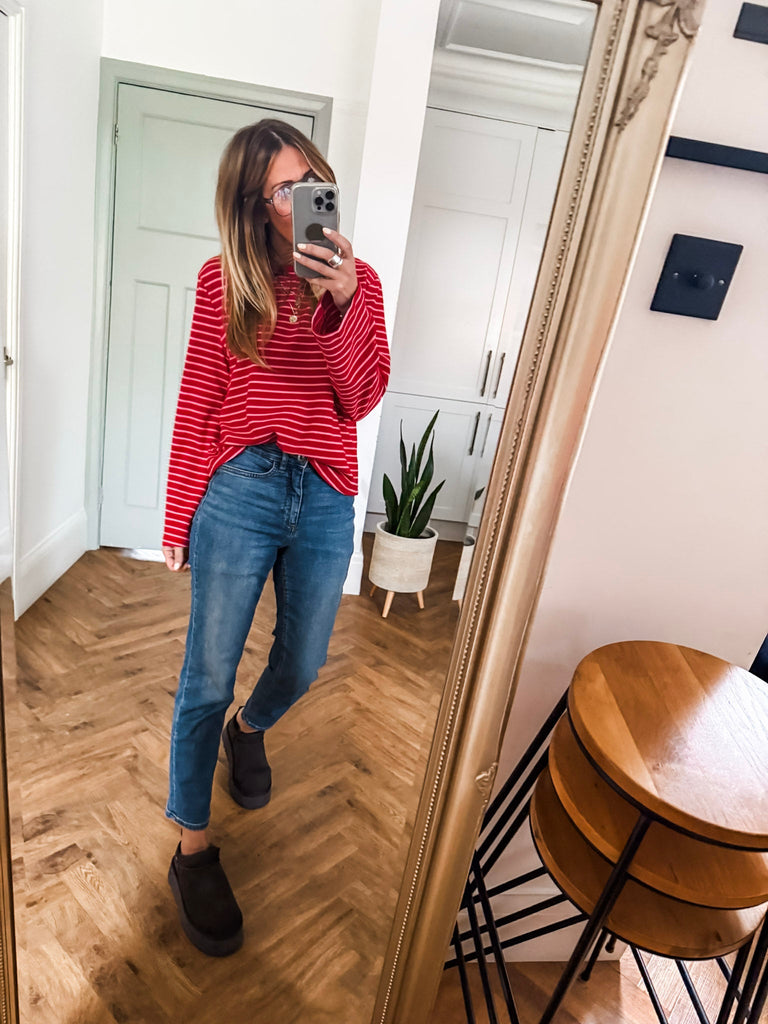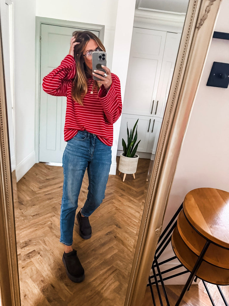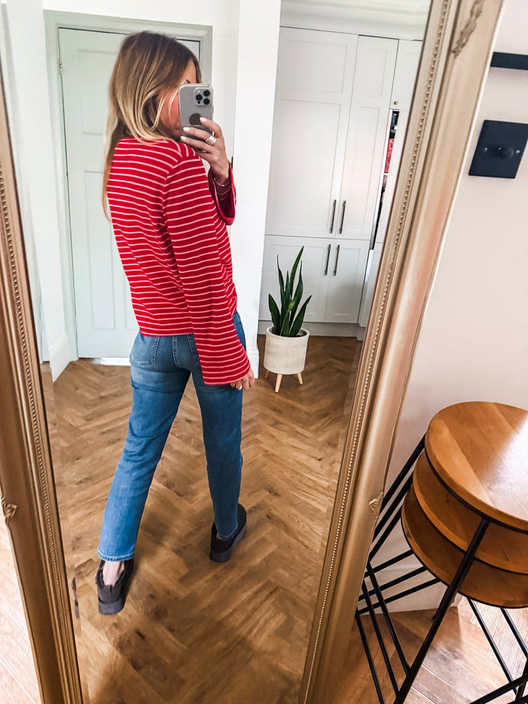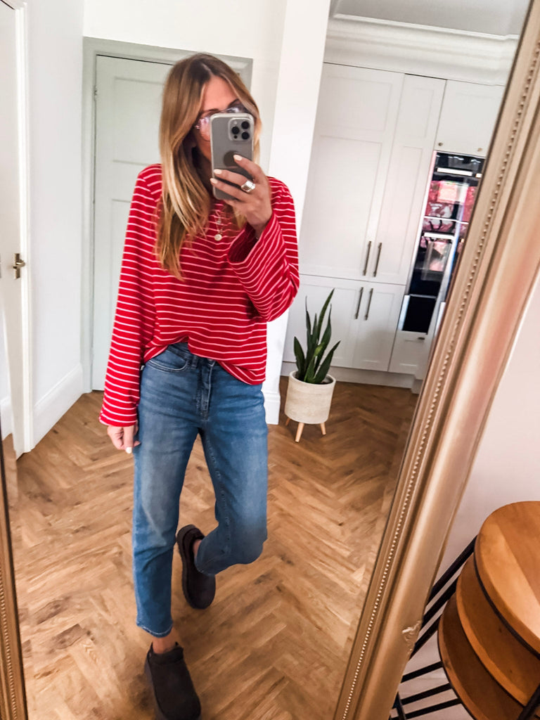 Style the Celine Stripe Top with your favorite high-waisted jeans and sneakers for an easy, everyday look. For a more polished outfit, layer it under a tailored blazer with trousers or a midi skirt. Its neutral tones also make it perfect for pairing with bold accessories or a statement coat.