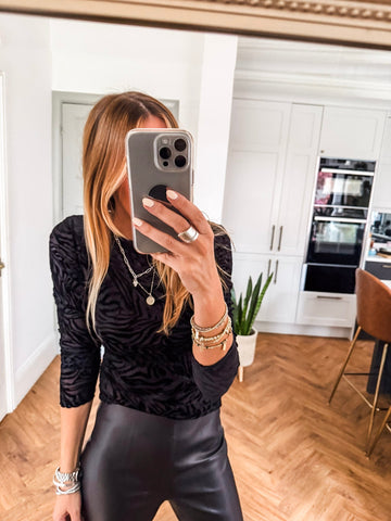 We love the Shirley Top for its bold texture and effortlessly flattering fit. The velvet zebra print adds a unique edge while staying polished and versatile. It’s the perfect piece to add instant impact to your wardrobe with minimal effort.
