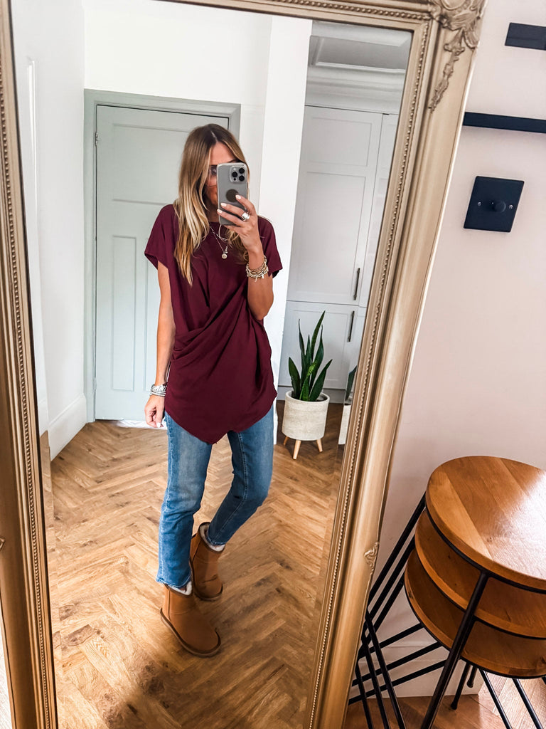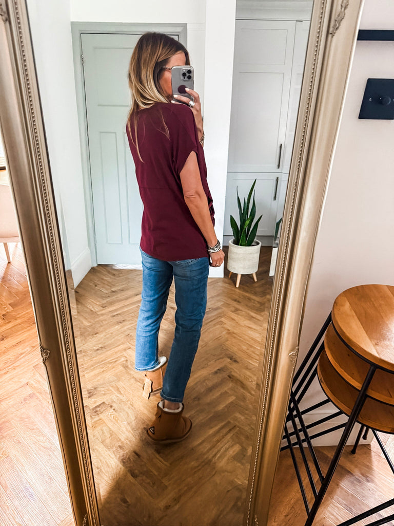 We love this t-shirt for its effortless drape and flattering, easygoing fit. The soft fabric moves with you, offering all-day comfort with a modern twist. It’s a standout basic that pairs seamlessly with everything in your wardrobe.