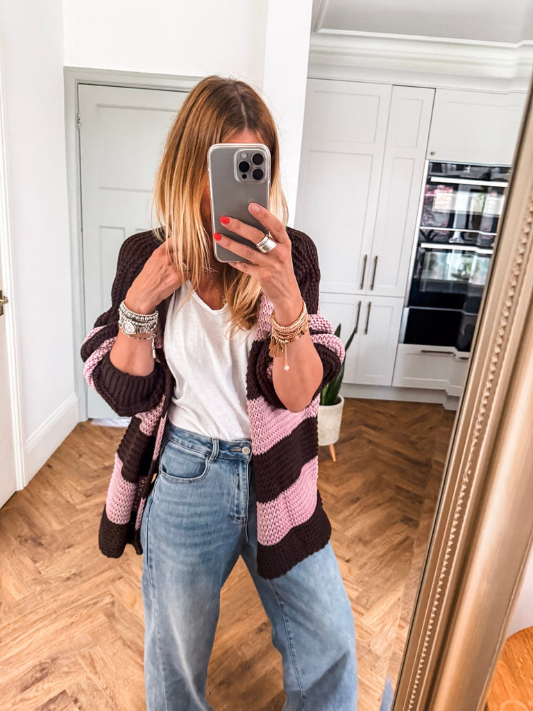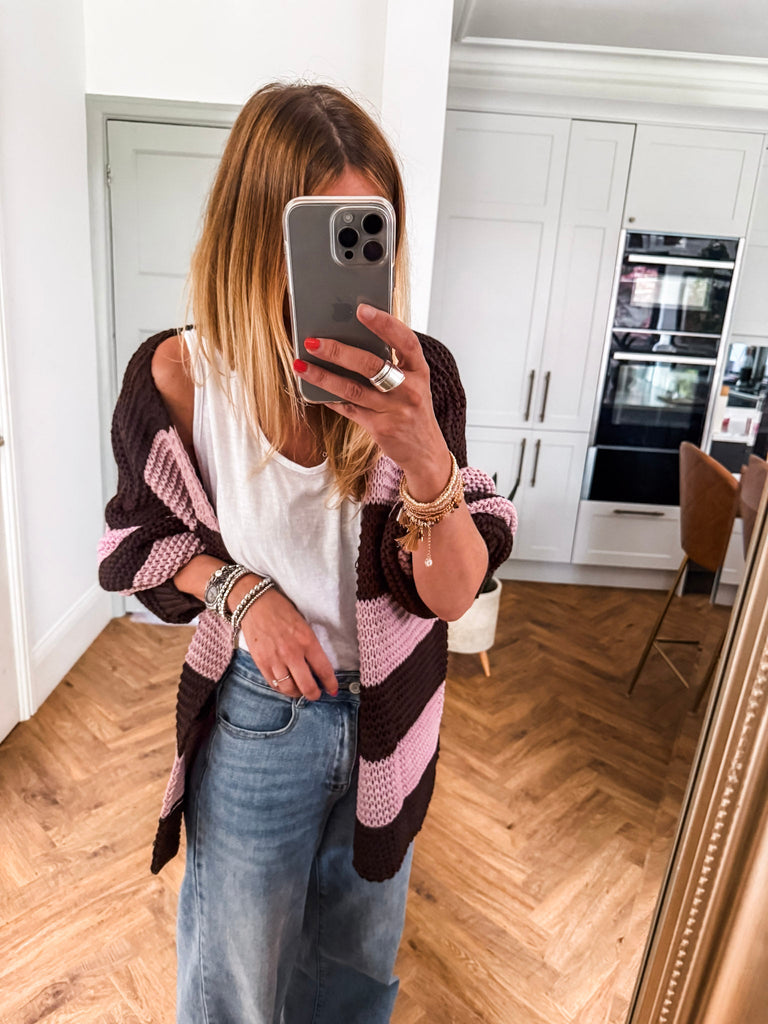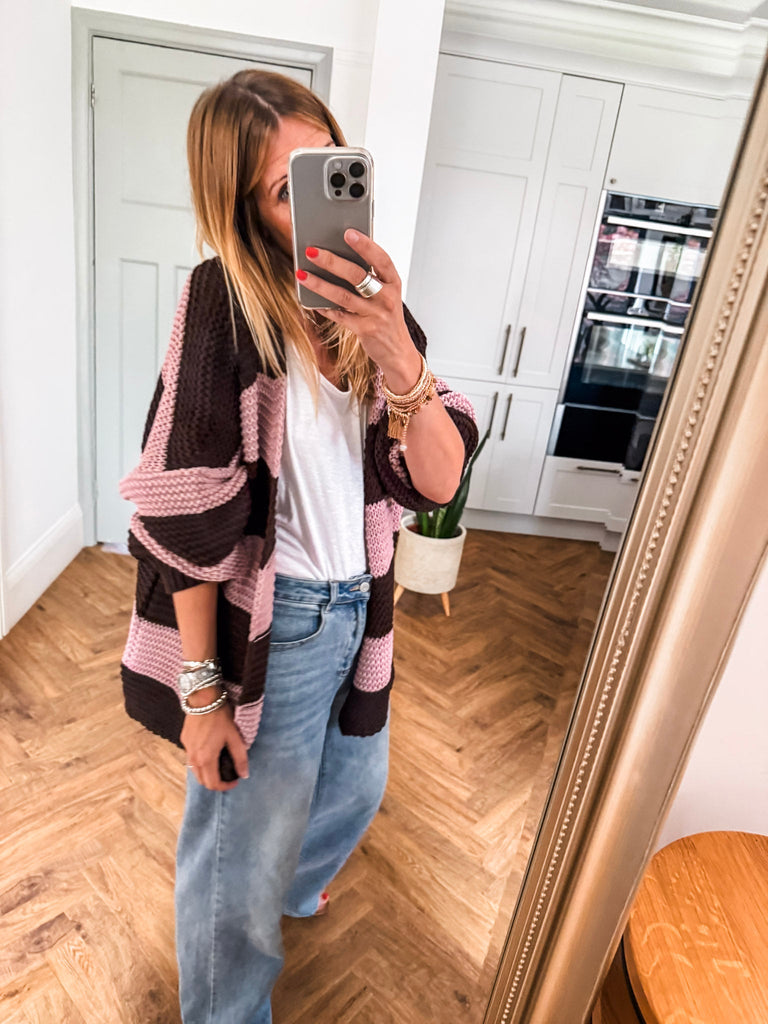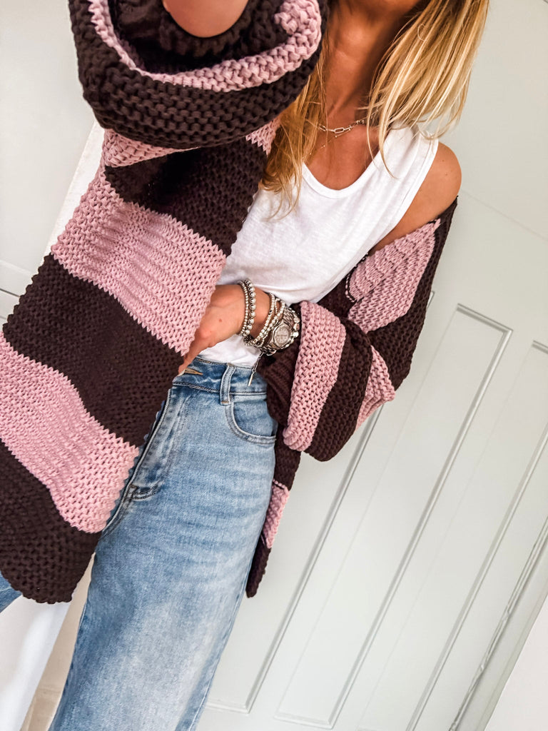 Striped Open Cardigan