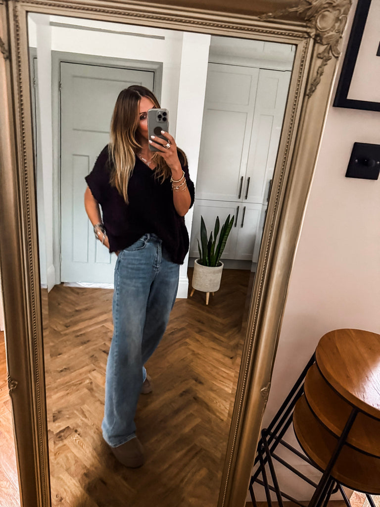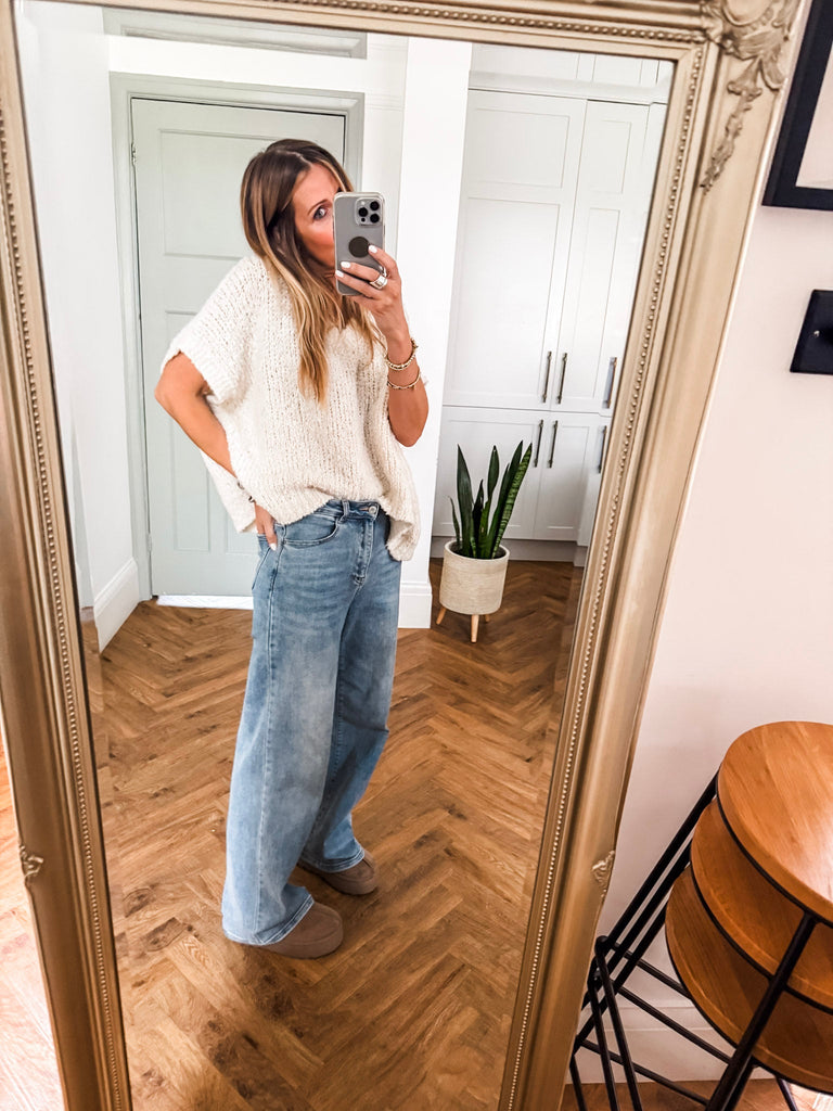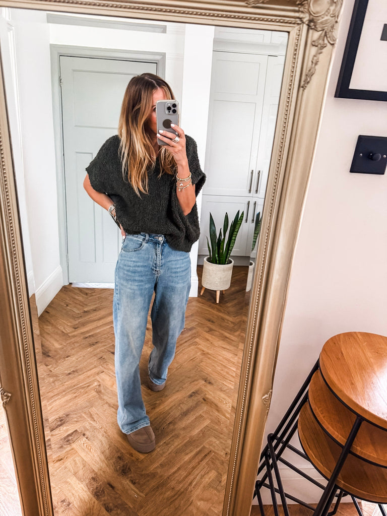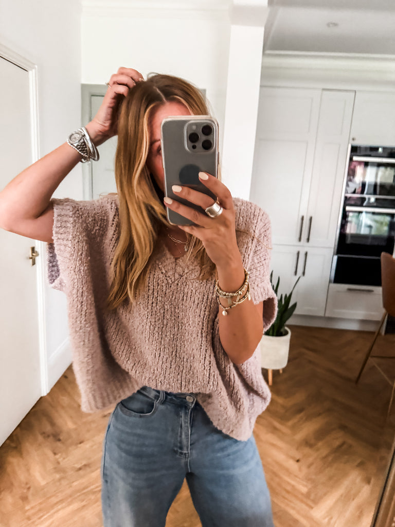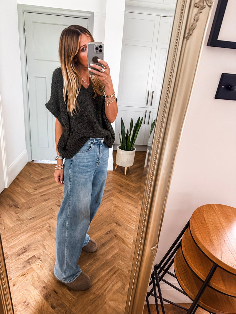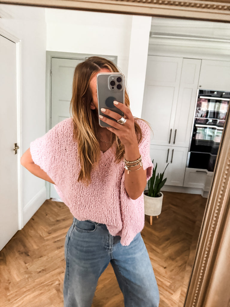 The V Neck Boucle Short Sleeve Jumper blends a relaxed, oversized fit with soft, textured boucle for effortless style. Featuring a flattering V-neck and airy short sleeves, it’s perfect for layering or wearing solo. A modern wardrobe staple with just the right balance of comfort and polish.