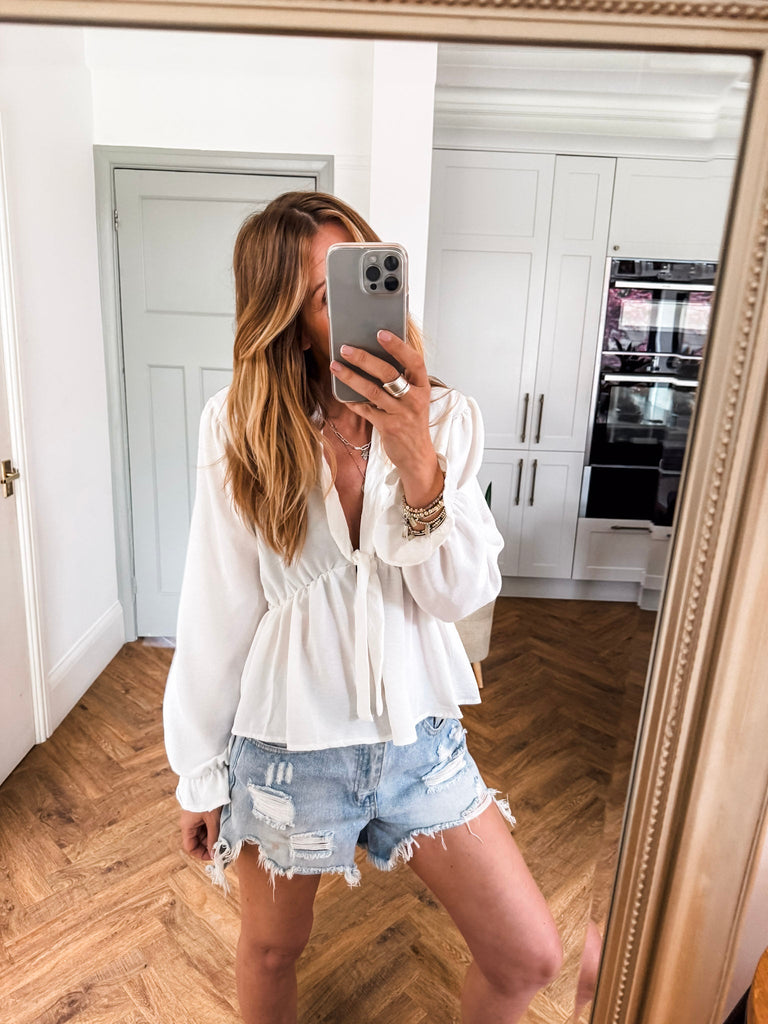 This is a gorgeous style! Turn heads with our Pussy Bow Peplum Blouse—where elegance meets attitude. The statement bow, flirty frill sleeves, and tailored peplum shape create a bold, feminine silhouette. Polished button details complete the look, perfect for owning any room with effortless confidence.