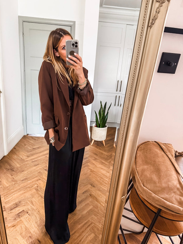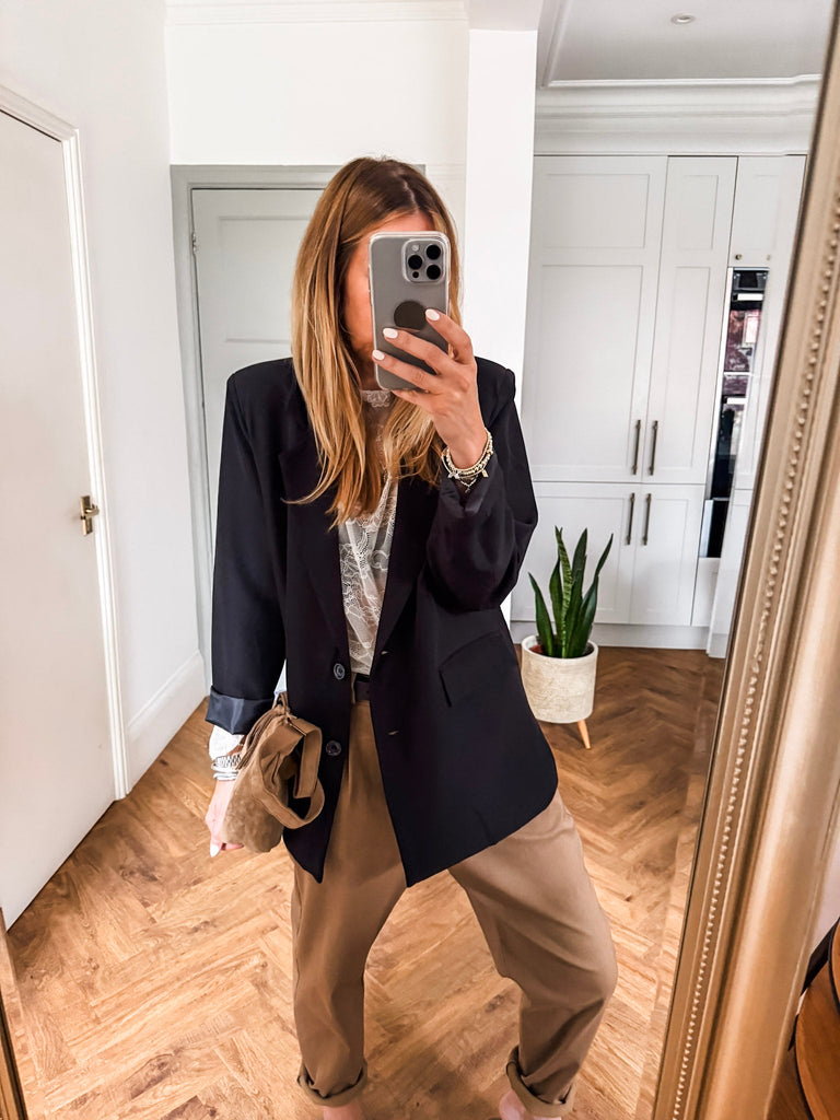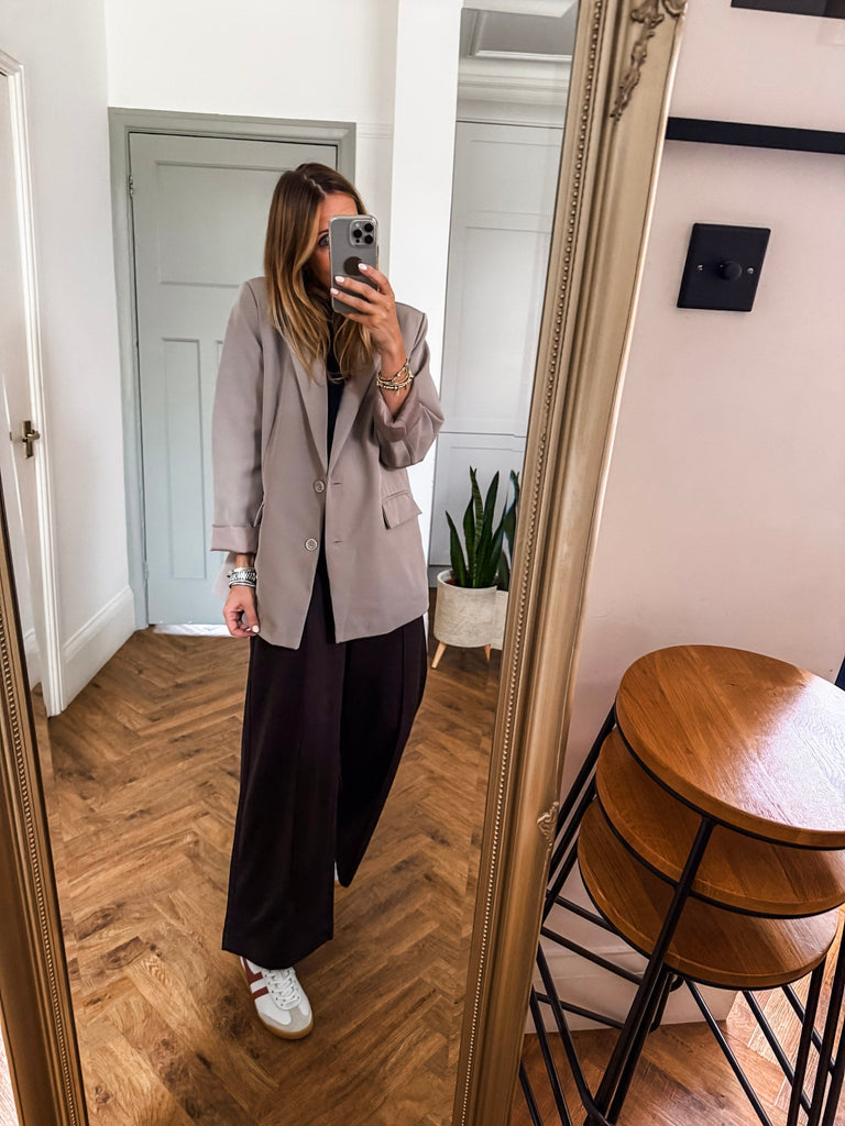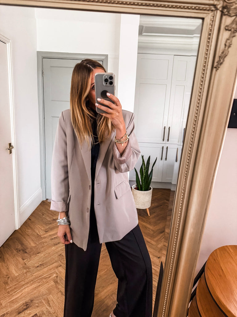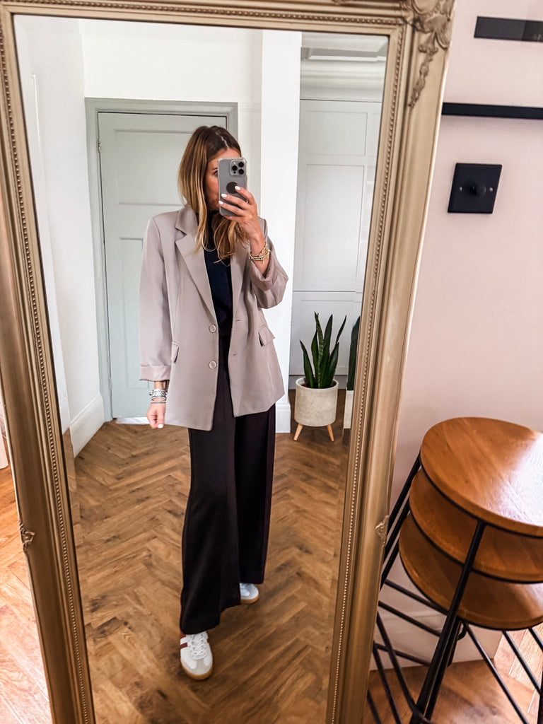 This relaxed-fit blazer brings laid-back polish with bold oversized buttons and sharp tailoring. Functional pockets and clean lines add a modern edge. It's the perfect throw-on layer for effortless statement style.