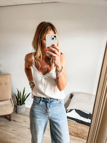 An elegant top for summer that drapes beautifully across the body. The lace trim to the neckline and hem creates a more luxurious feel. This top is perfect for dressing up and down, in a timeless design that will last a lifetime in your wardrobe.